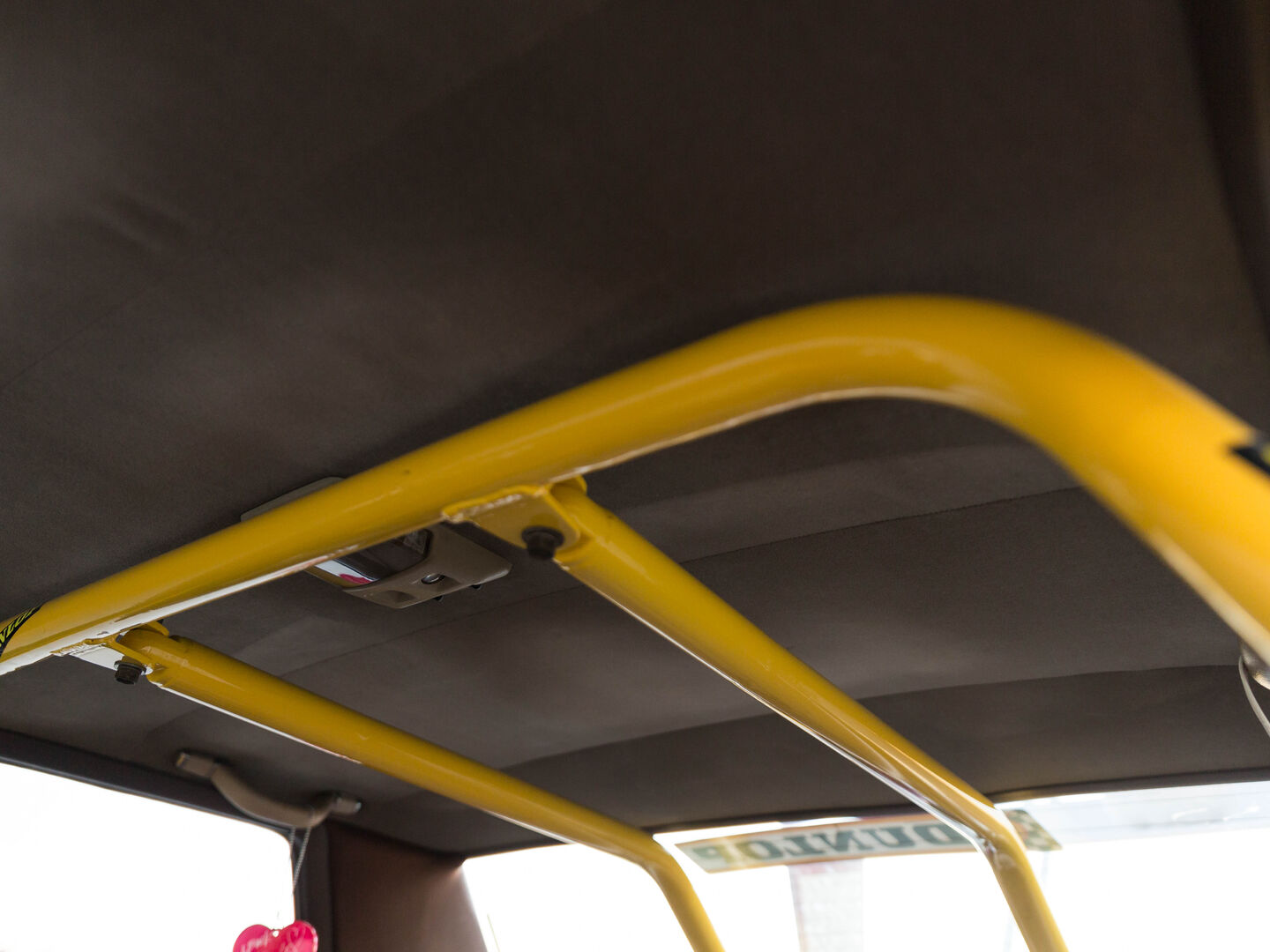 - Aftermarket 4 point bolt-in roll bar (painted yellow)