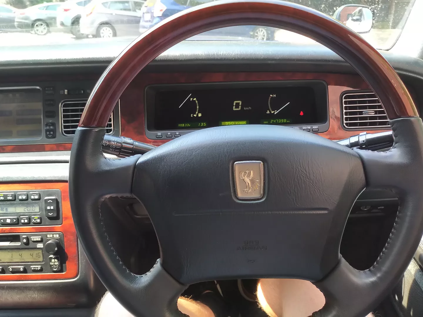 Meet the king of JDM with this top of the line, ultra-luxury Toyota sedan. Rear windows are tinted. Massage seats, heated seats, GPS navigation, a rear TV screen with a VCR, and a cassette recorder and CD changer, all complete with a V12 at around 300 hp.