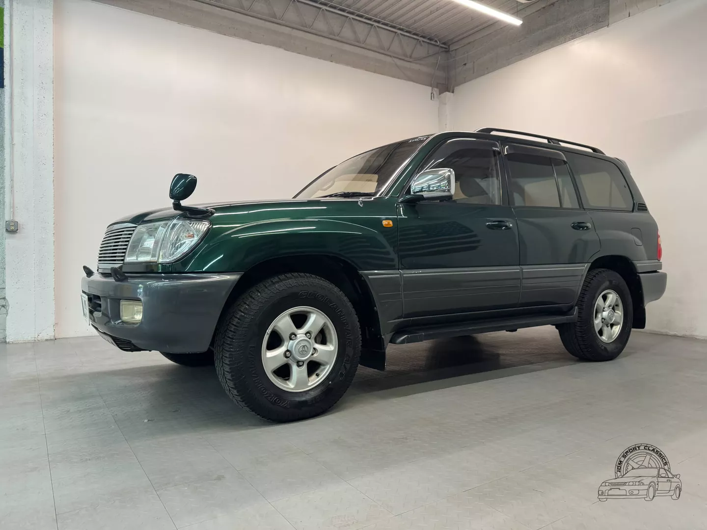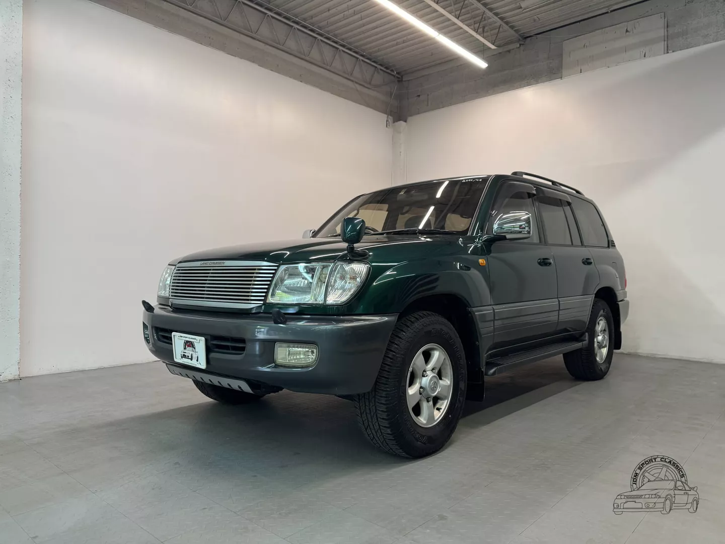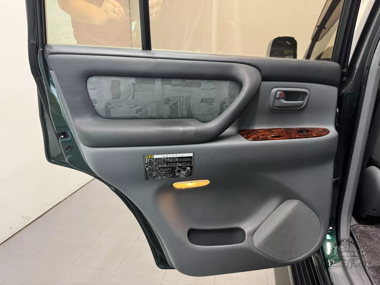 Outside, a modest but deep 6Q7 Imperial Jade Mica sits above a Moonstone Grey two-tone and gives this Cruiser a royal look that matches its royal status. With subtle hints of brushed metal on the front and rear, and chrome accents on the side mirrors, this 100 Series emanates class.  And rounding everything off, a from-factory adjustable ride height and an OEM skid plate lets you know Toyota knew exactly how to make the Land Cruiser a multi-purpose, built to do-it-all rig.
