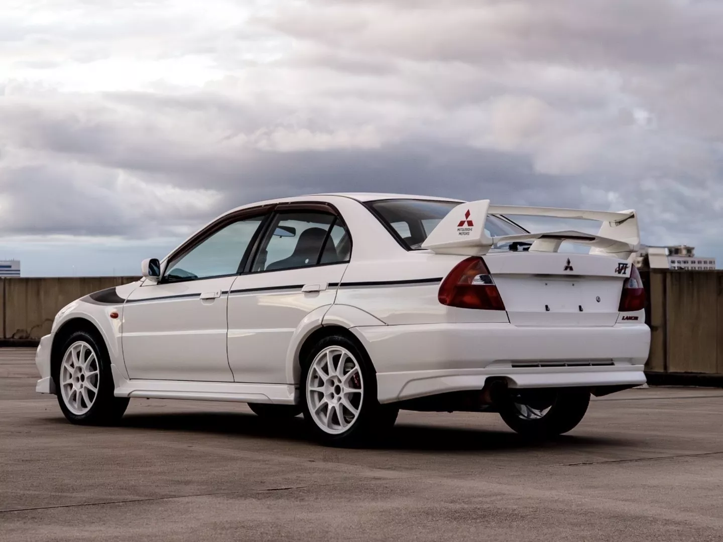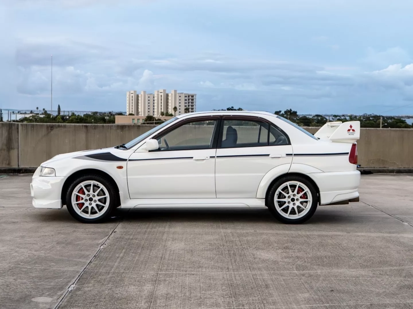 Introducing the 1999 Mitsubishi Lancer Evolution VI GSR (CP9A), one of the most iconic rally-bred sports sedans ever produced. This Evo VI is finished in White, a timeless color that accentuates its aggressive lines and rally-inspired design.