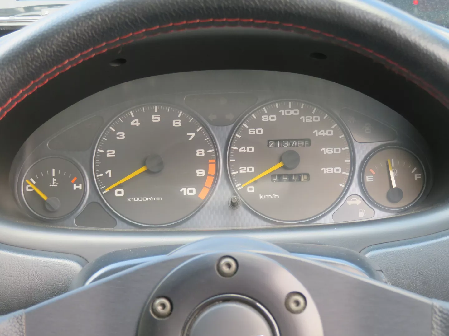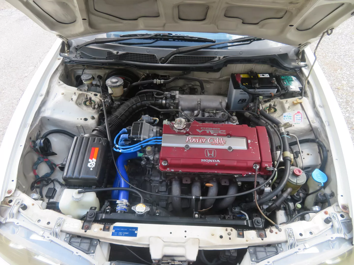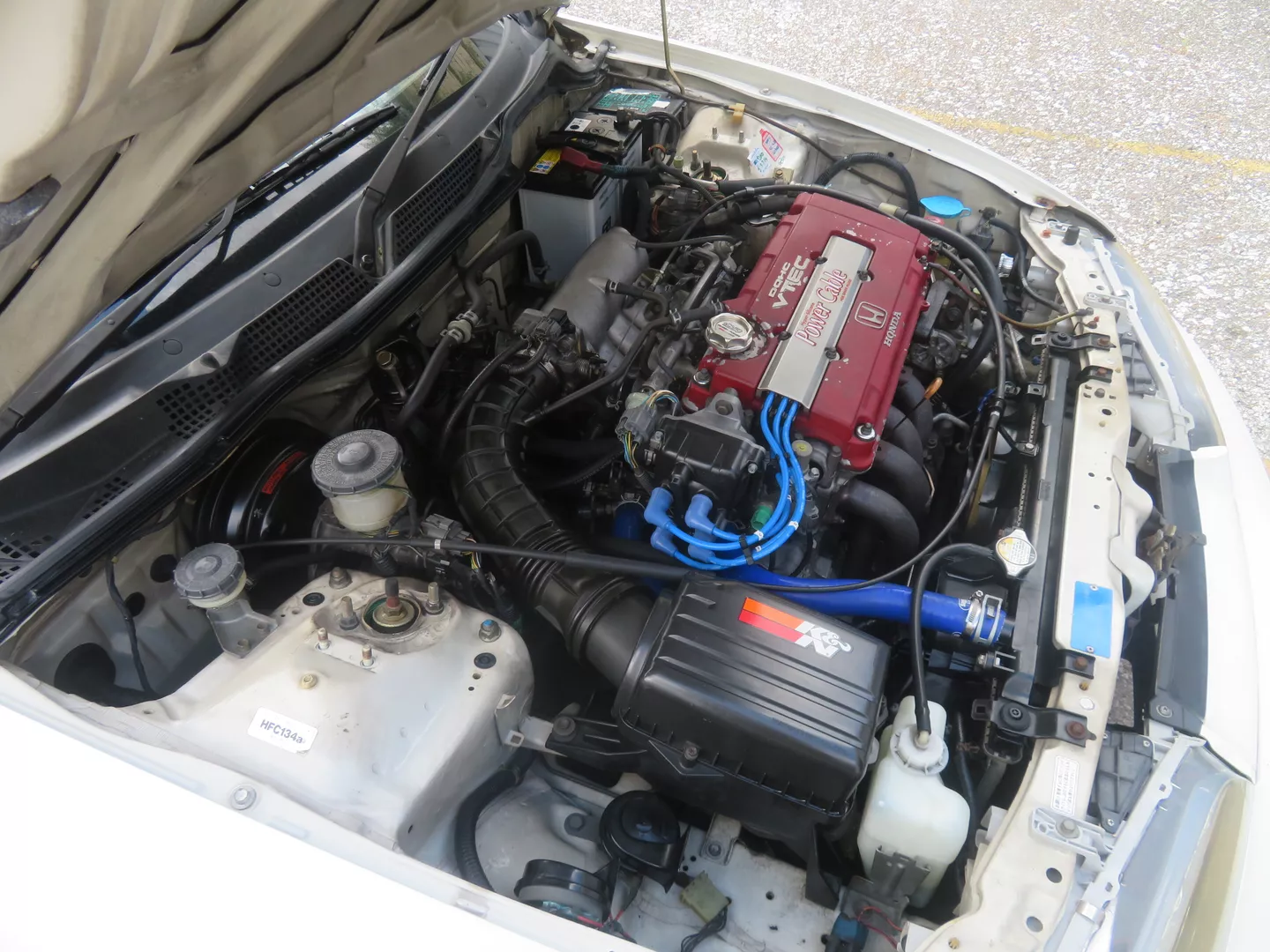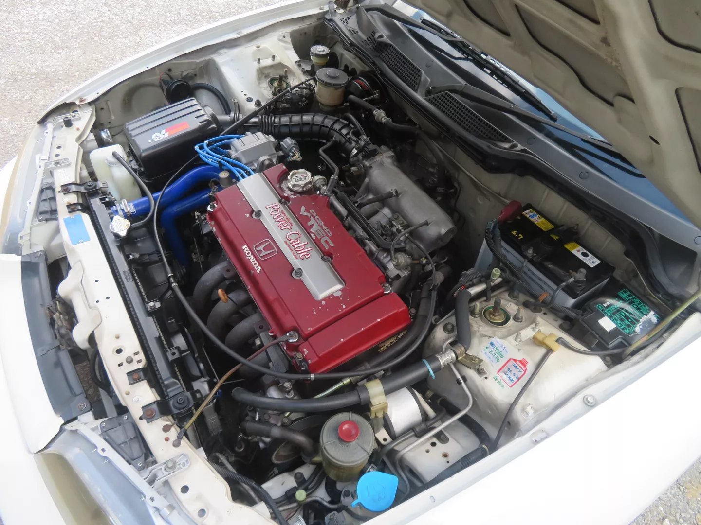 The car features a clean interior, power windows, and an air conditioning system that blows cold. The B18C 1.8L engine runs strong, and the car drives straight. The 5-speed manual transmission shifts smoothly into all gears, providing a satisfying driving experience.