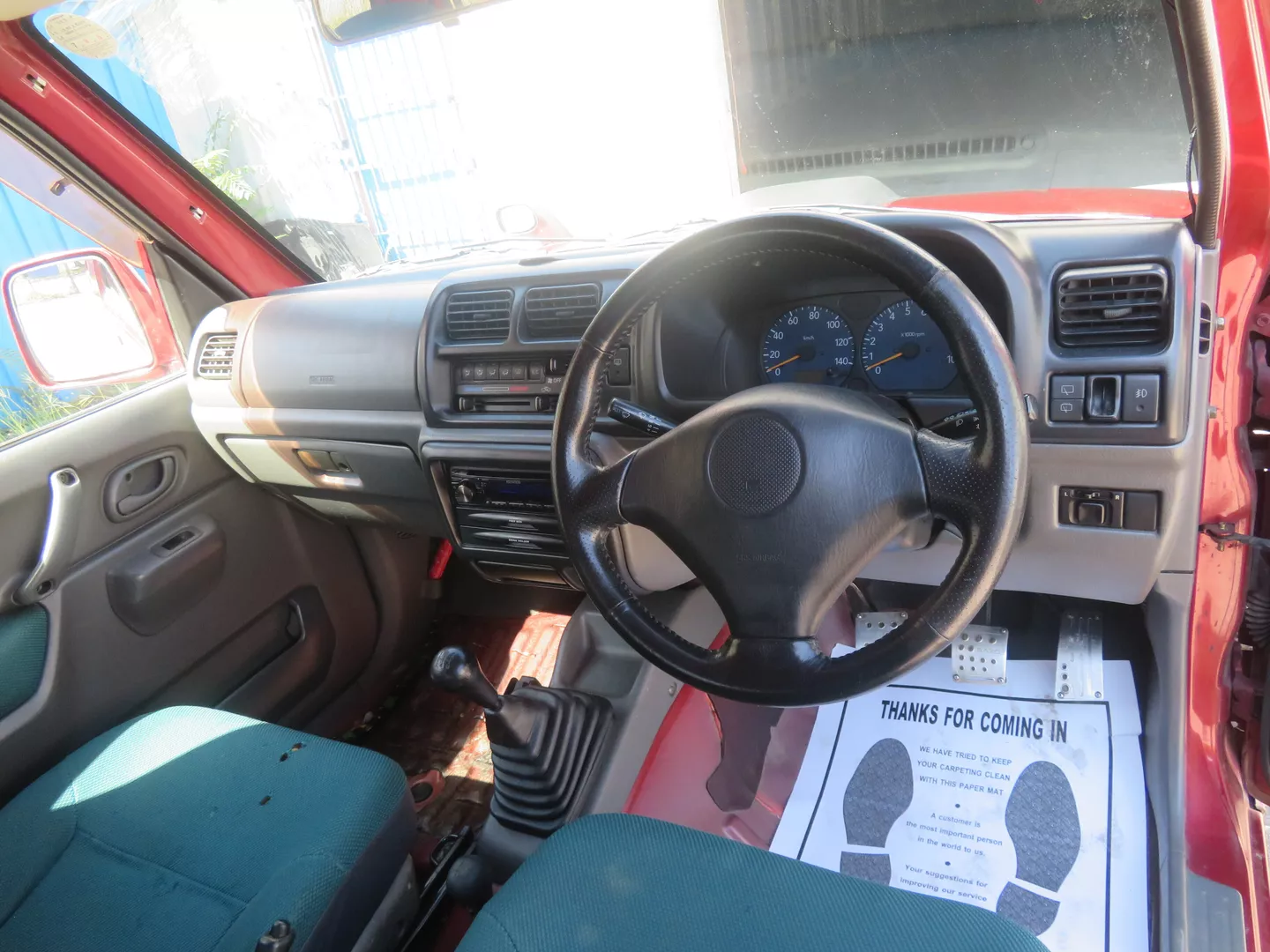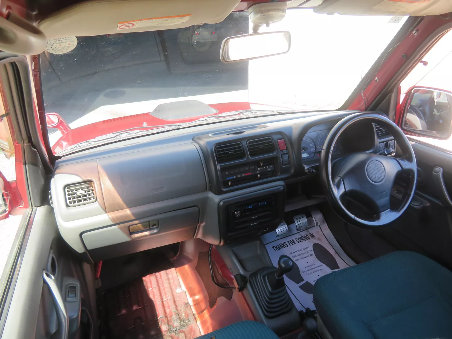The 1999 Suzuki Jimny 4X4 is in good running condition. The engine runs strong, and the transmission shifts smoothly into all gears. The car drives straight, and the air conditioning system blows cold air. It was imported from Japan under the United States Federal 25-year law and comes with a clean Texas title.