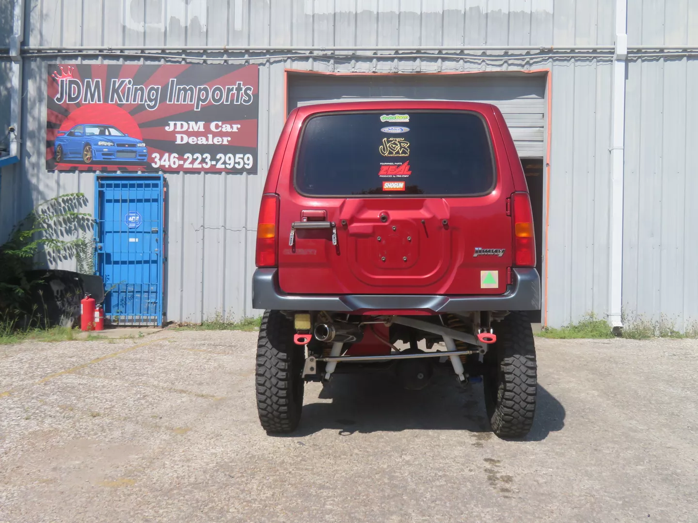 This is a 1999 Suzuki Jimny 4X4, a unique and compact off-road vehicle imported from Japan under the United States Federal 25-year law. It comes with a clean Texas title.