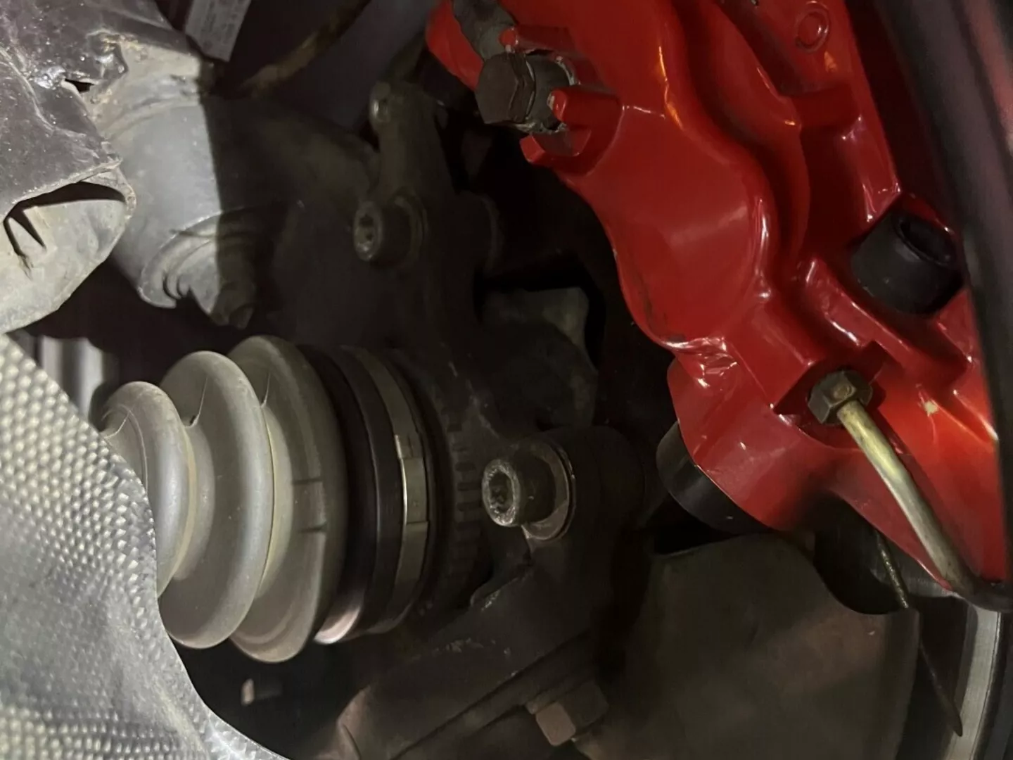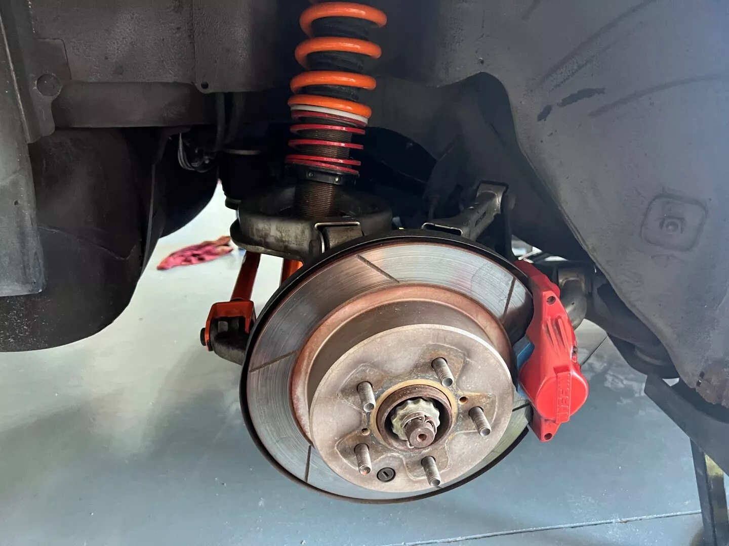 Stock rear calipers with slotted rotors