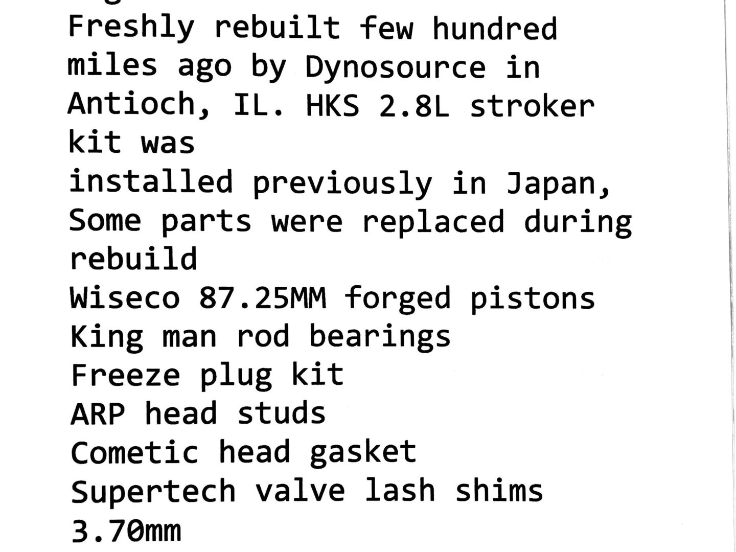 HKS 2.8L stroker kit (installed originally in Japan)