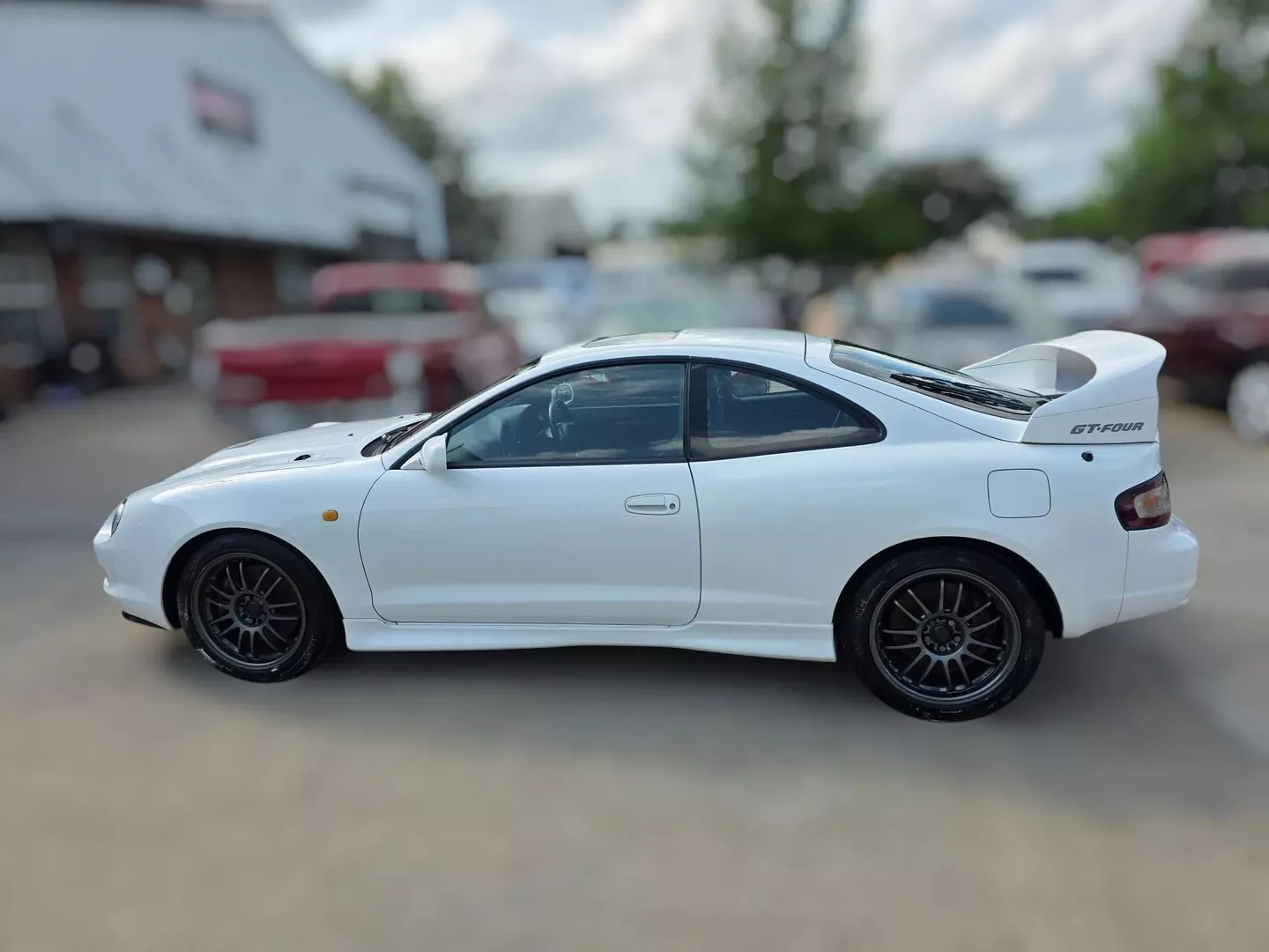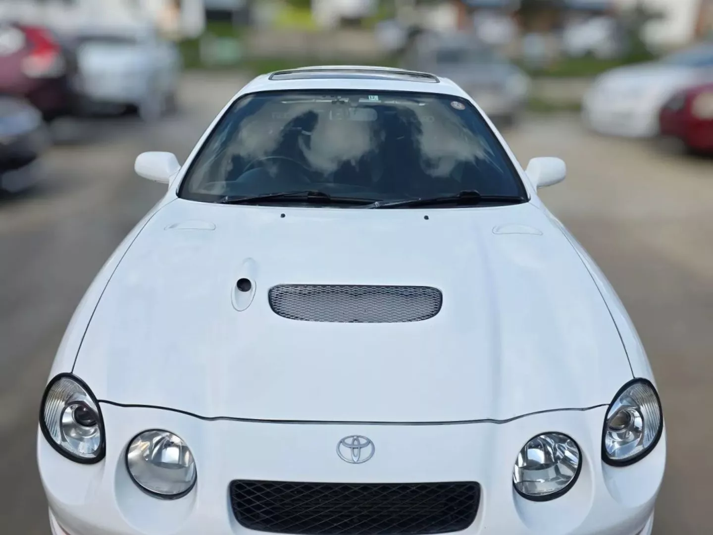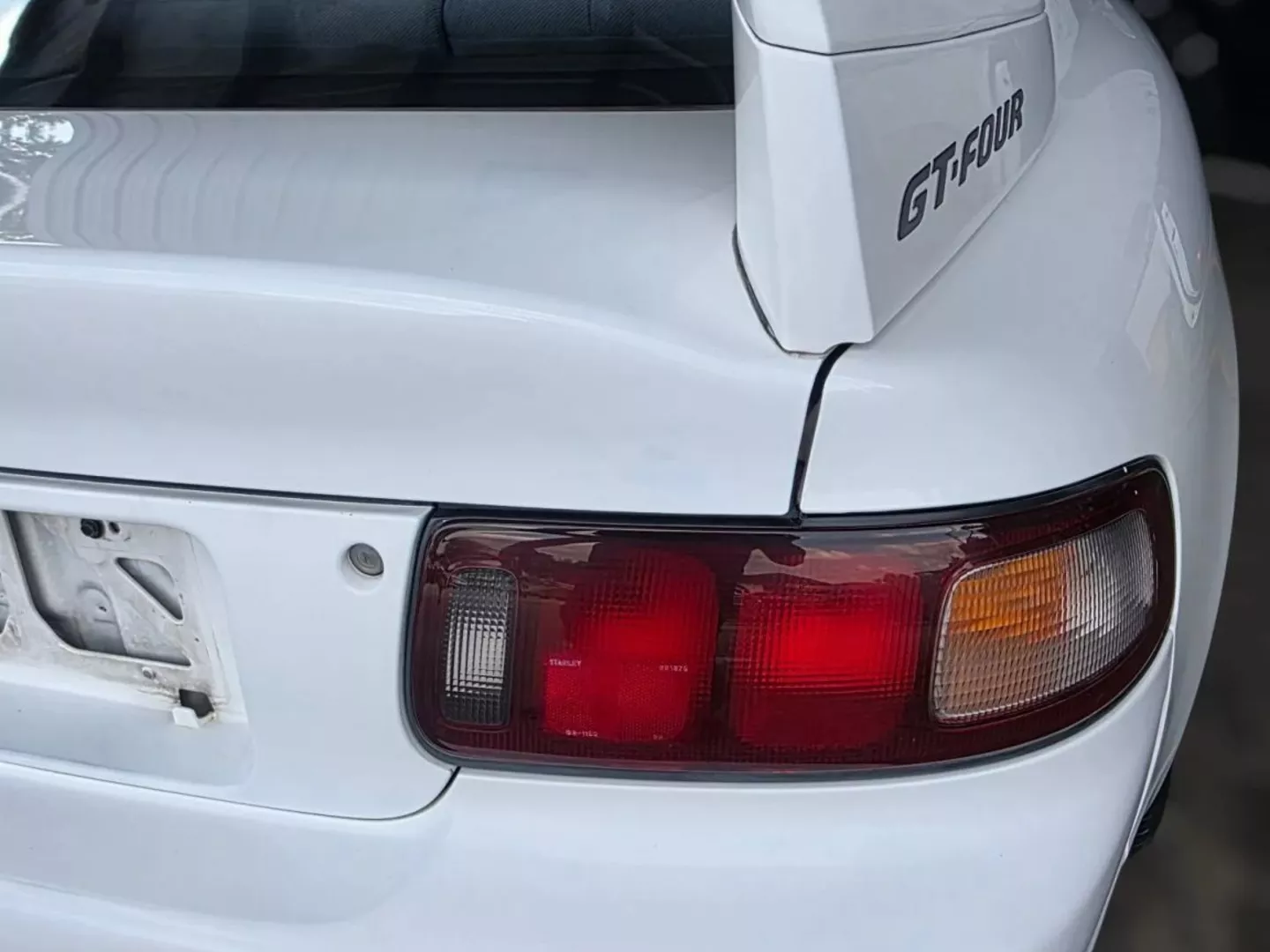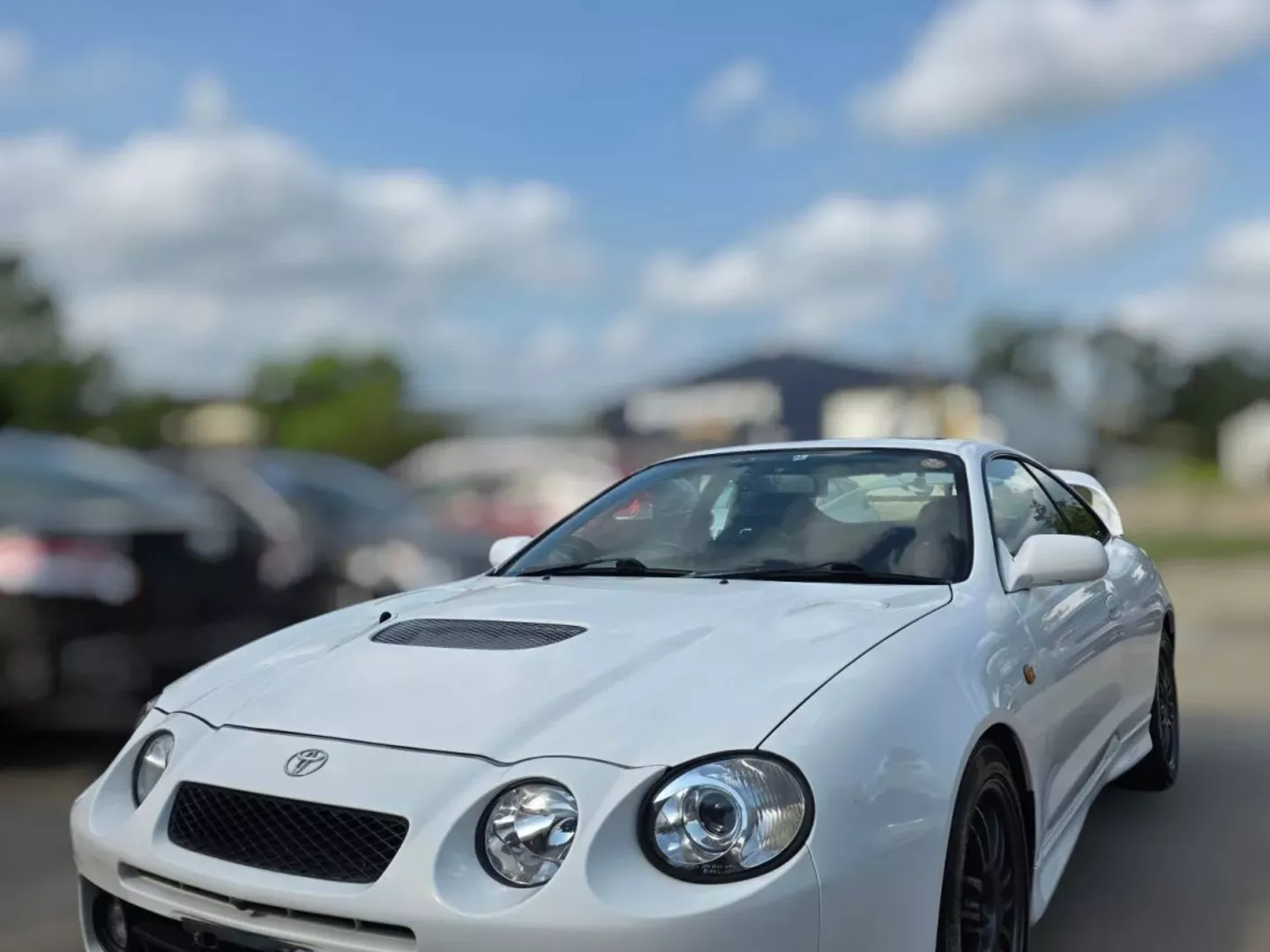 This is a 1998 Toyota Celica GT-Four, a turbo-charged model with four-wheel drive. The car has been recently serviced and has approximately 56,000 kilometers on the clock. The exterior is in good shape with the original white color, and the interior is well-maintained with original trims and an upgraded audio system. The car also features several performance upgrades in the engine bay.