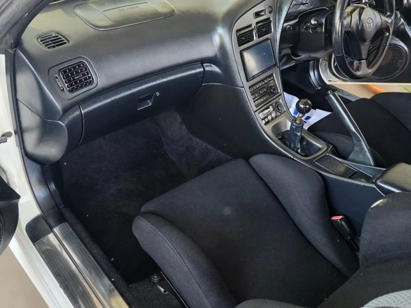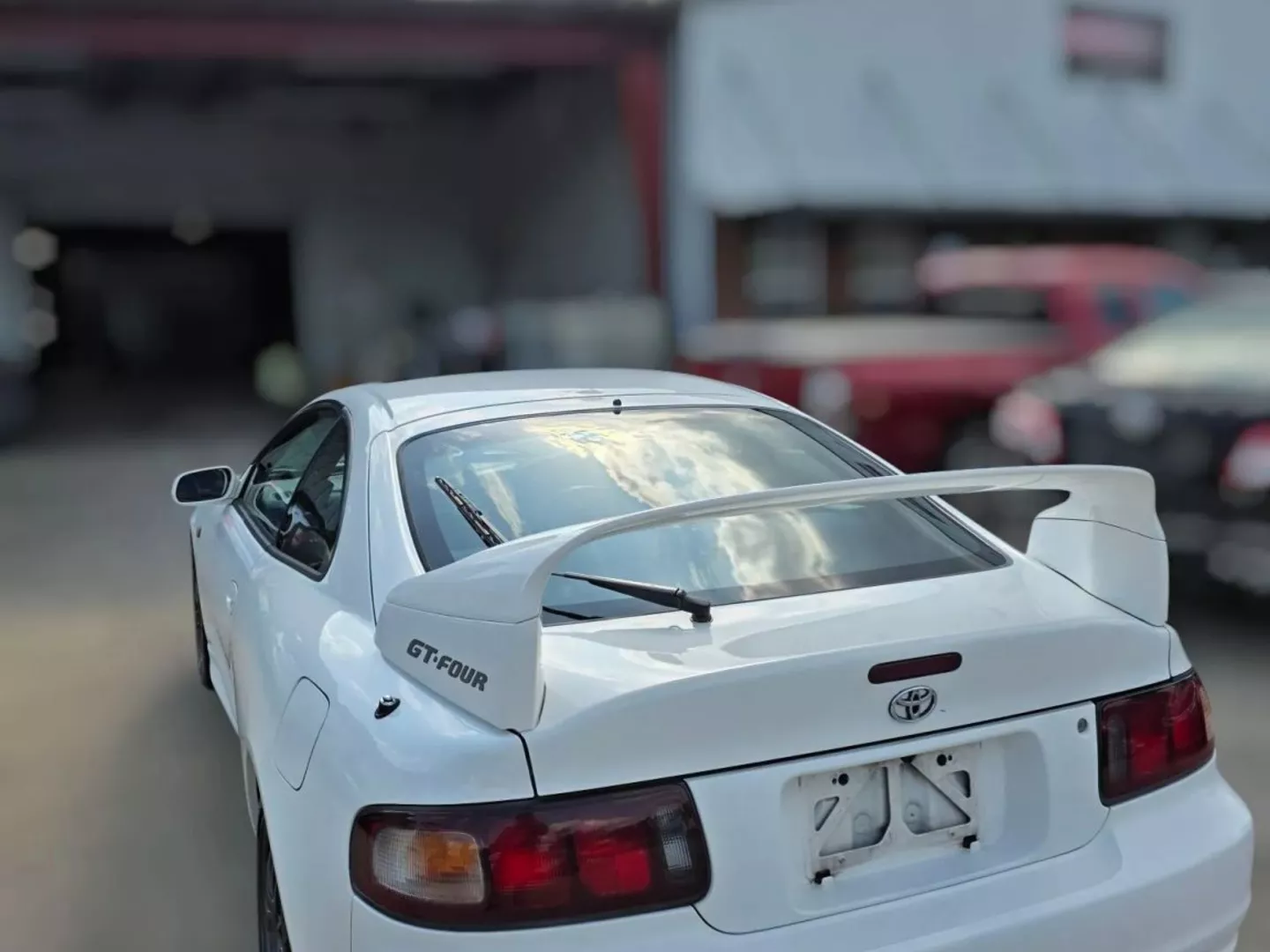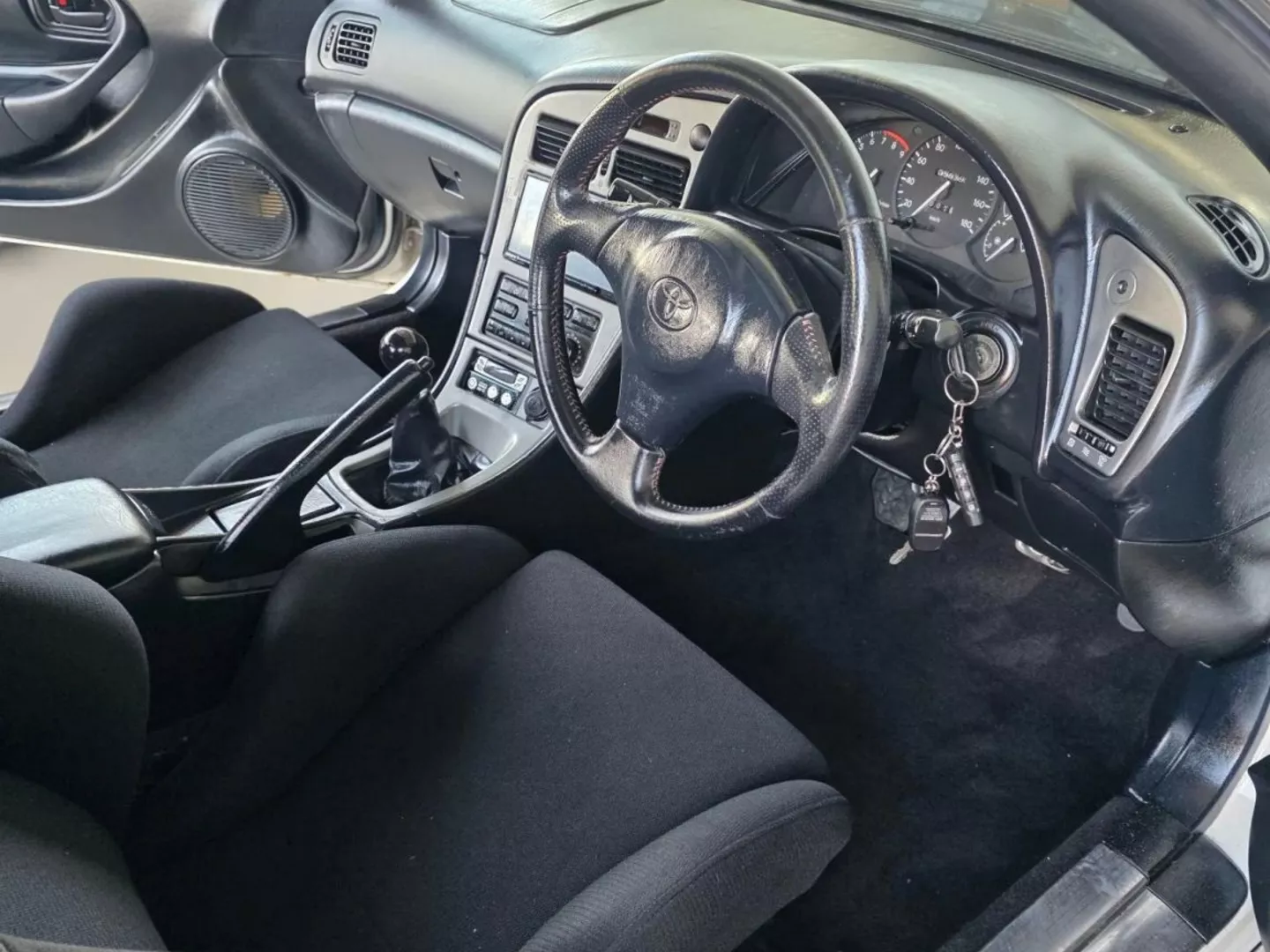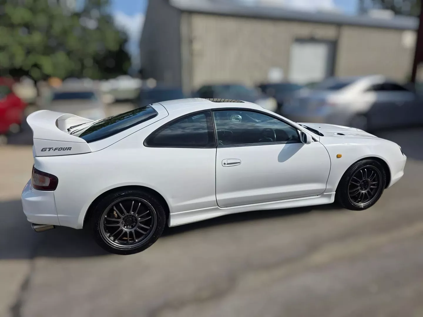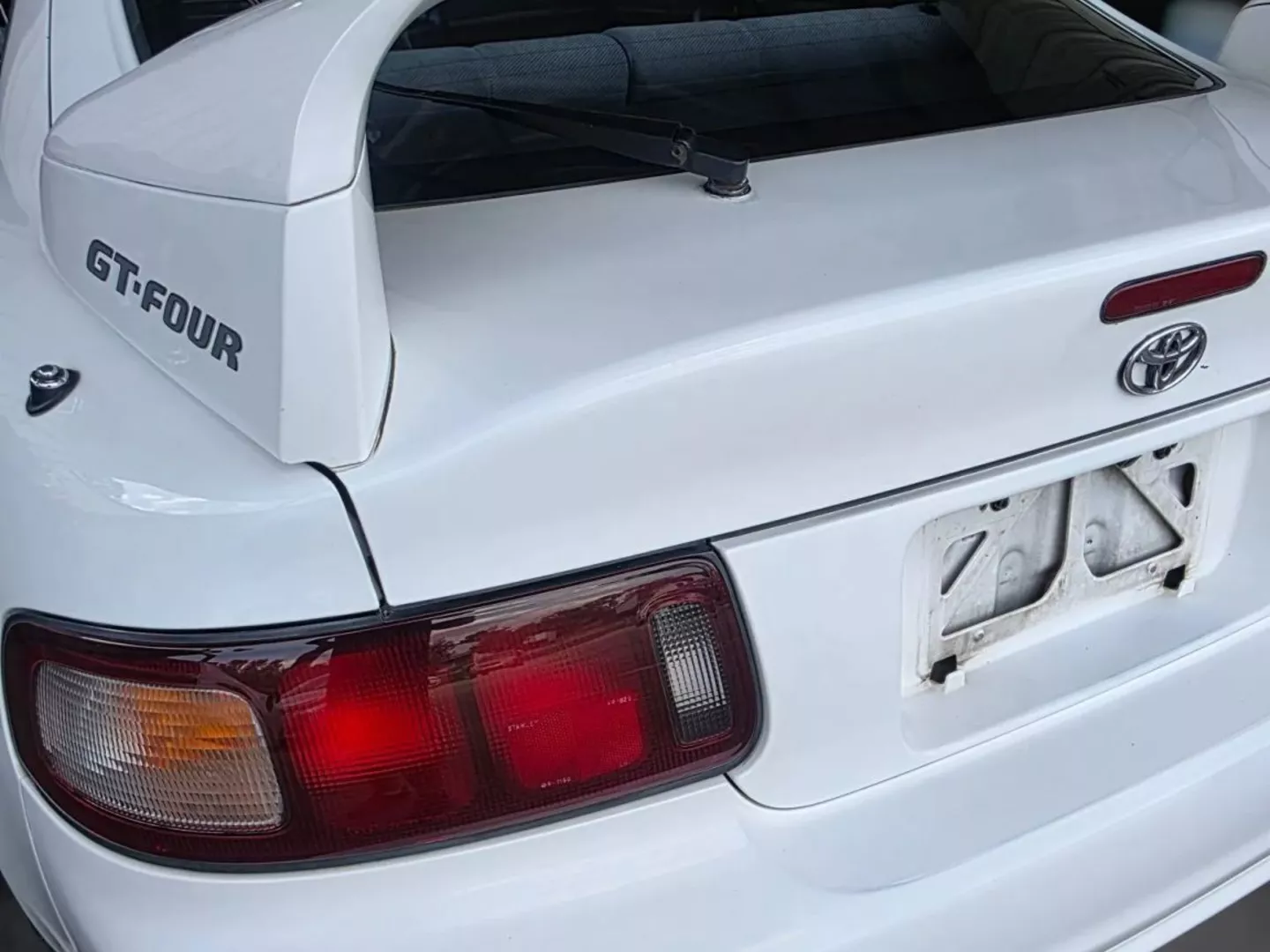 This is a 1998 Toyota Celica GT-Four, a turbo-charged model with four-wheel drive. The car has been recently serviced and has approximately 56,000 kilometers on the clock. The exterior is in good shape with the original white color, and the interior is well-maintained with original trims and an upgraded audio system. The car also features several performance upgrades in the engine bay.