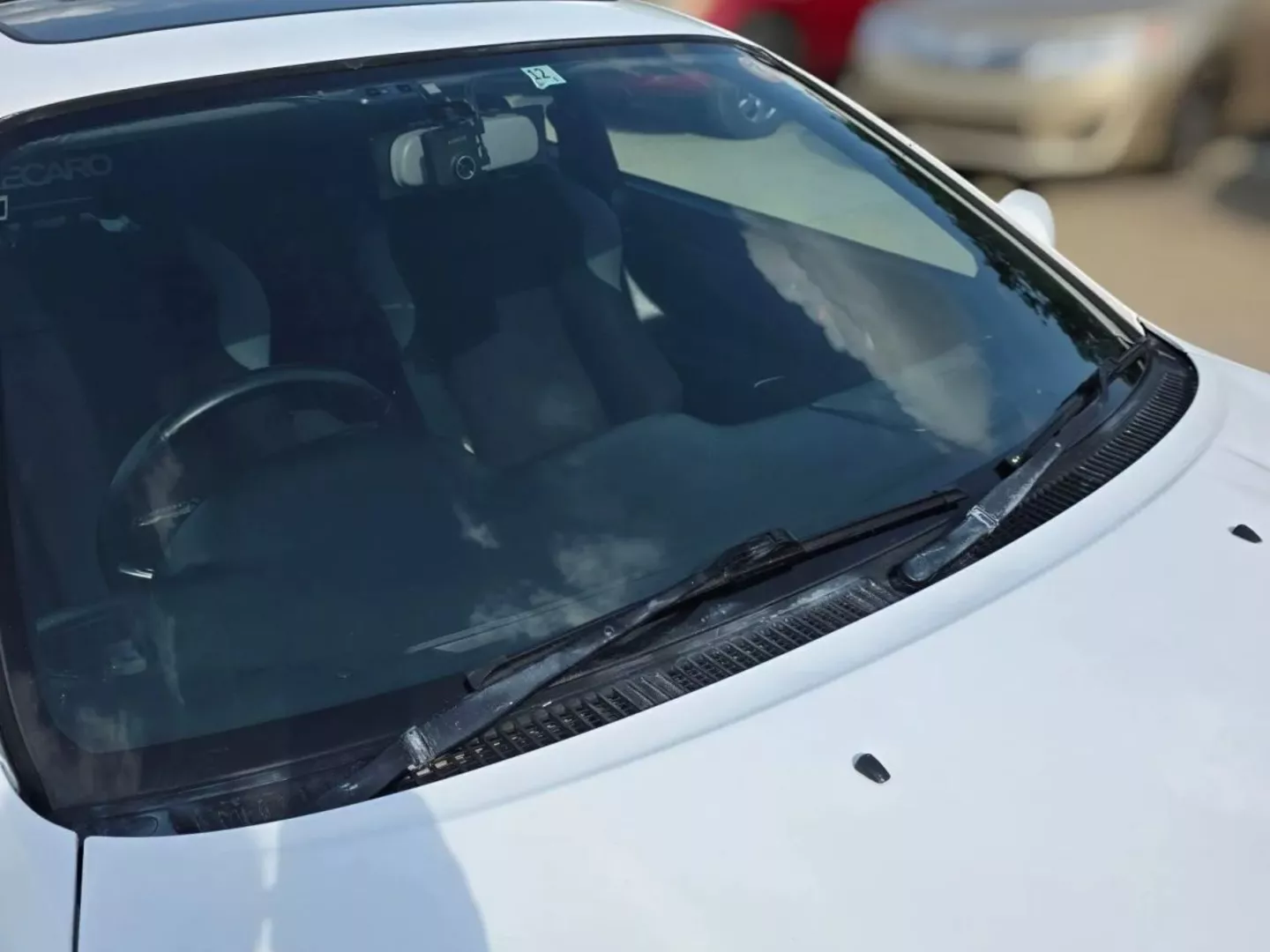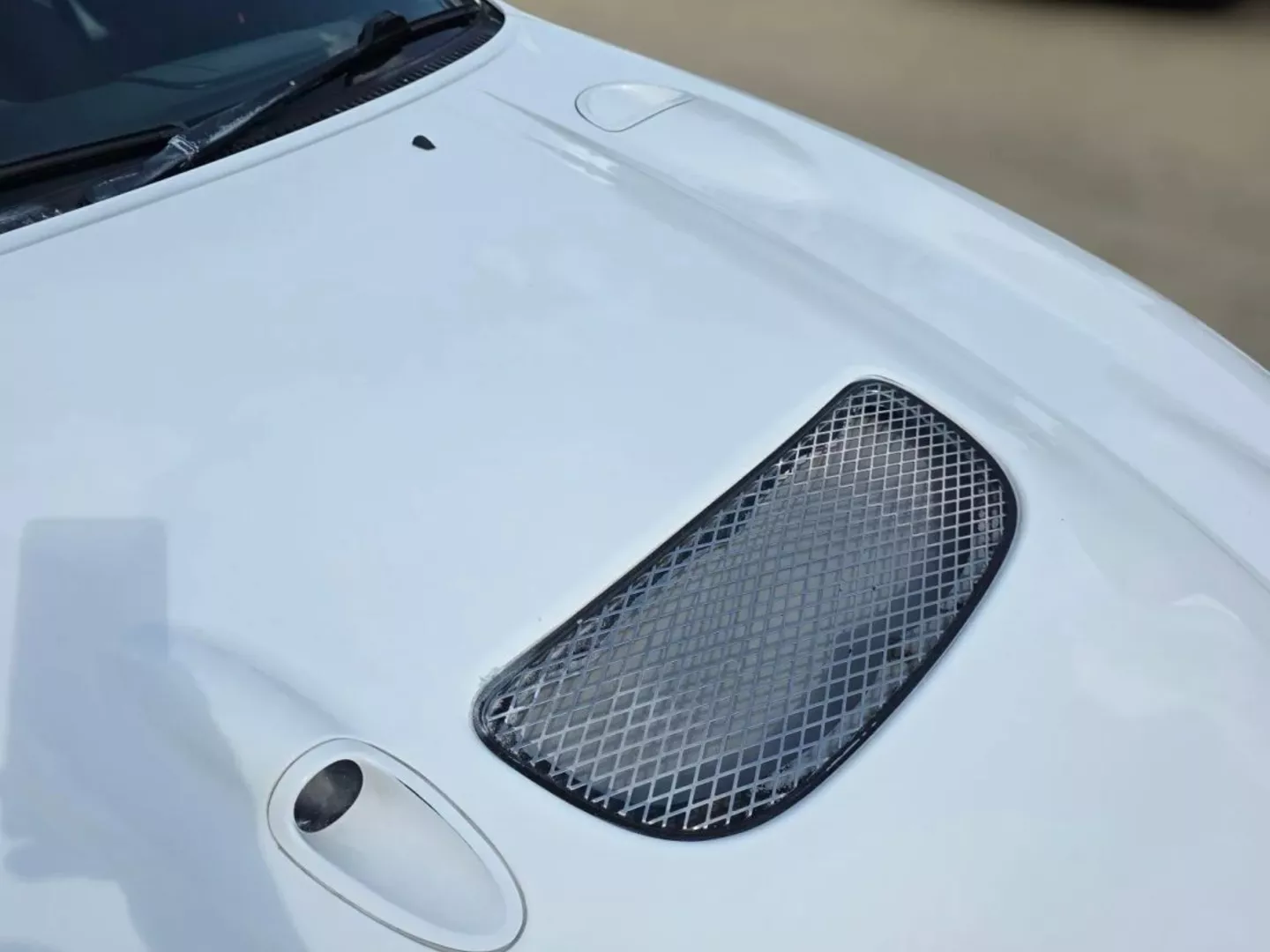 The body of the car is in good shape with no noticeable fade in the clear coat, indicating good maintenance. The previous owner added a kit, including an OEM wing and side skirts that are well-streamlined. The coilovers are adjusted slightly lower than OEM to minimize wheel gap.
