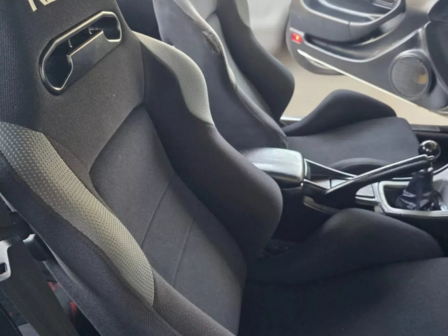 The interior is also in good condition. The door panels and dash have no cracks, and it retains the OEM steering wheel. The car features Recaro seats, with some minor wear on the driver's side. The passenger seat is in even better condition. Original car carpets are present, and the audio system has been upgraded and includes a functional subwoofer. The rest of the trim is original.