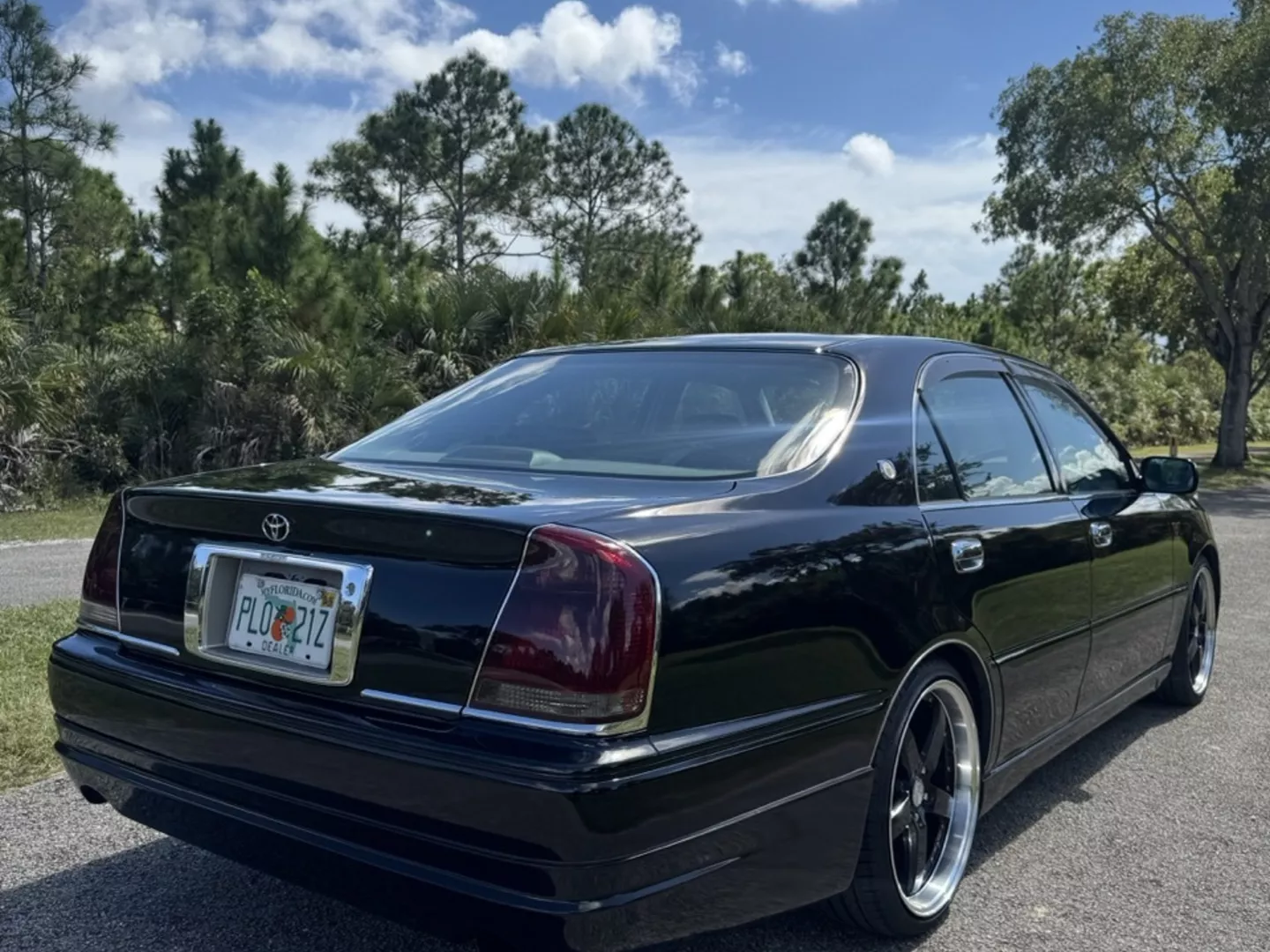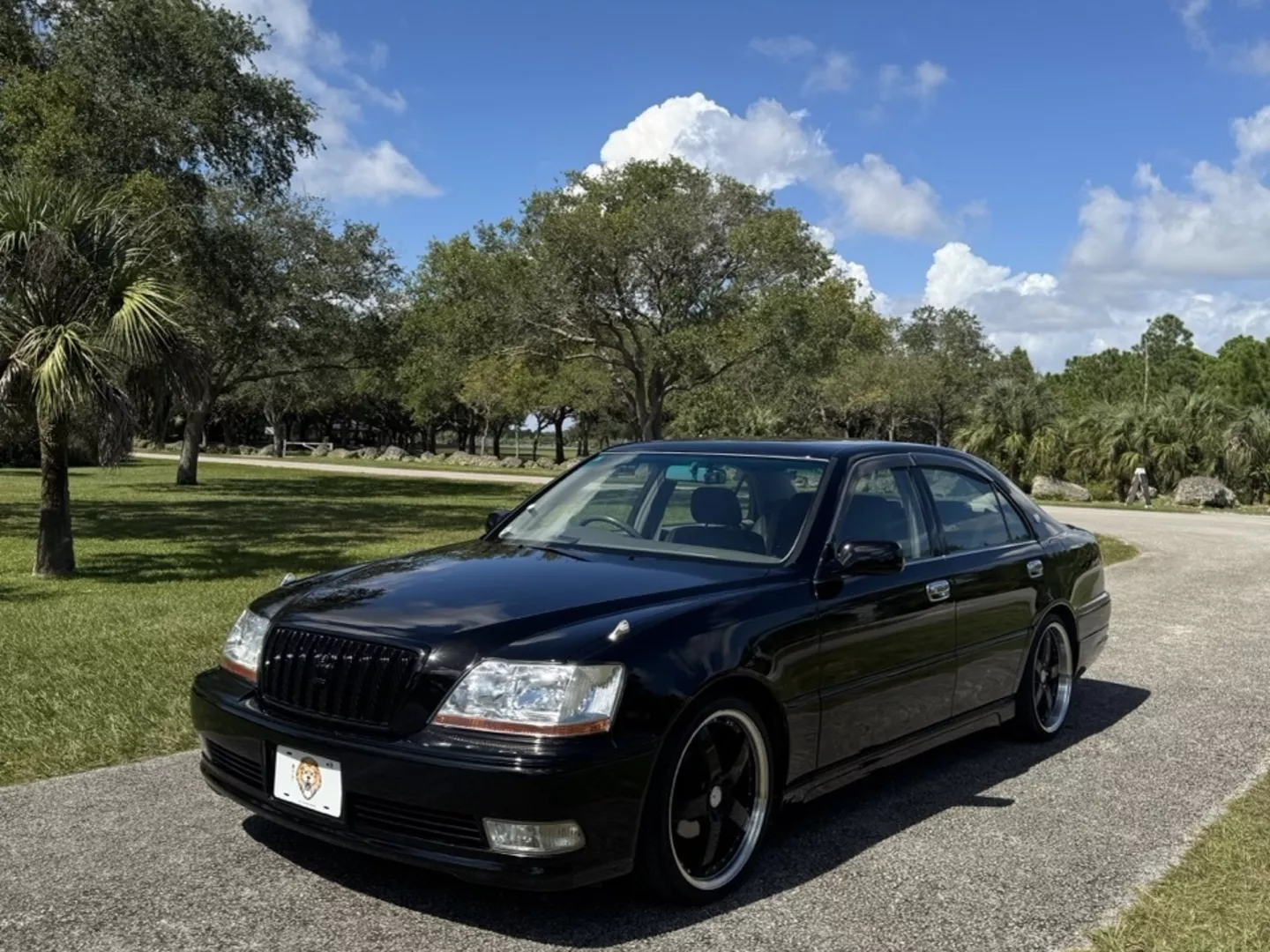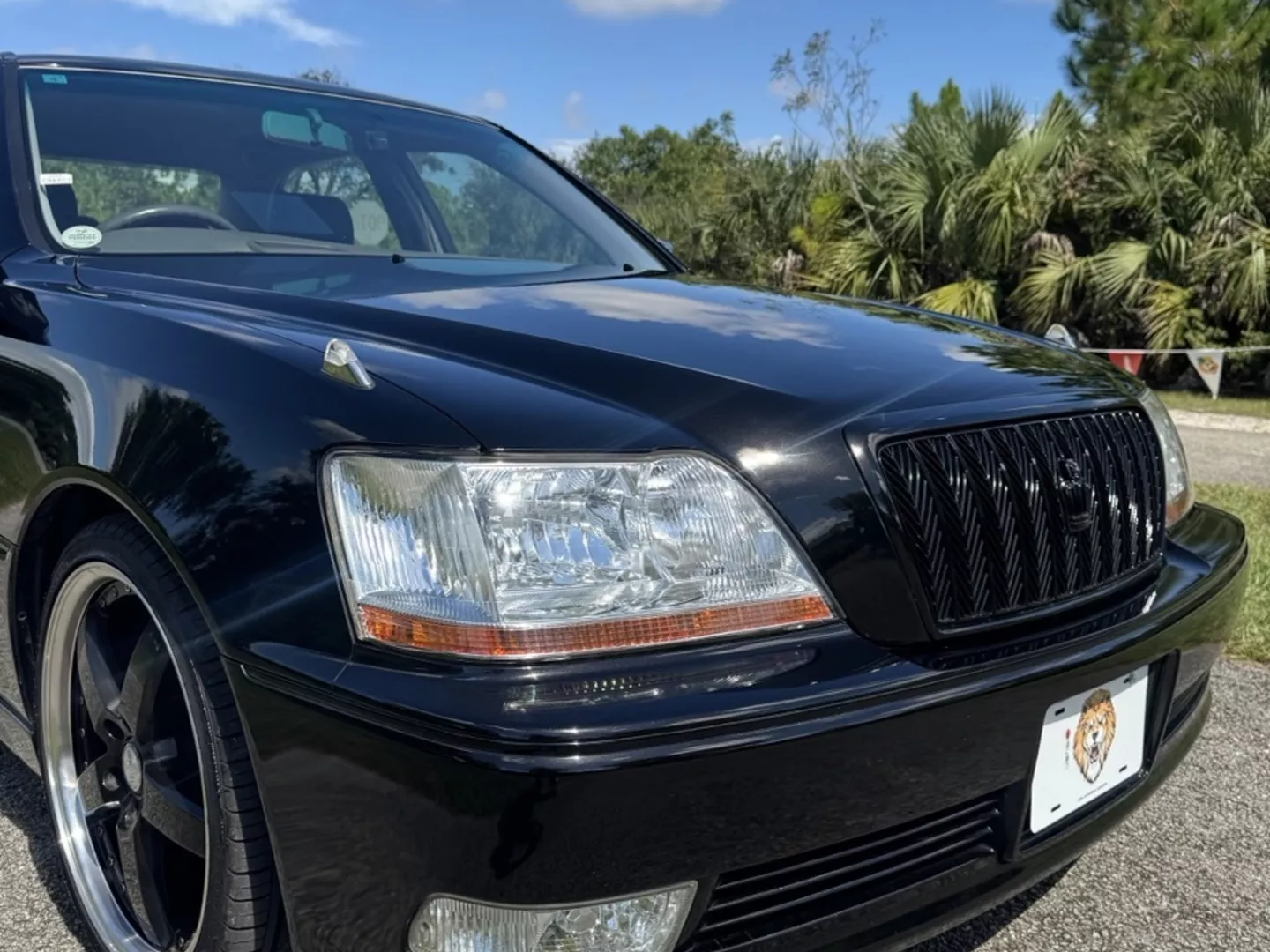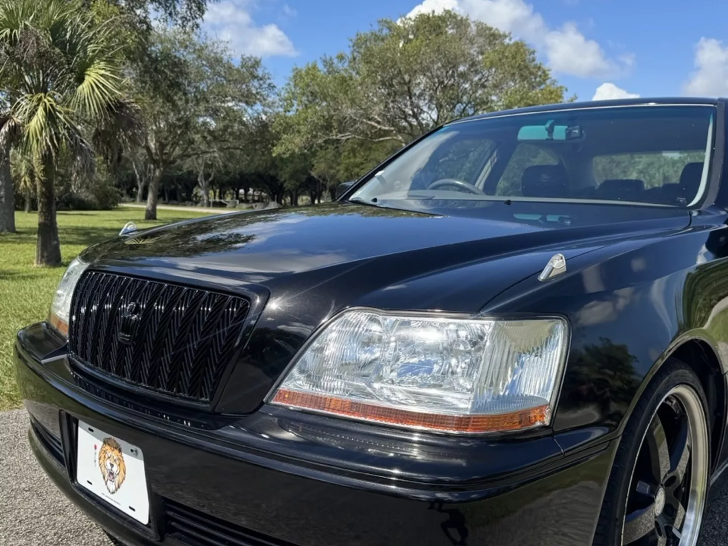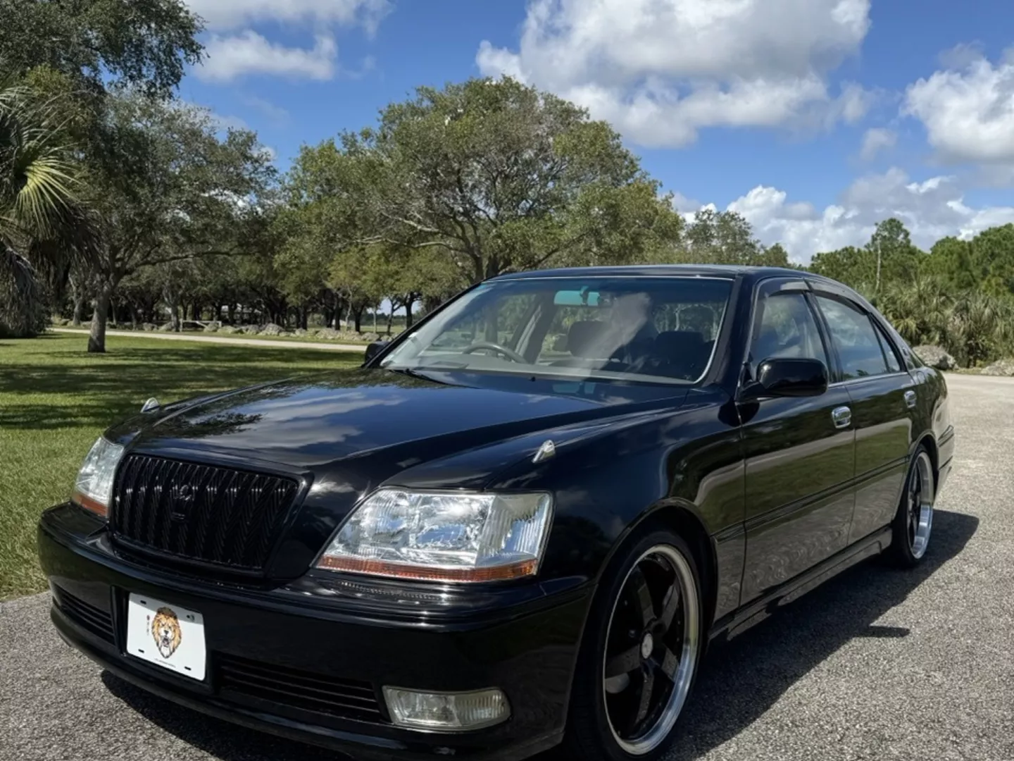 The 1999 Toyota Crown Majesta 3.0 is a luxurious and powerful full-size JDM sedan that perfectly blends timeless Toyota craftsmanship with tasteful modern upgrades. This particular example is finished in a one-off Toyota Black Pearl Metallic, giving it a deep, mirror-like shine that enhances its sleek, executive profile. The finish pairs beautifully with the majesta factory aero kit and period-correct 19” BADX 632 Loxaryny Grastar Five VIP wheels (made in Japan) — a staggered, polished-lip setup that completes the Majesta’s VIP stance.