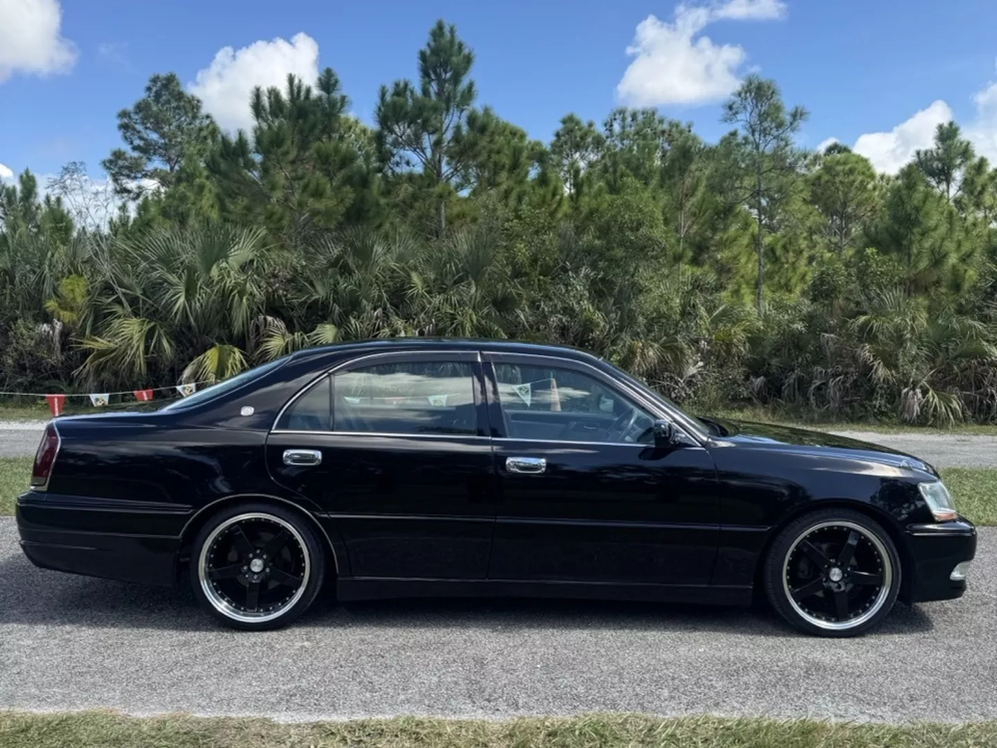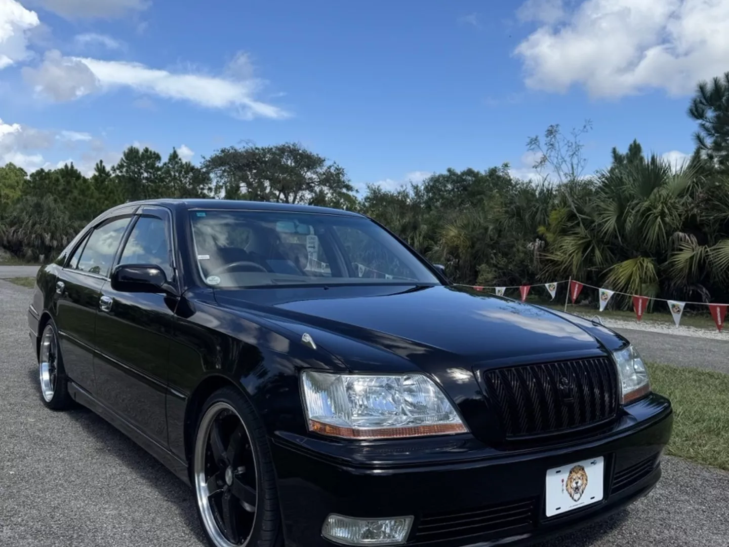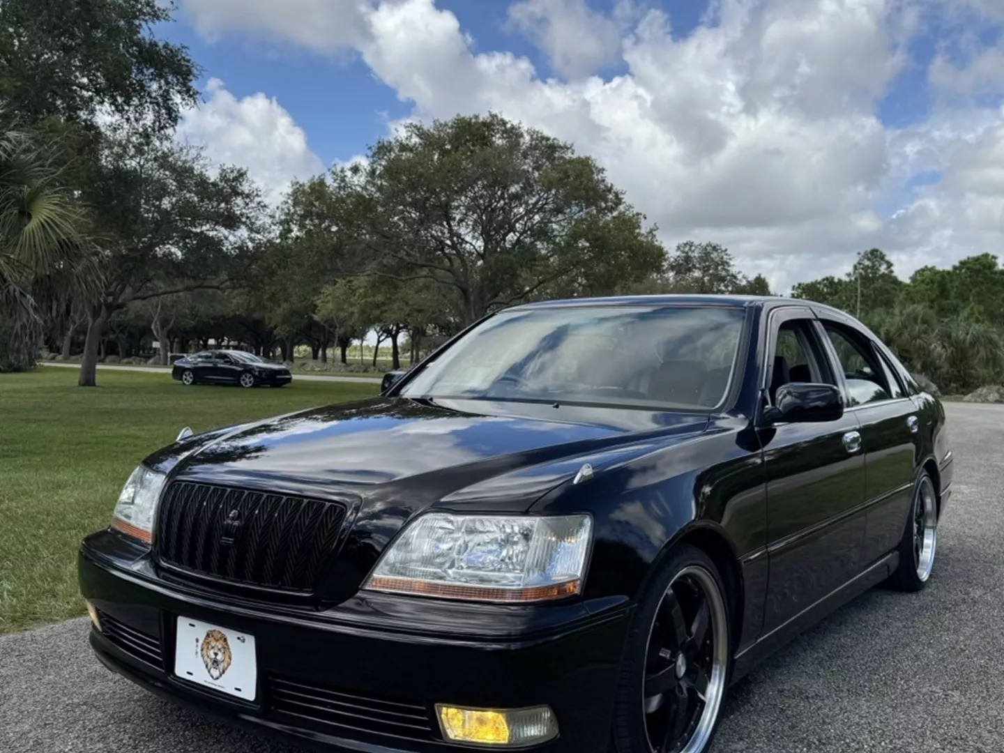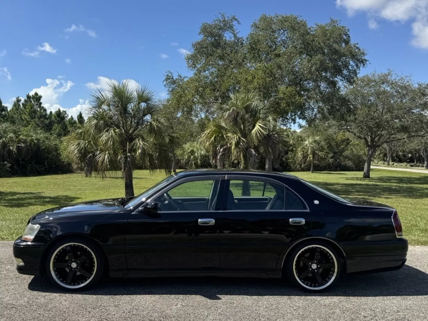 The 1999 Toyota Crown Majesta 3.0 is a luxurious and powerful full-size JDM sedan that perfectly blends timeless Toyota craftsmanship with tasteful modern upgrades. This particular example is finished in a one-off Toyota Black Pearl Metallic, giving it a deep, mirror-like shine that enhances its sleek, executive profile. The finish pairs beautifully with the majesta factory aero kit and period-correct 19” BADX 632 Loxaryny Grastar Five VIP wheels (made in Japan) — a staggered, polished-lip setup that completes the Majesta’s VIP stance.
