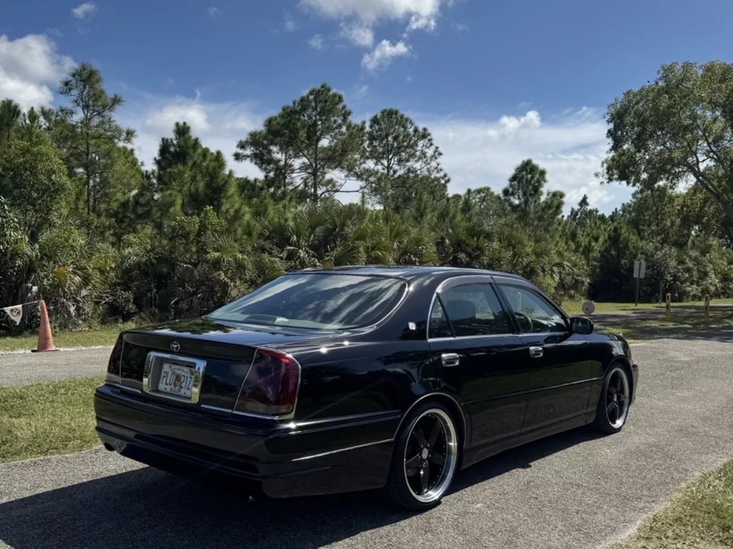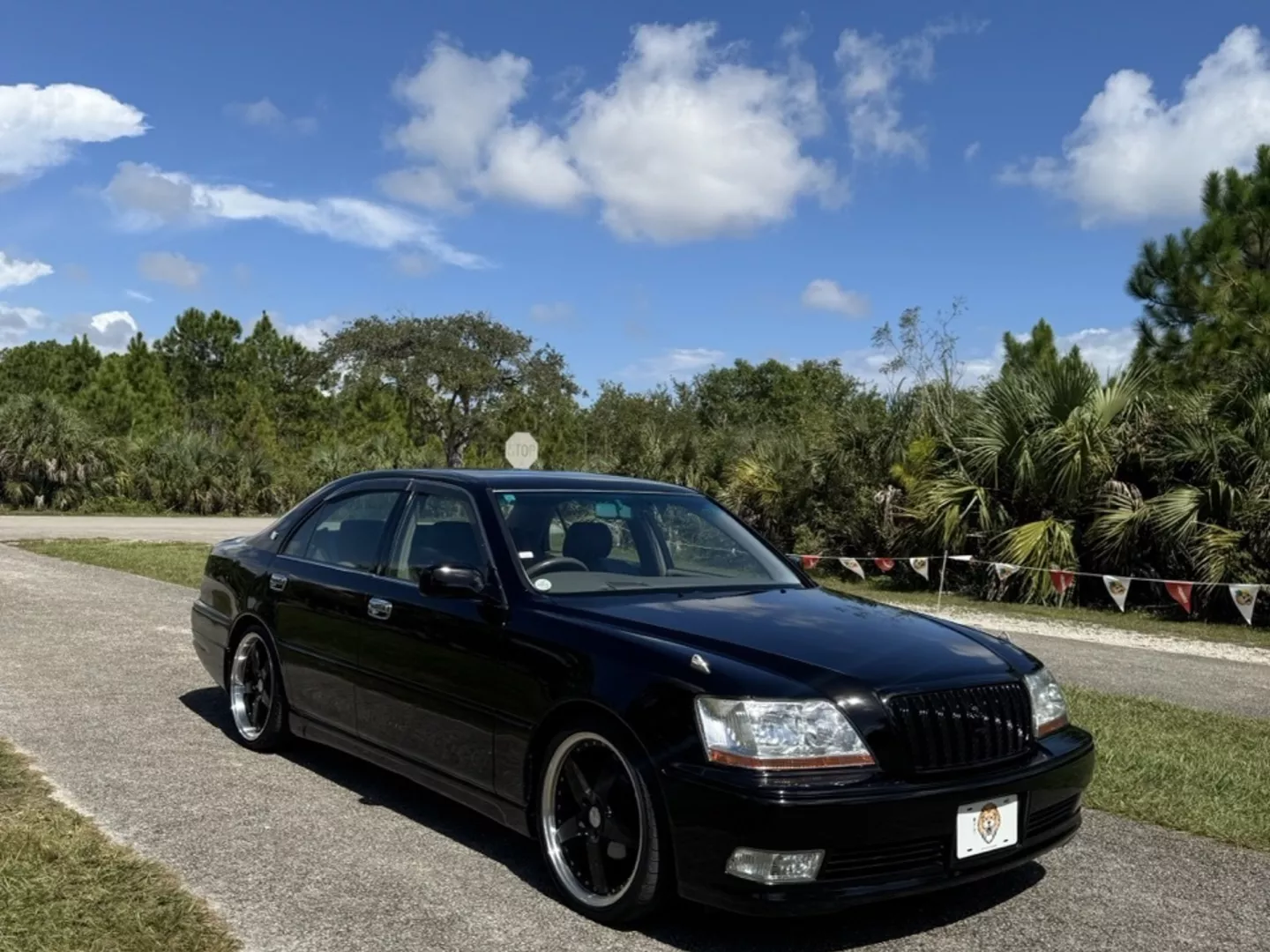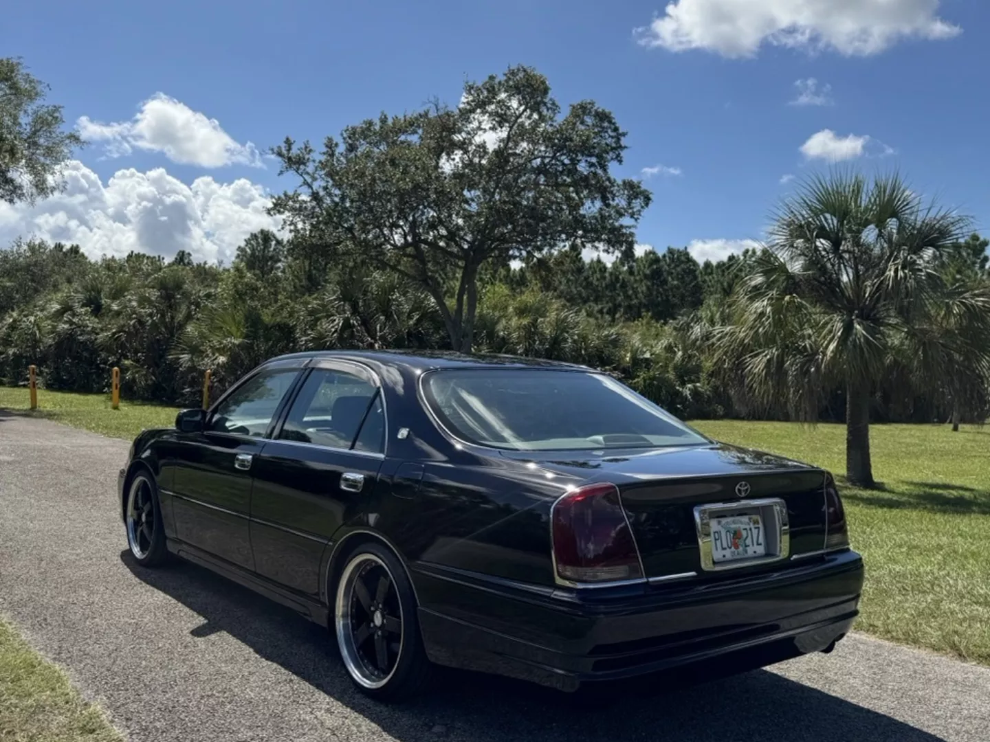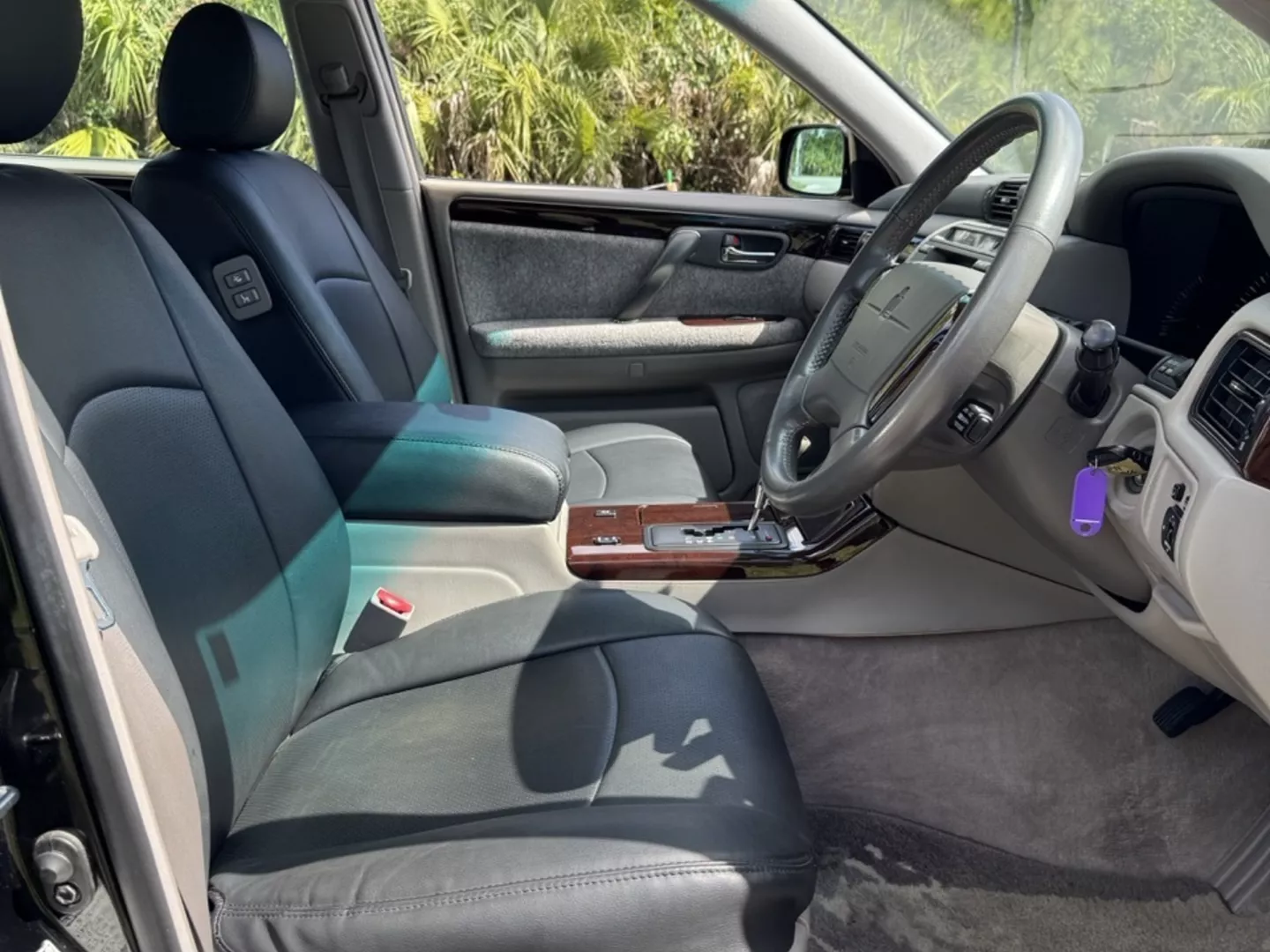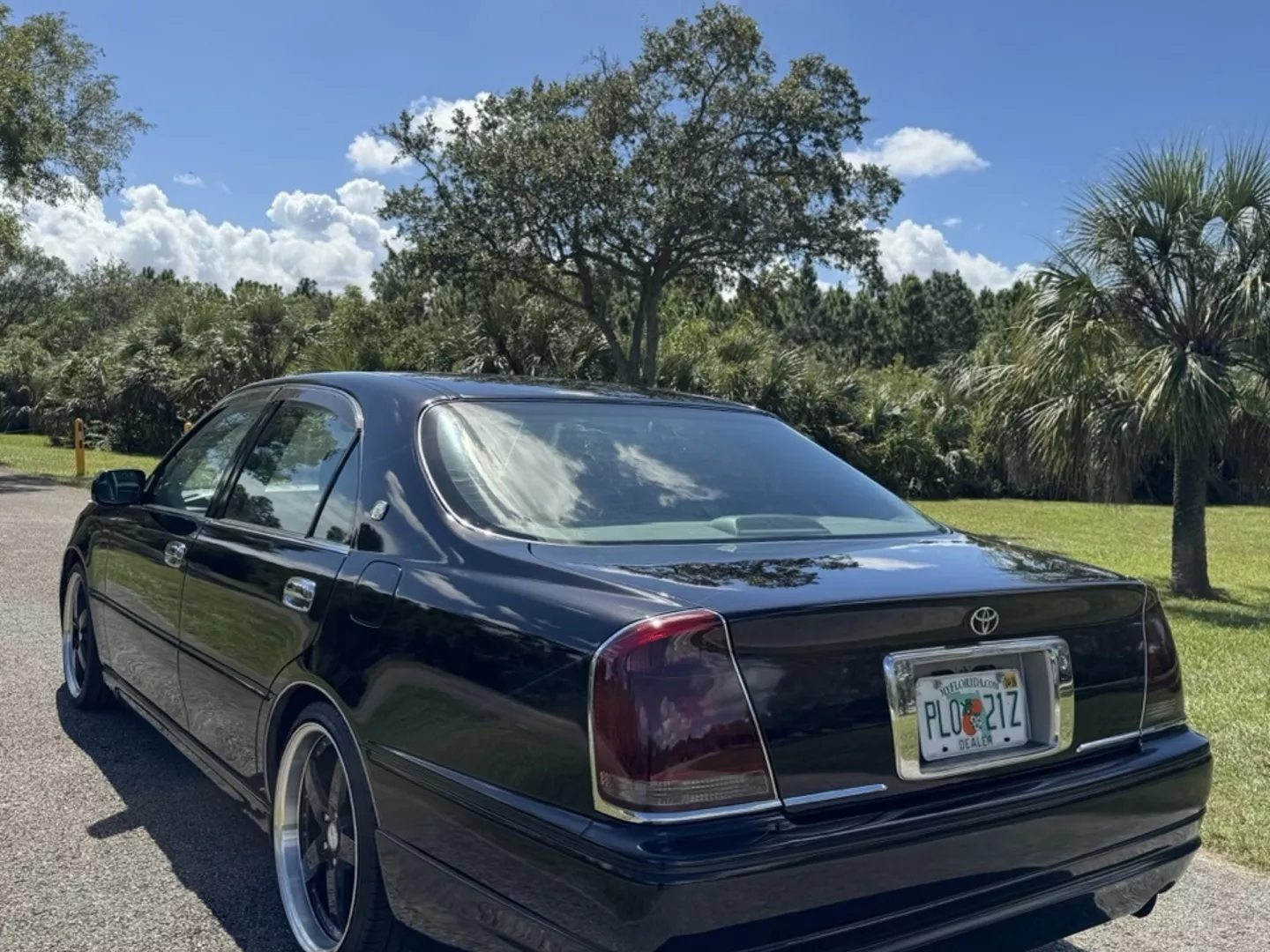 The 1999 Toyota Crown Majesta 3.0 is a luxurious and powerful full-size JDM sedan that perfectly blends timeless Toyota craftsmanship with tasteful modern upgrades. This particular example is finished in a one-off Toyota Black Pearl Metallic, giving it a deep, mirror-like shine that enhances its sleek, executive profile. The finish pairs beautifully with the majesta factory aero kit and period-correct 19” BADX 632 Loxaryny Grastar Five VIP wheels (made in Japan) — a staggered, polished-lip setup that completes the Majesta’s VIP stance.