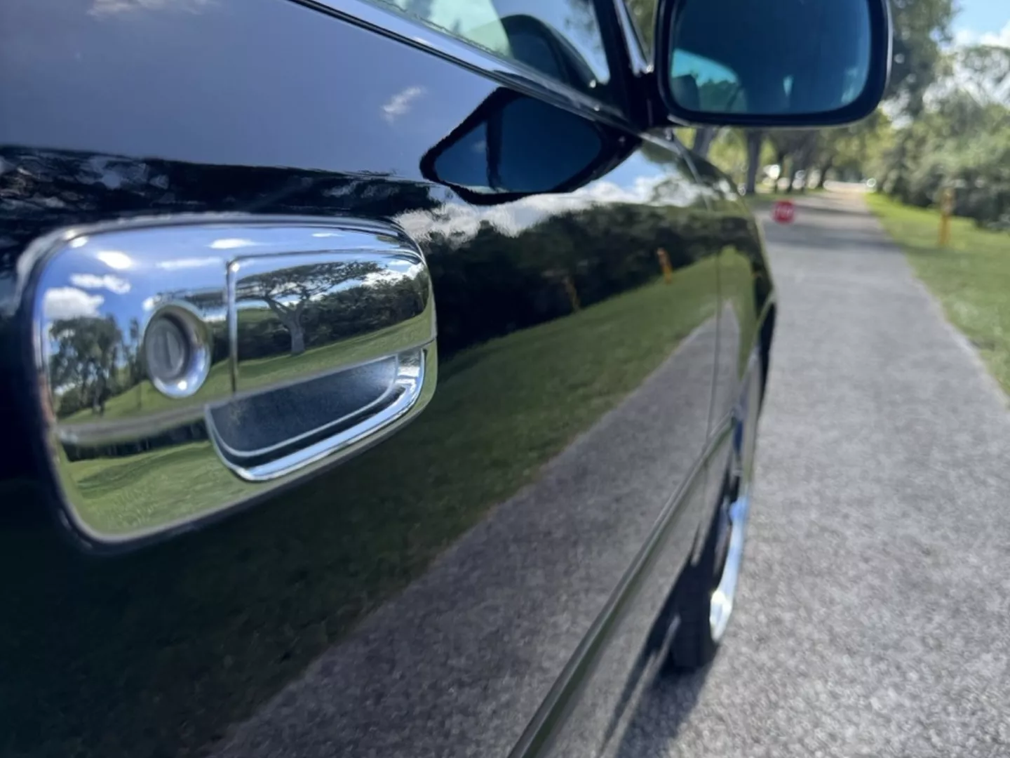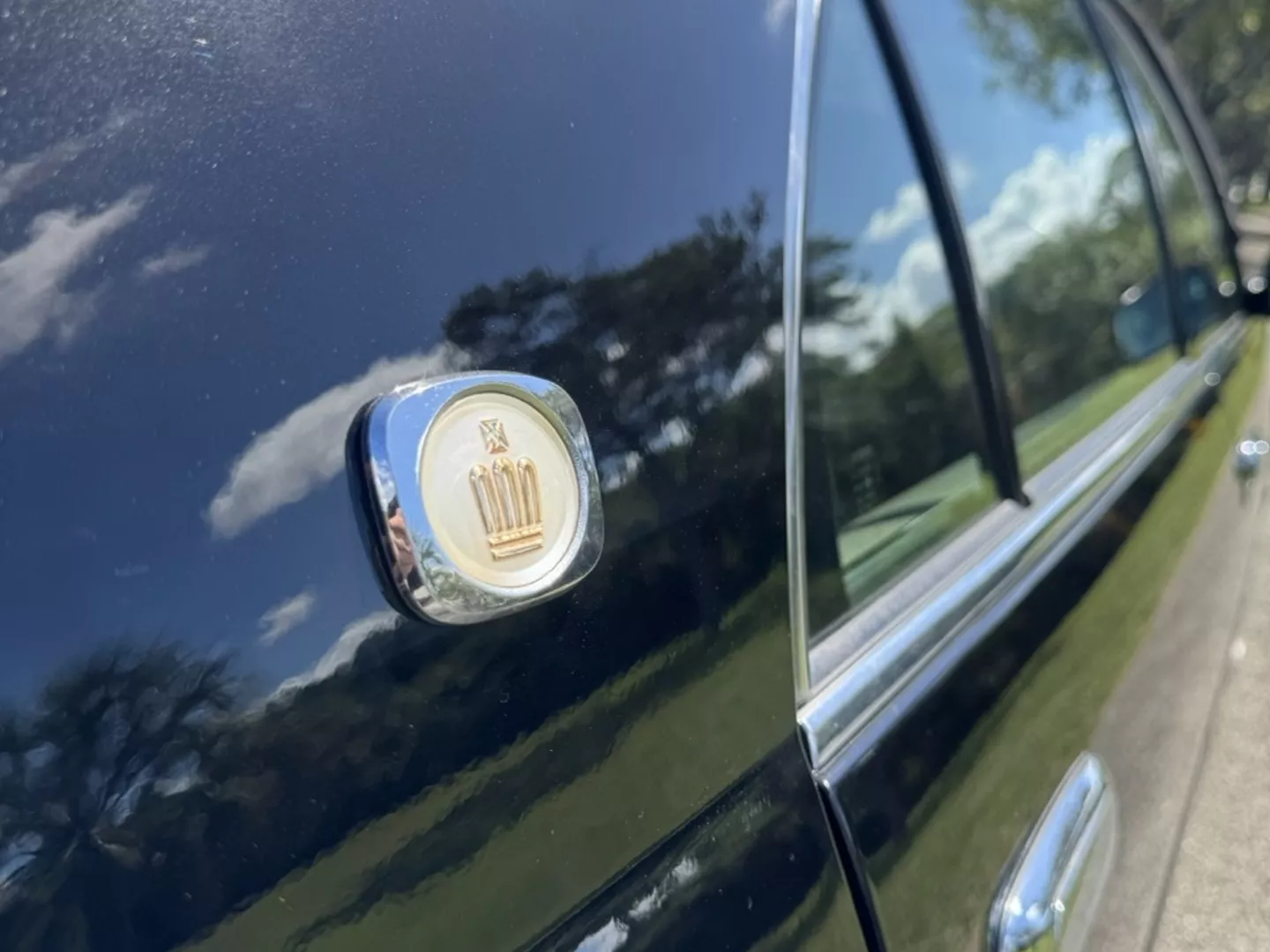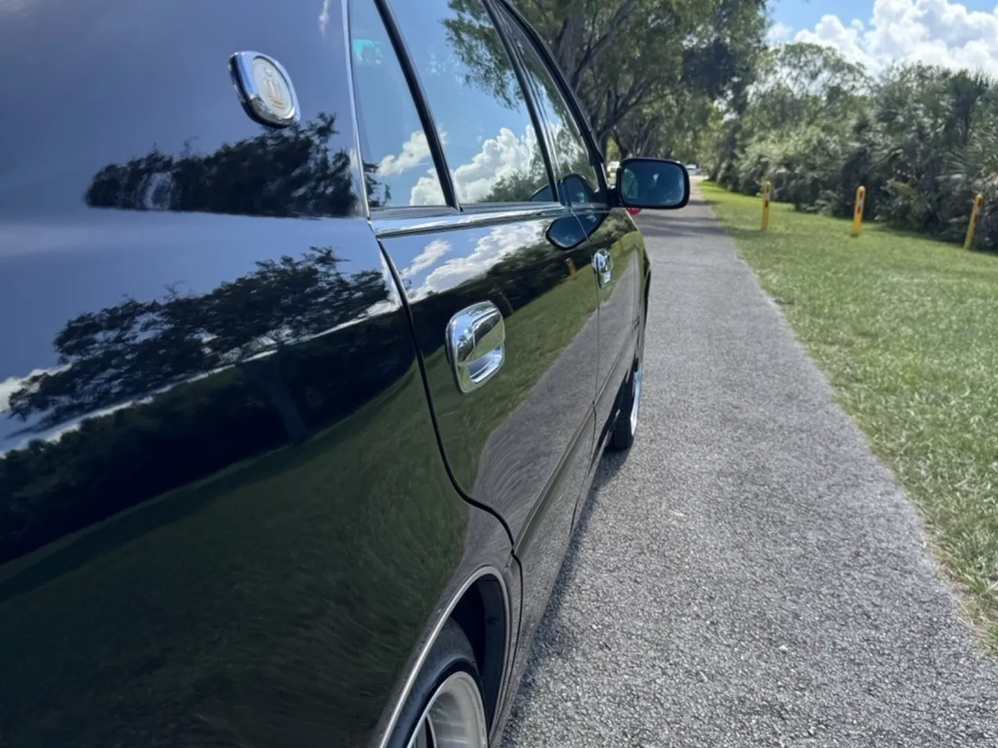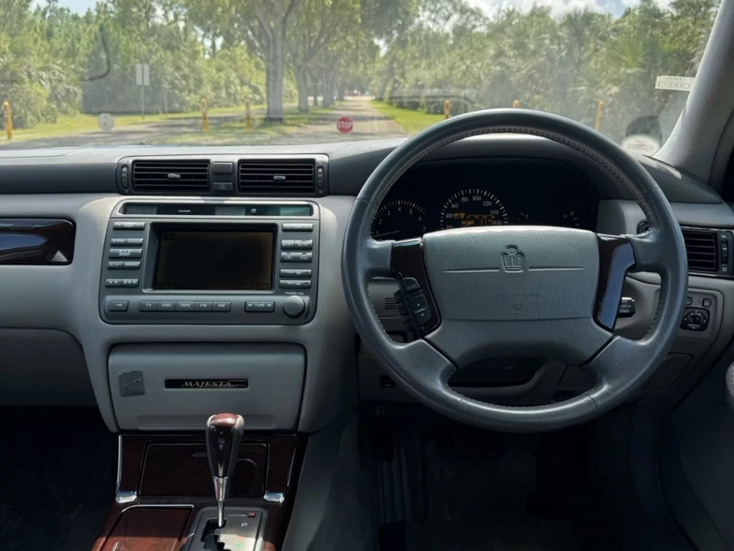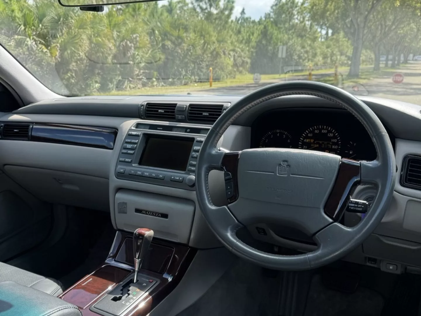 The 1999 Toyota Crown Majesta 3.0 is a luxurious and powerful full-size JDM sedan that perfectly blends timeless Toyota craftsmanship with tasteful modern upgrades. This particular example is finished in a one-off Toyota Black Pearl Metallic, giving it a deep, mirror-like shine that enhances its sleek, executive profile. The finish pairs beautifully with the majesta factory aero kit and period-correct 19” BADX 632 Loxaryny Grastar Five VIP wheels (made in Japan) — a staggered, polished-lip setup that completes the Majesta’s VIP stance.