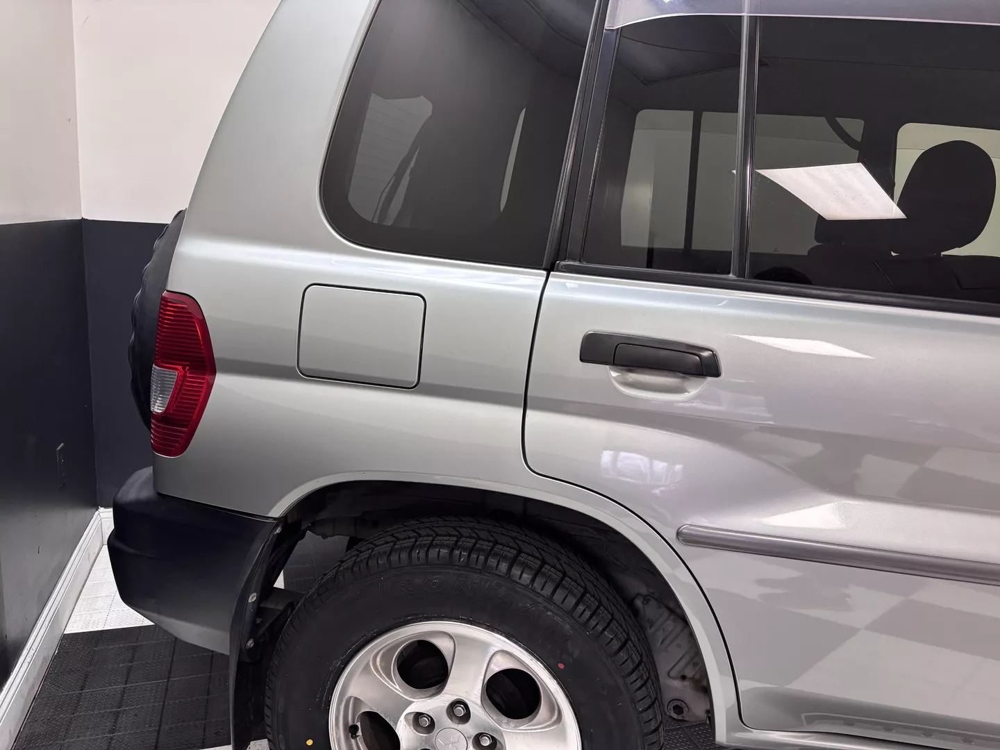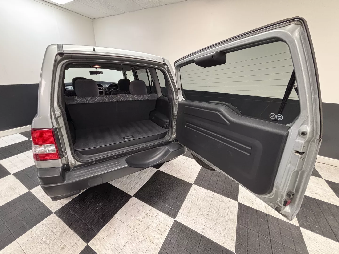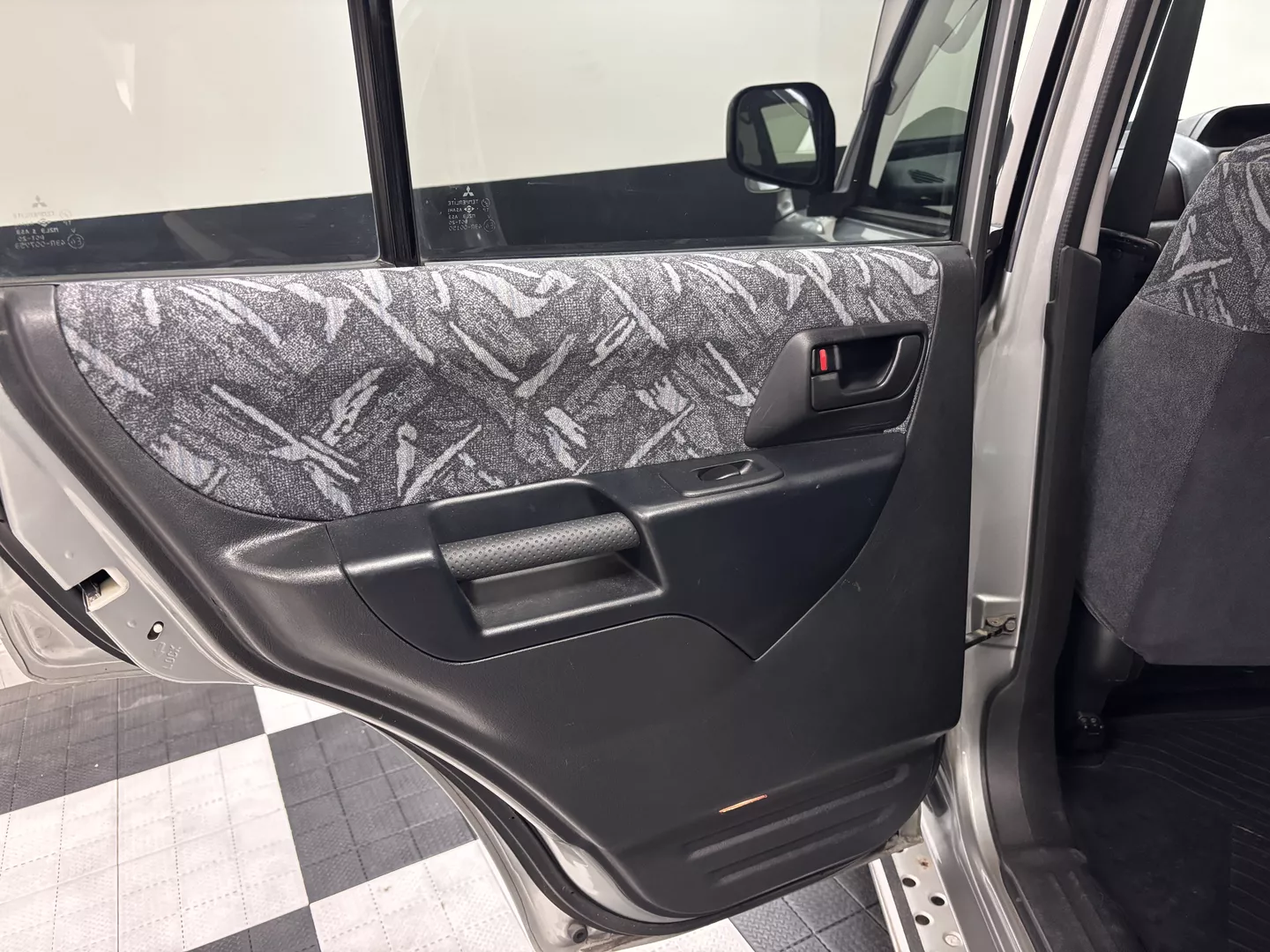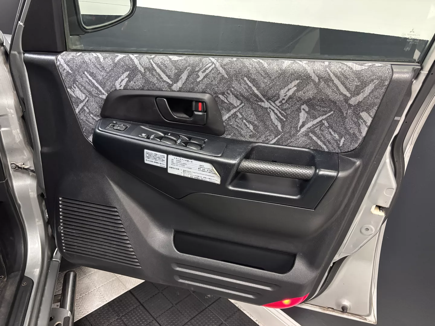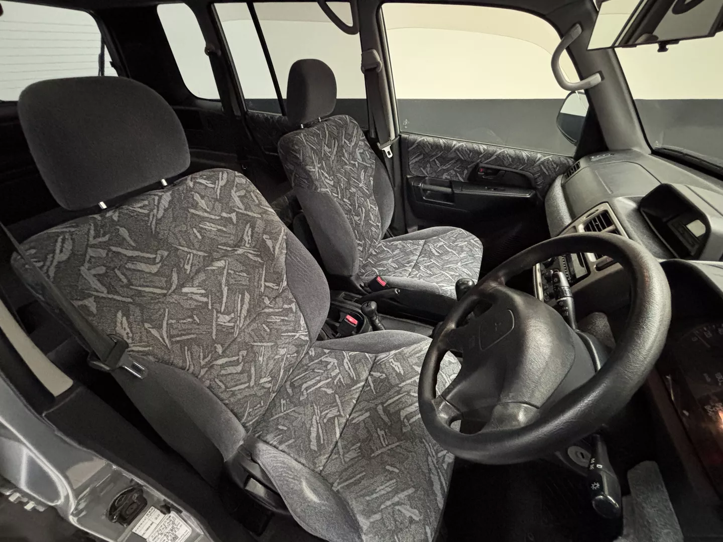 This 2000 Mitsubishi Pajero IO is equipped with a 1.8L 4G93 DOHC GDI engine mated to a 5-speed manual transmission. It has a 4x4 true transfer case with locking differential. The interior features an aftermarket Carrozzeria head unit, rear folding seats as well as rear storage compartment. Exterior features rear mounted spare, and a driver's side fender mirror.