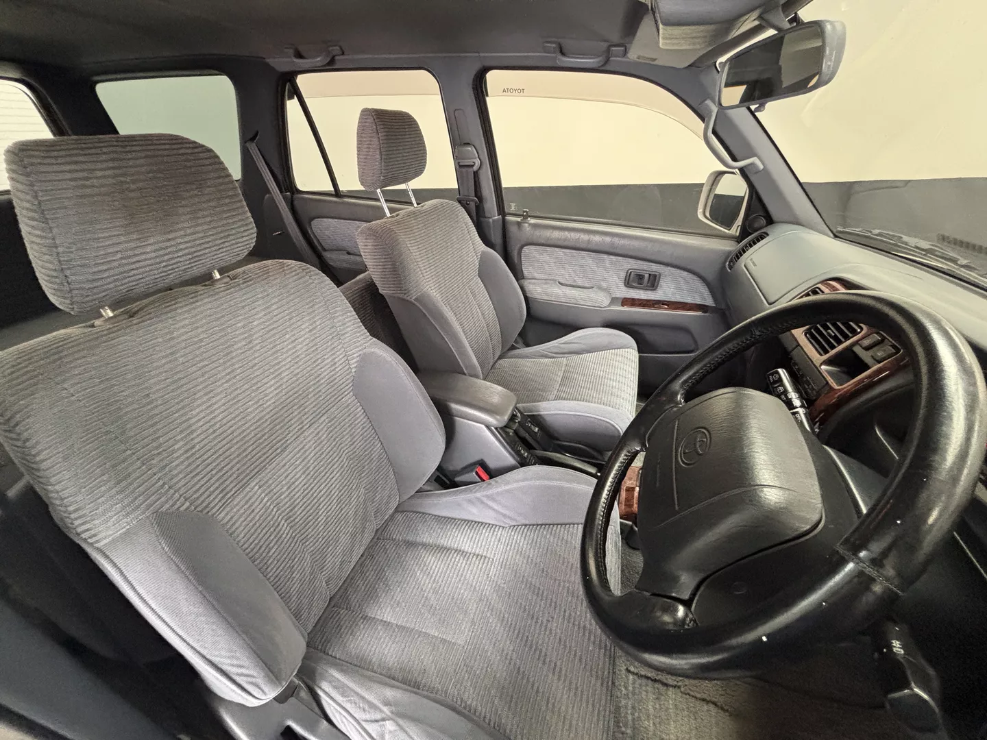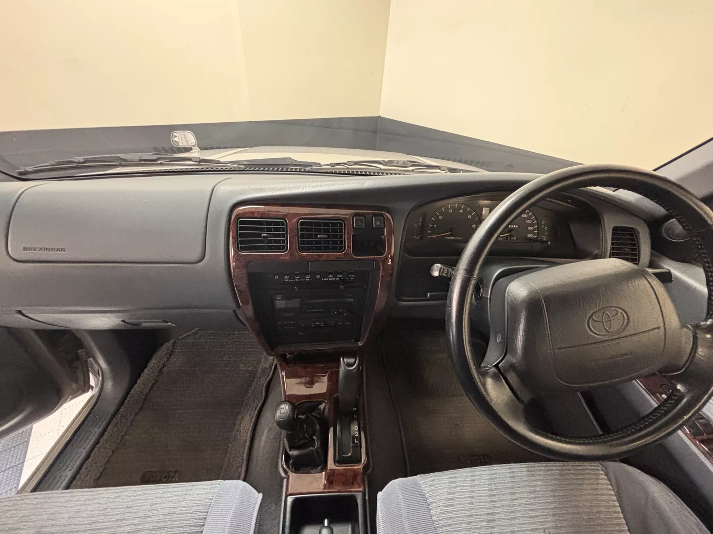 This 1997 Toyota Hilux Surf is equipped with a 5VZ-FE V6 6-cylinder mated to a 4-speed automatic transmission. Interior features a factory Toyota head unit and a powered rear spoiler mirror as well as grey cloth interior.