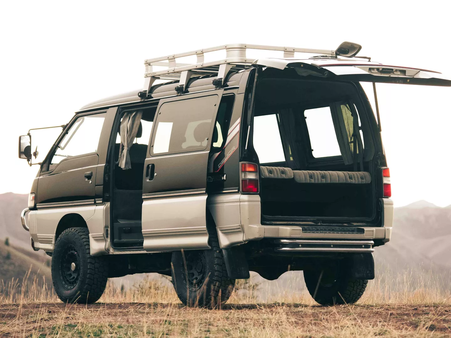 Vader has risen from the volcanic depths of Mustafar with a freshly rebuilt 4D56T engine to impose the will of the Sith on the backroads of Idaho. Clad in sleek Black Rhino wheels, Mickey Thompson A/T tires a 2” lift kit and OG Mitsubishi aluminum roof rack; all droids will tremble at the sheer force Vader emits.