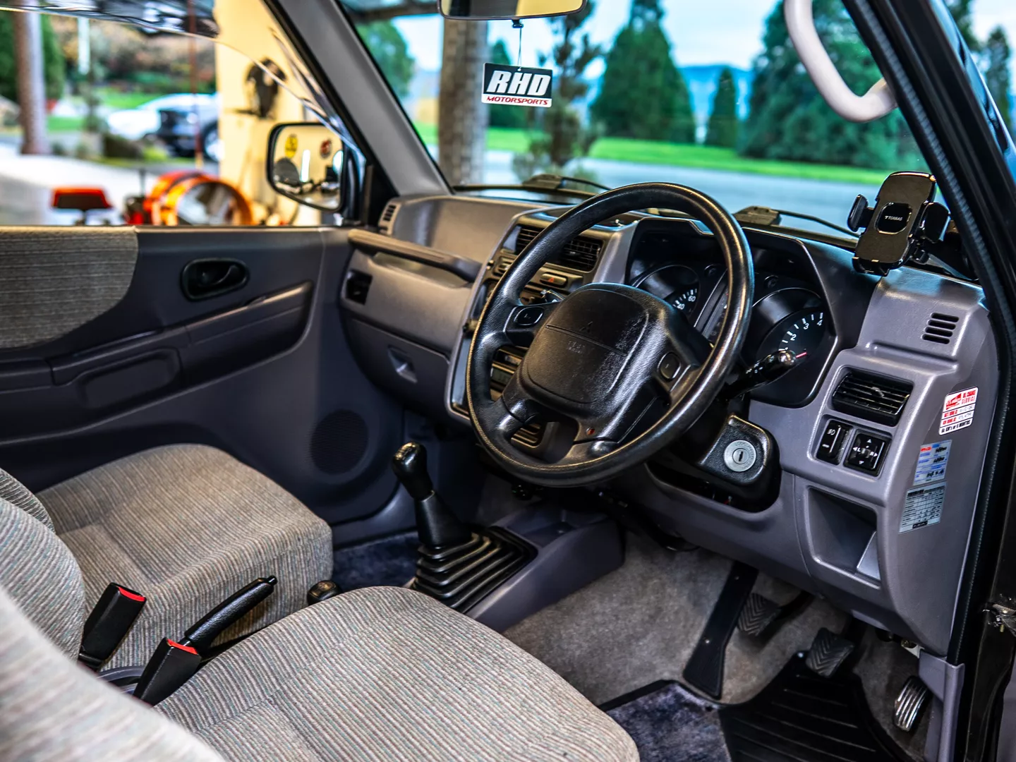 Super clean inside and out with zero rust, this Pajero Jr runs and drives beautifully. The manual transmission shifts crisp, the engine is healthy, and the on-demand 4WD Hi/Lo/2WD system works flawlessly. Whether you’re in the city, on backroads, or in the mountains, this little truck is an absolute blast to drive.