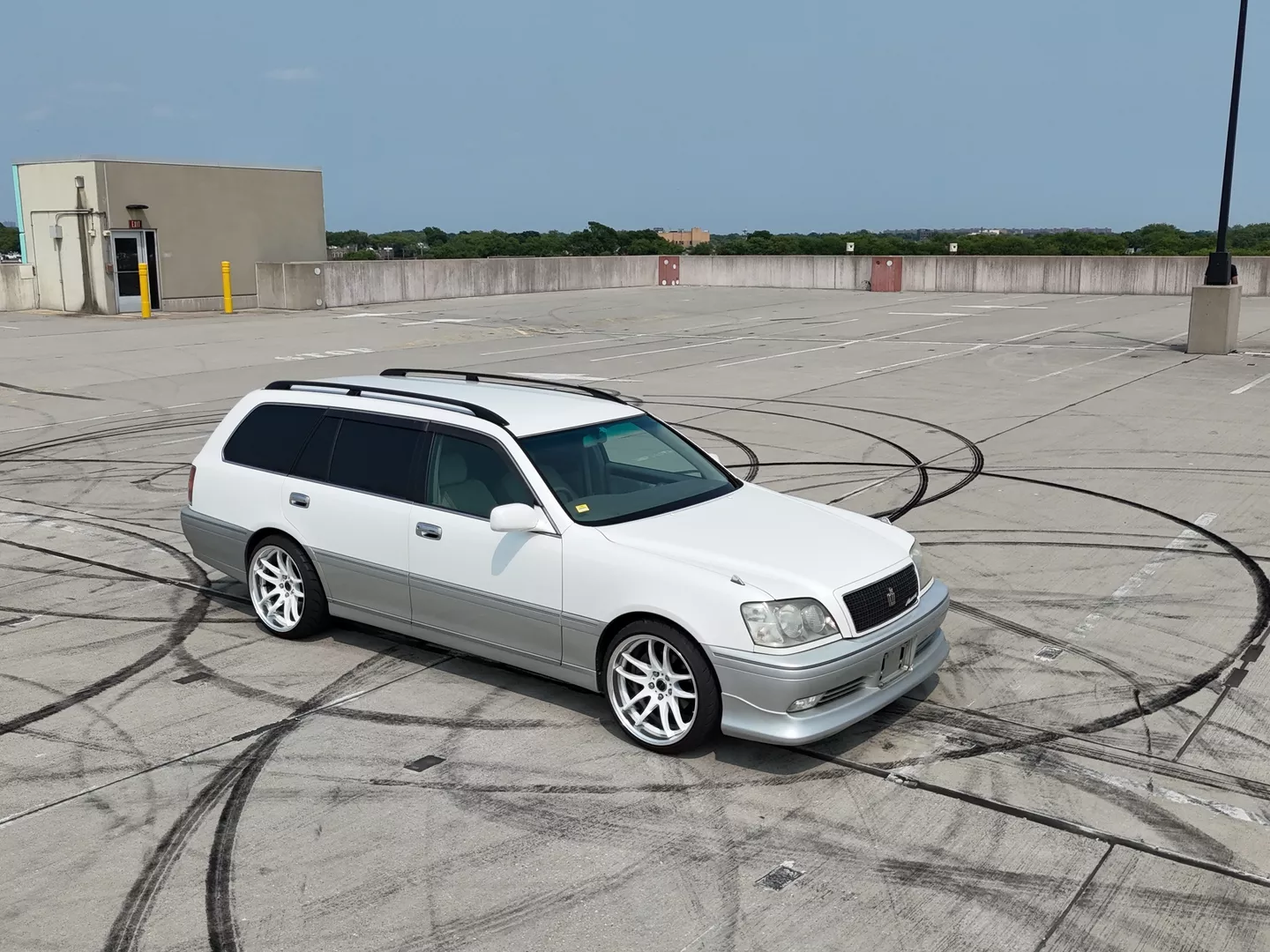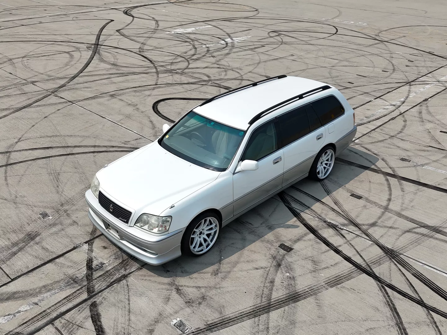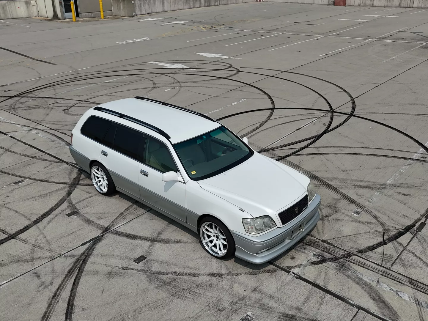 This is a rare and stylish long-roof JDM wagon that combines turbo power with executive comfort. The 2000 Toyota Crown Estate Athlete V is powered by the iconic 1JZ-GTE VVT-i and is finished in a factory 2FQ two-tone Pearl White (057) over Silver Metallic (1C0). With just 75,000 miles (121,000 km) on the clock, this wagon offers the perfect blend of performance, practicality, and VIP presence.