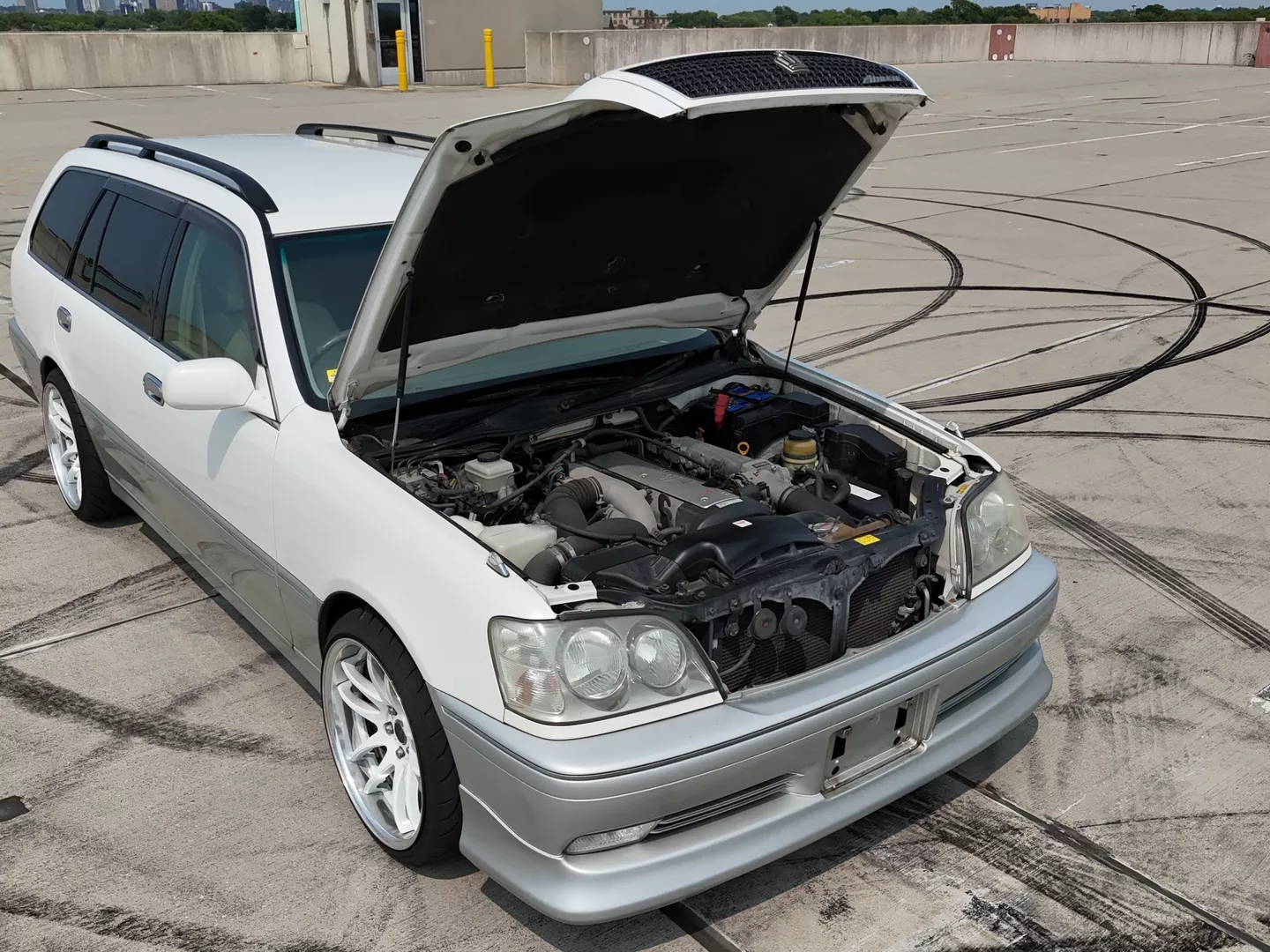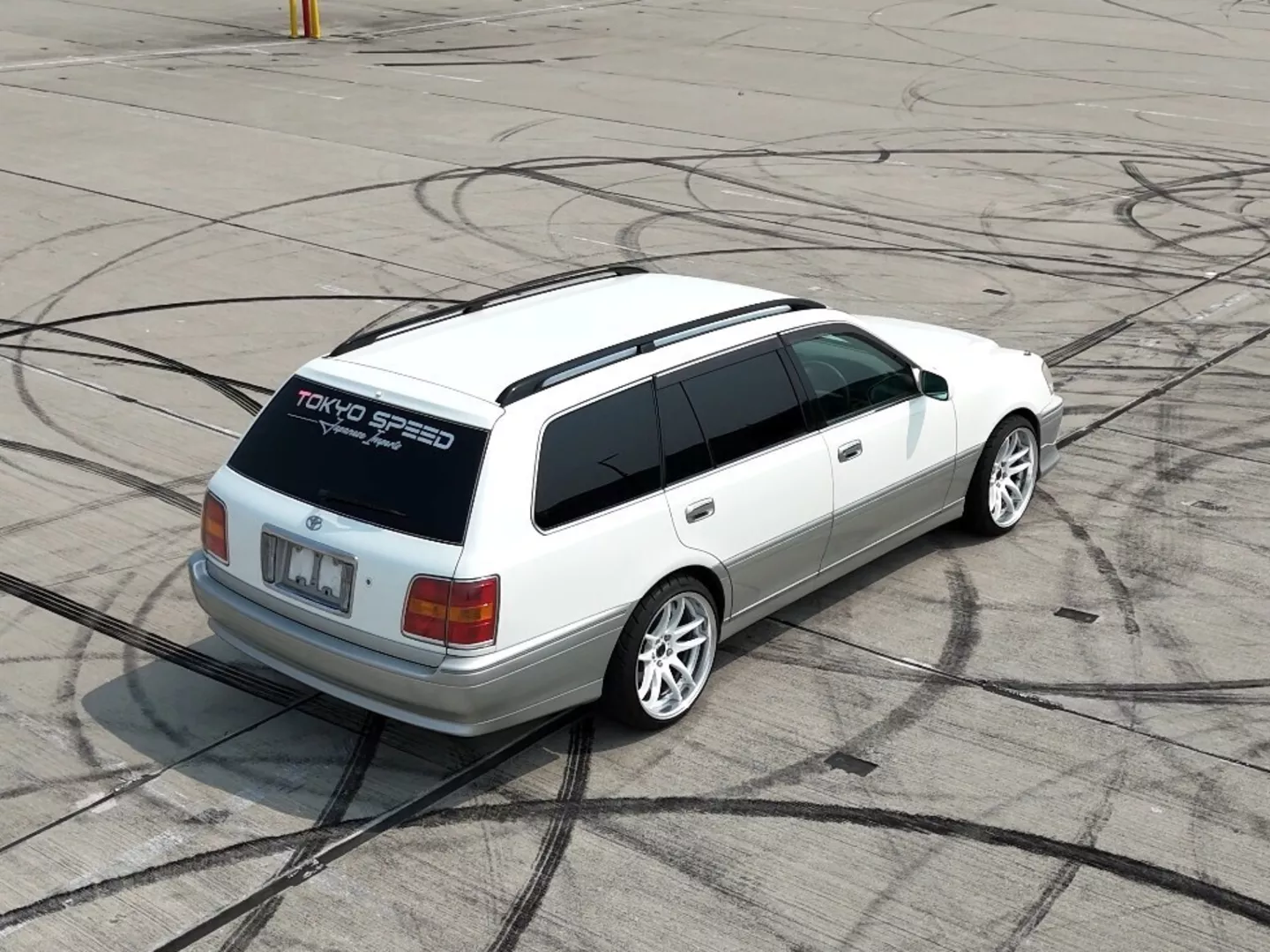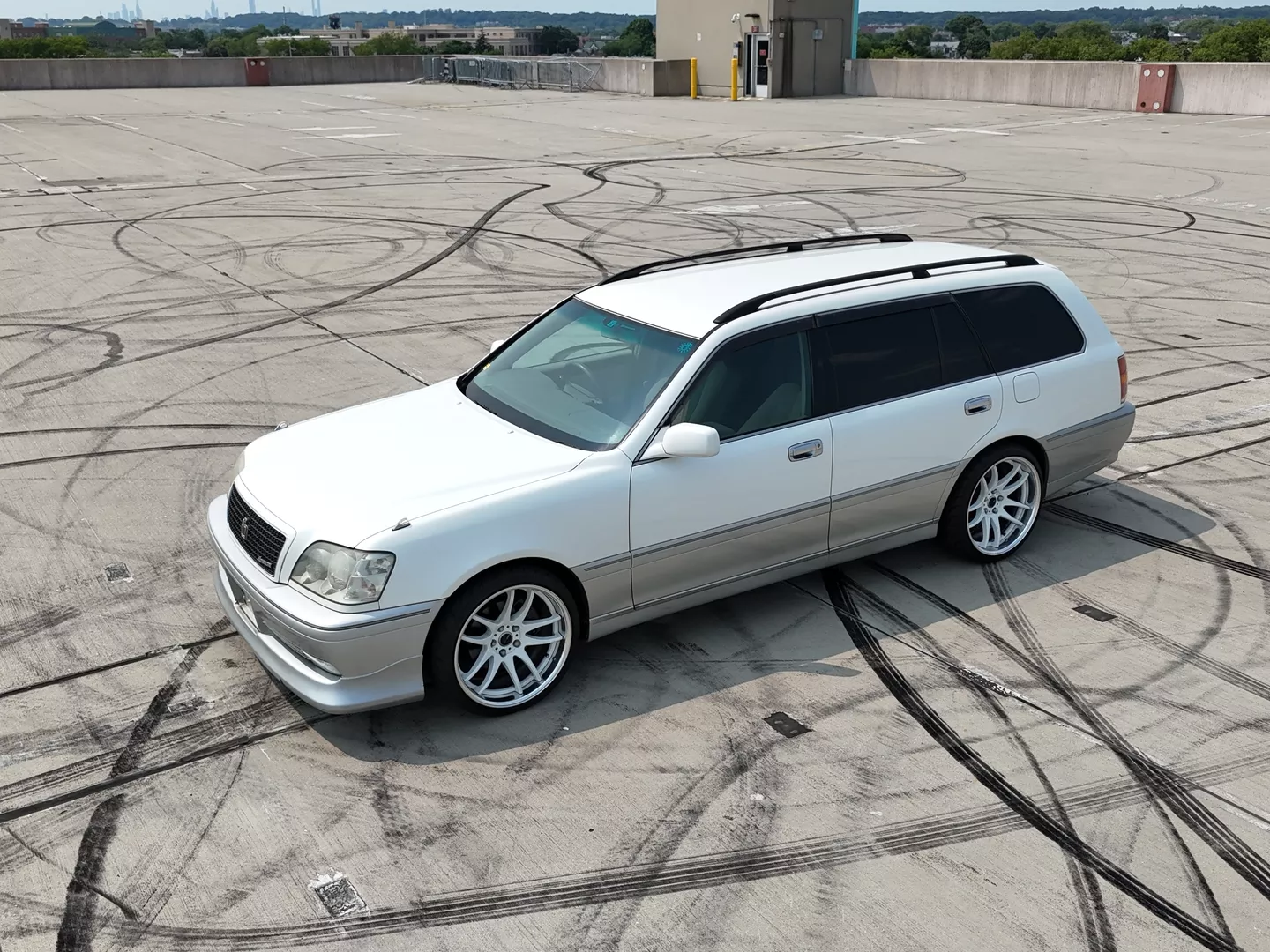 This is a rare and stylish long-roof JDM wagon that combines turbo power with executive comfort. The 2000 Toyota Crown Estate Athlete V is powered by the iconic 1JZ-GTE VVT-i and is finished in a factory 2FQ two-tone Pearl White (057) over Silver Metallic (1C0). With just 75,000 miles (121,000 km) on the clock, this wagon offers the perfect blend of performance, practicality, and VIP presence.