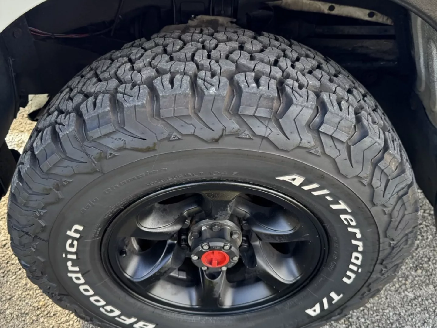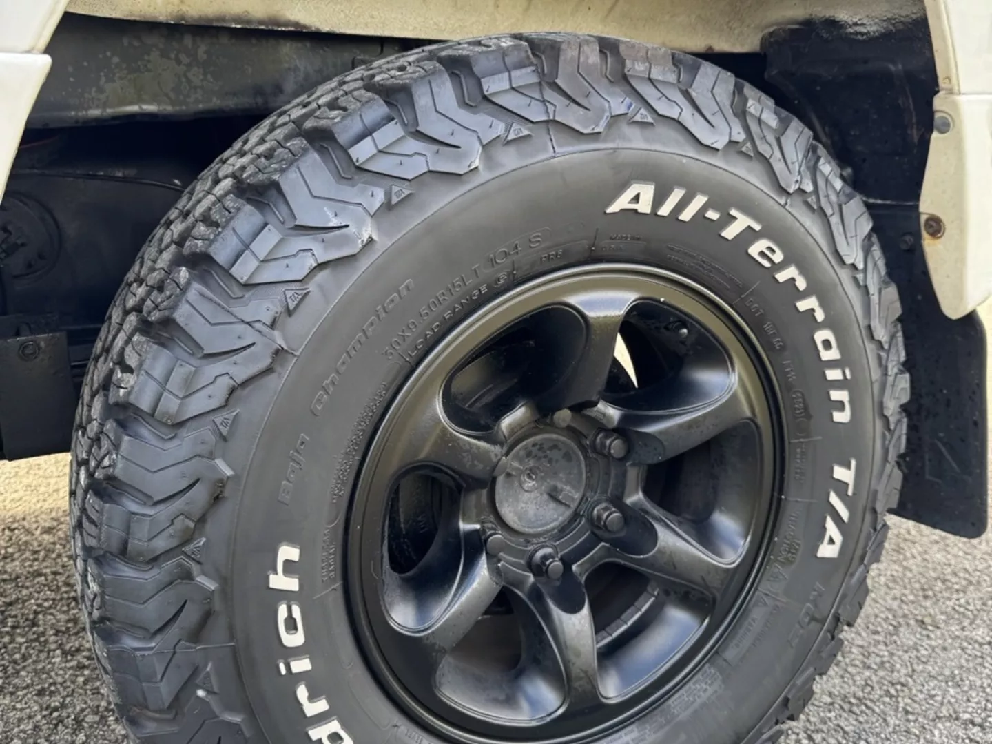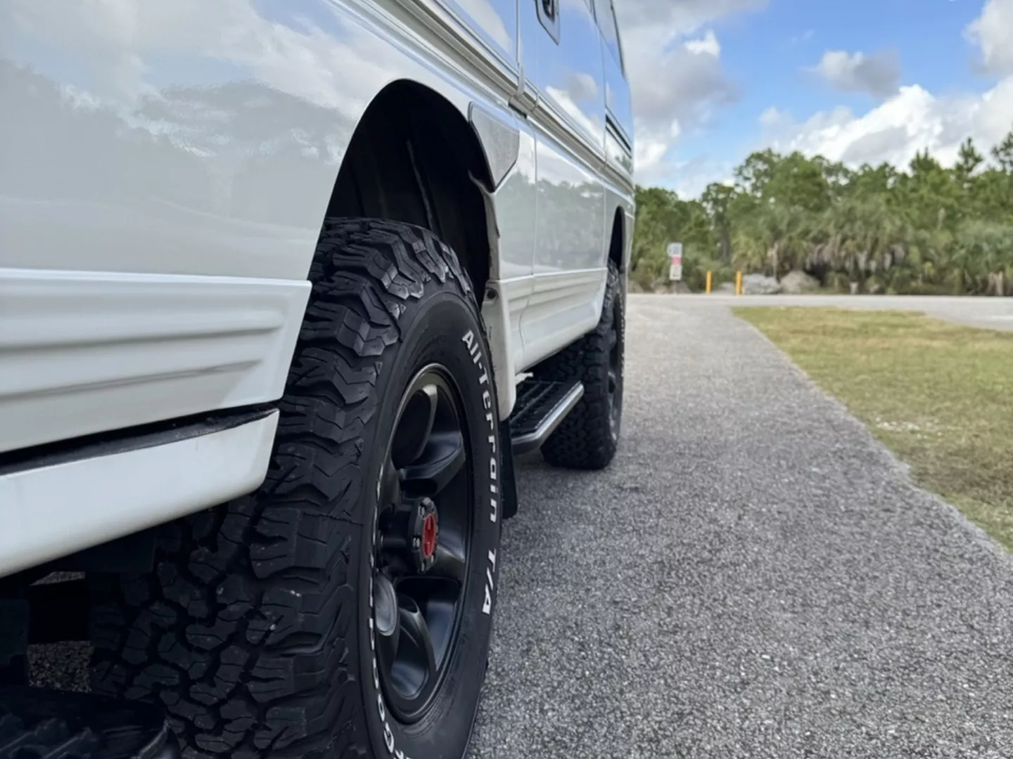 This Delica has been thoughtfully upgraded with a 2-inch suspension lift and new shock absorbers, improving both ground clearance and ride control over rough surfaces. It now rides on a set of BFGoodrich KO2 Baja Champion All-Terrain tires mounted on aggressive black 15-inch aftermarket wheels. These tires are approximately 3.5–4 inches taller than the factory tire size, dramatically improving approach angles, obstacle clearance, and overall trail presence. The KO2s are renowned for their unmatched versatility—designed to perform exceptionally well on pavement with quiet highway manners, while delivering outstanding grip off-road in mud, snow, sand, loose dirt, and rocky terrain. This dual-purpose performance makes them ideal for drivers who want a single tire capable of handling both daily road use and demanding off-grid adventures with confidence.
