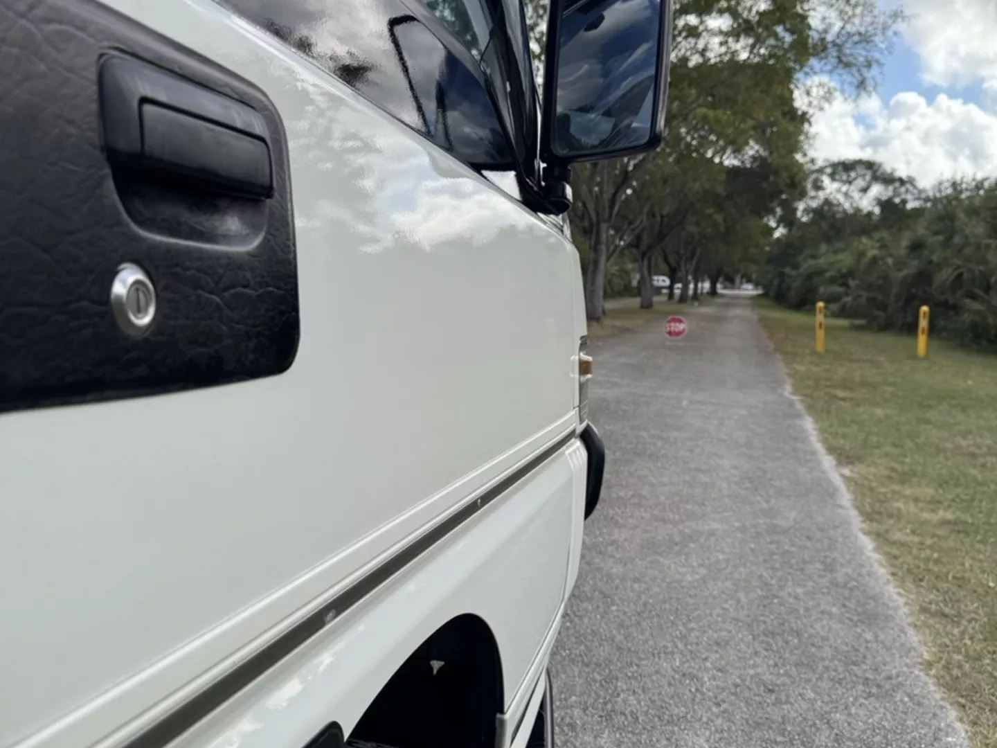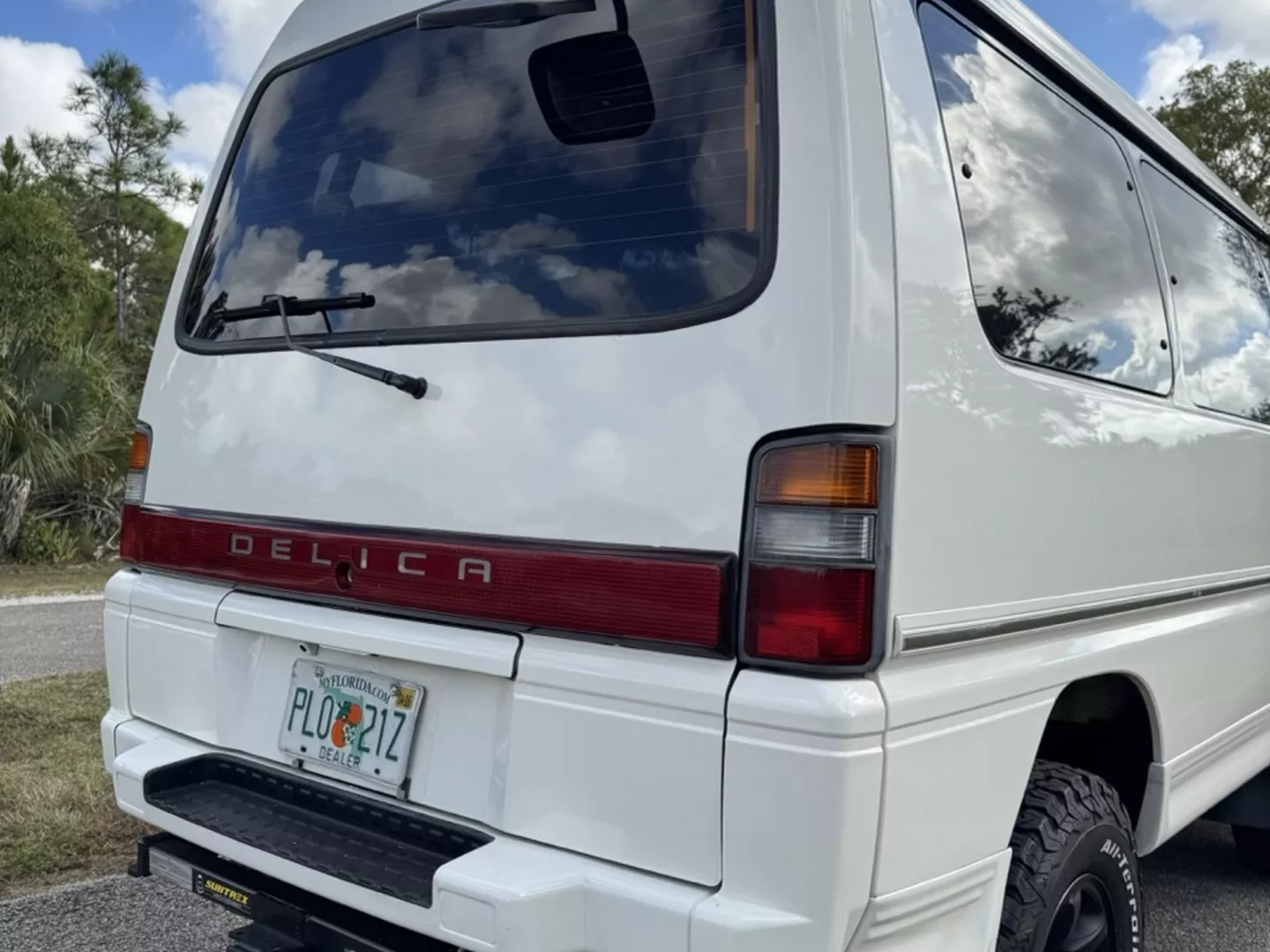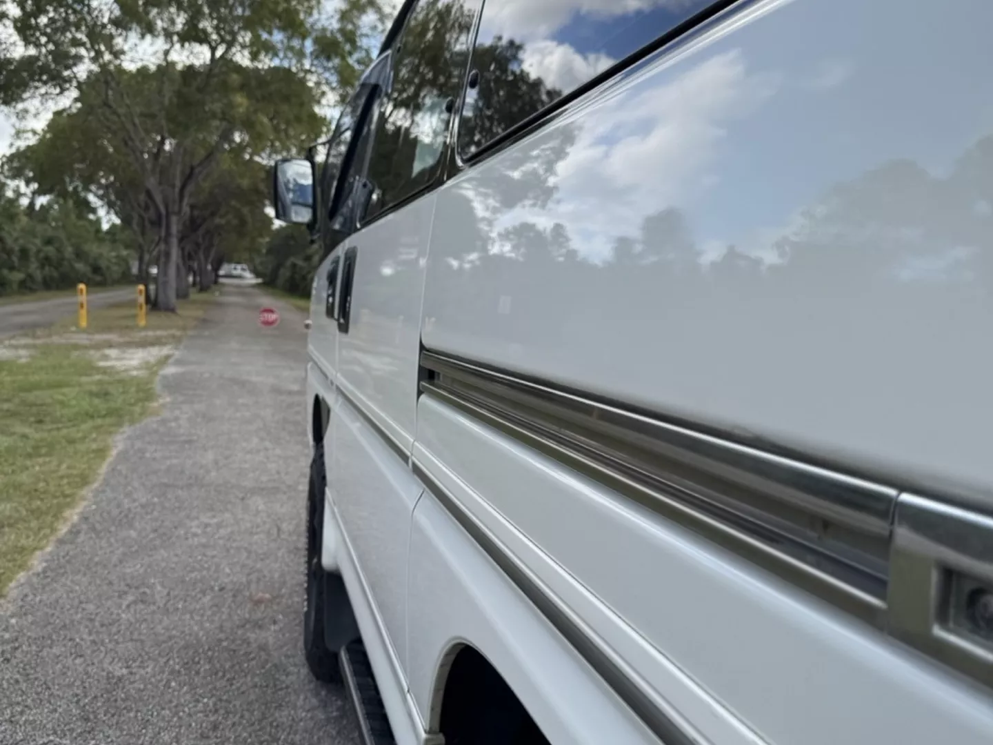 The exterior presentation is equally impressive, with the paint in top condition throughout—showing no fading or flaking just about anywhere. The finish presents extremely well, maintaining strong gloss and clarity that highlight how well this Delica has been cared for over the years.