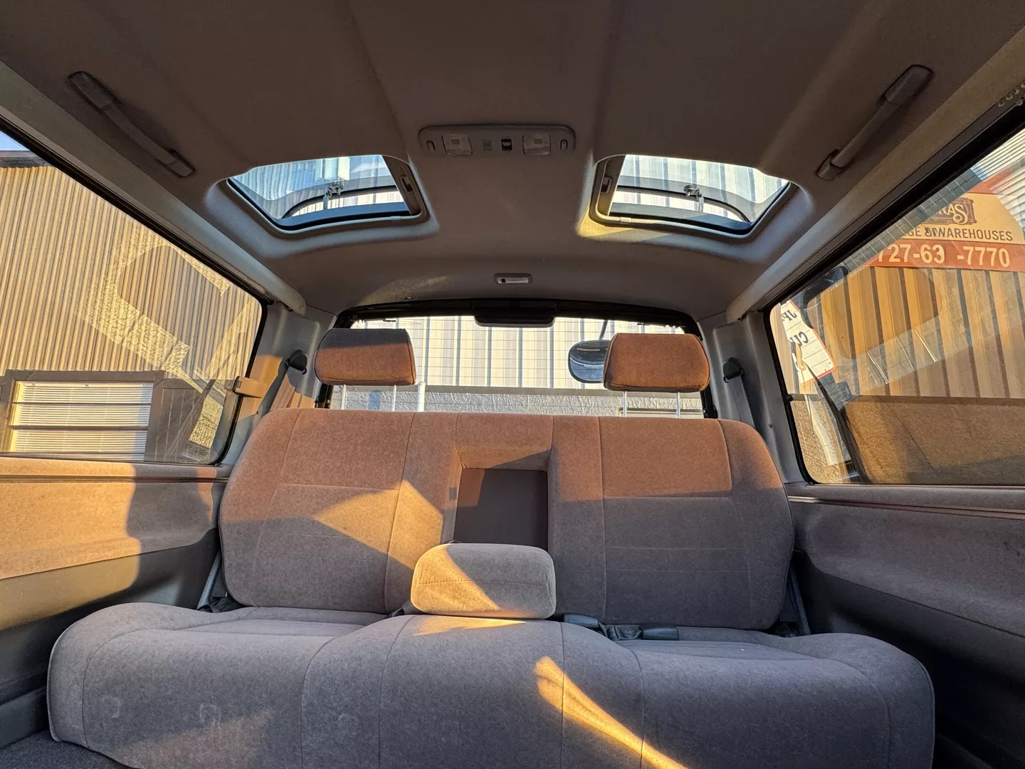 The chocolate-brown interior is in excellent condition, with roof HVAC controls, rear heater, and generous overhead space thanks to the extended roof design. This example features seating for eight, with the ability to remove the third row entirely for a massive cargo area.
