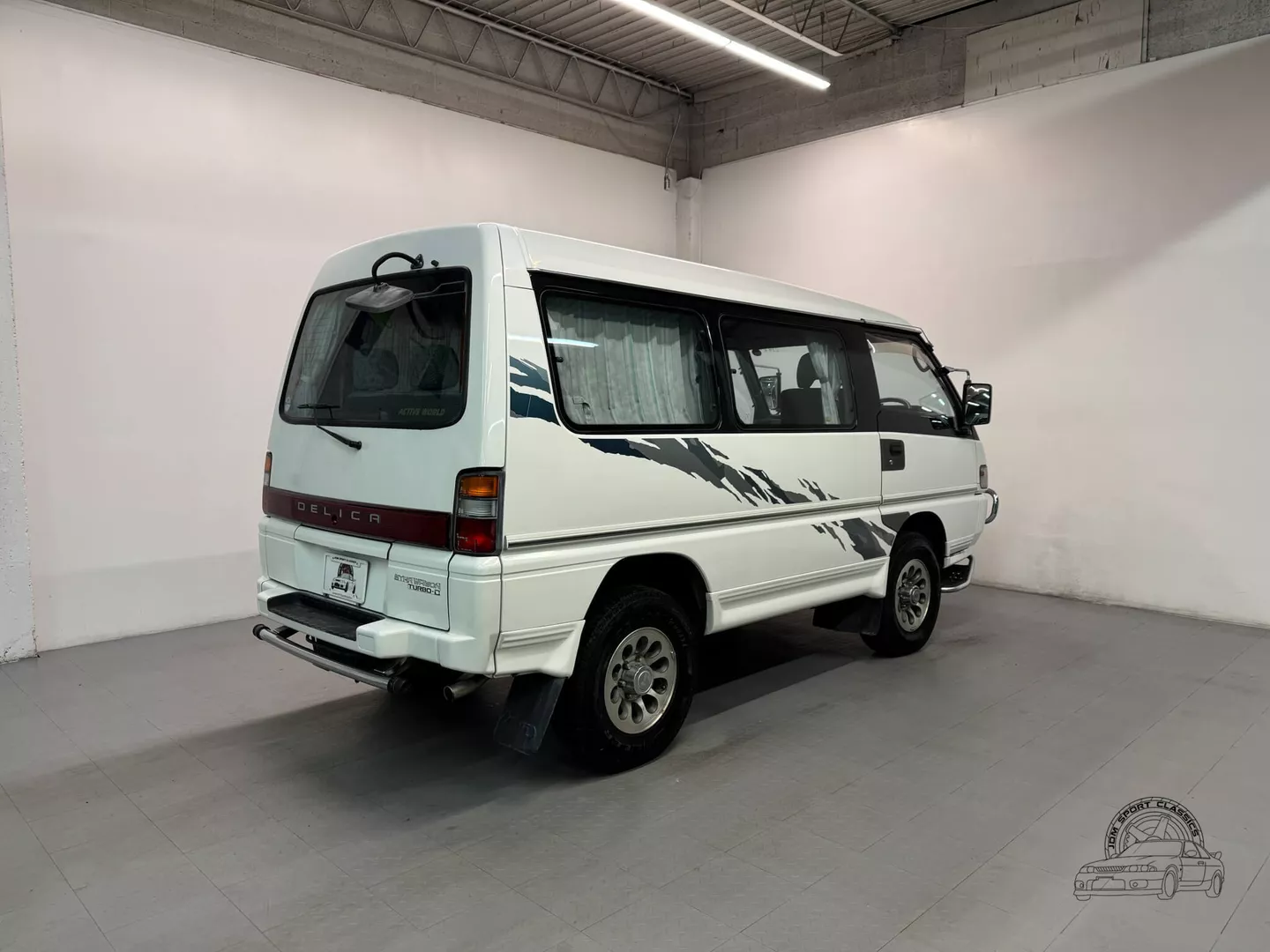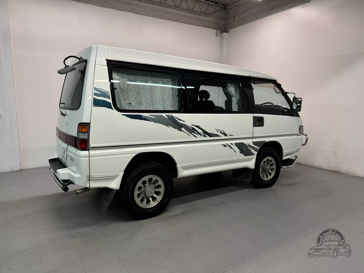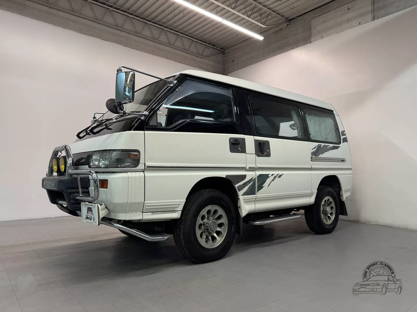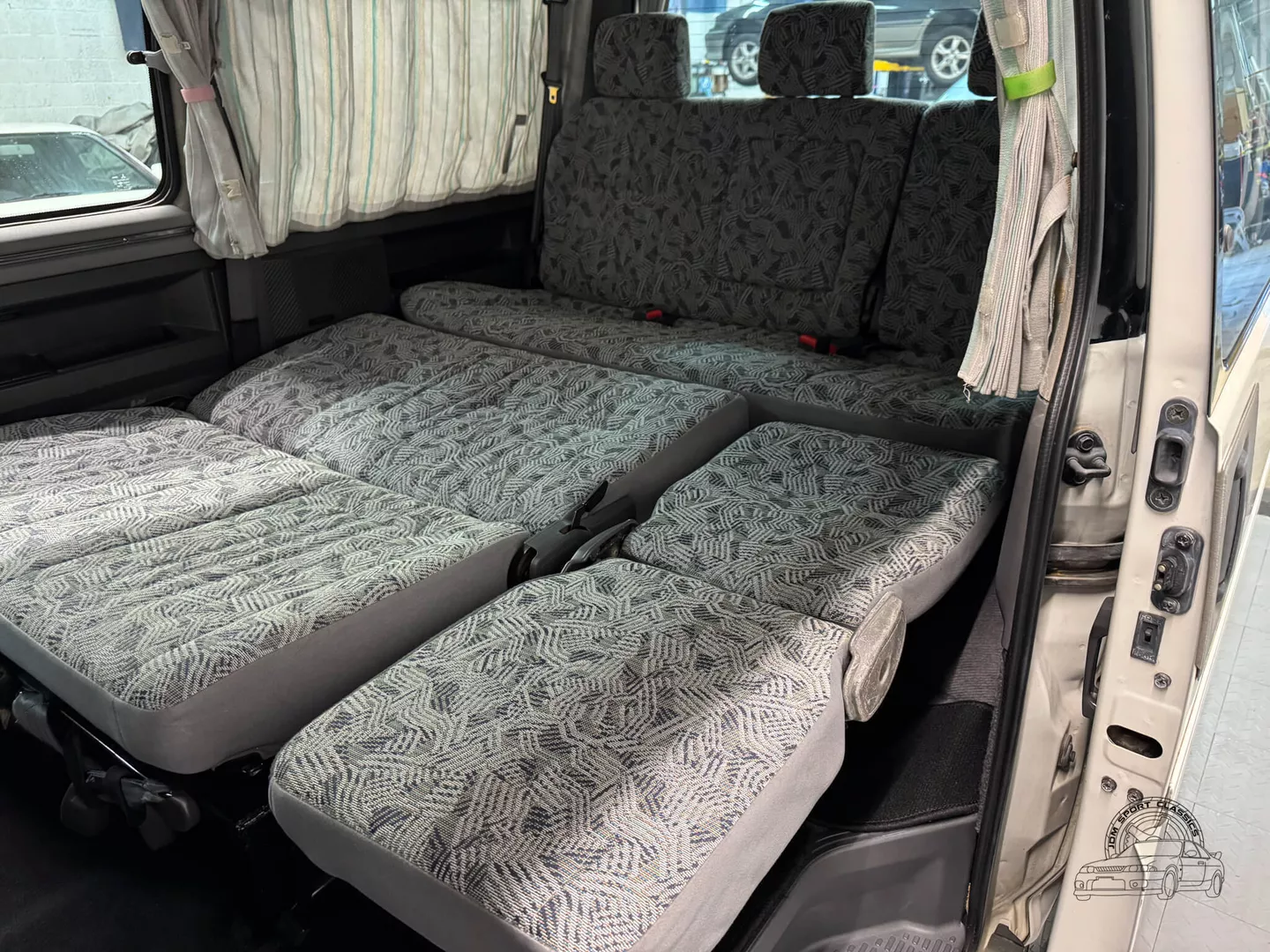 The L300 Delica is easily recognizable in a crowd, though, perhaps not intentionally. SUVs of the era were commonly found with the “boxy” styling that this example displays and consumers loved it. This example is finished in Color Code W09 Summit White, with the Active World decals still in good shape. Gloss black window surrounds offer contrast around the cabin, furthering the look of this already stand-out van. Found with the factory optioned “Monsoon Guards”, chrome push bar with yellow fog lights, side steps, rear parking mirror, and door handle Jewelry guards, this example was certainly well optioned.