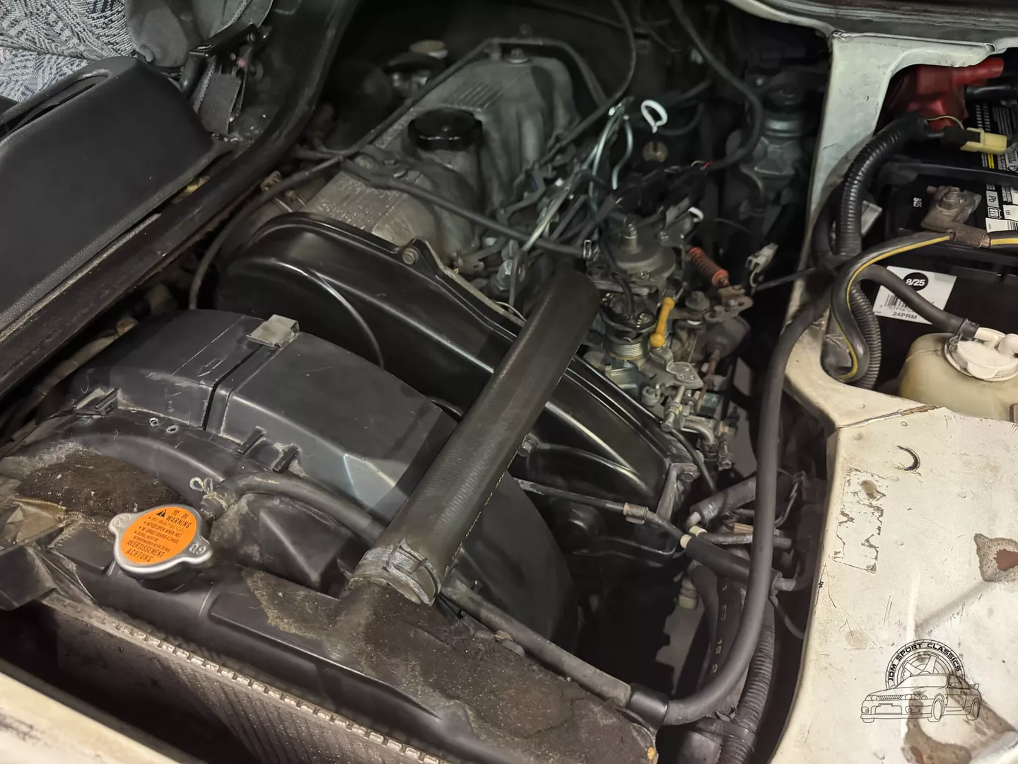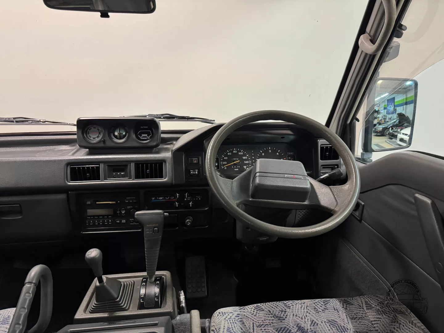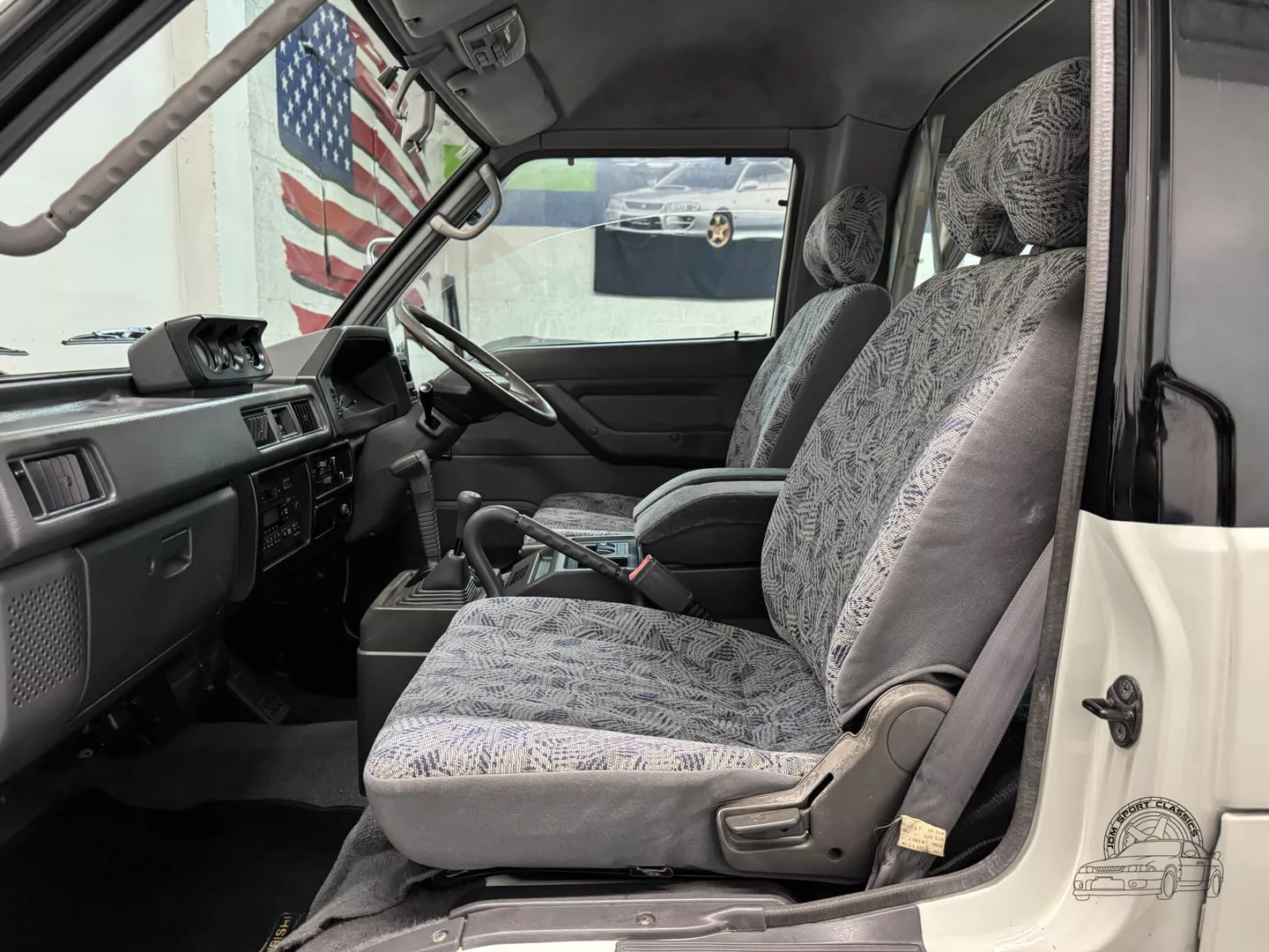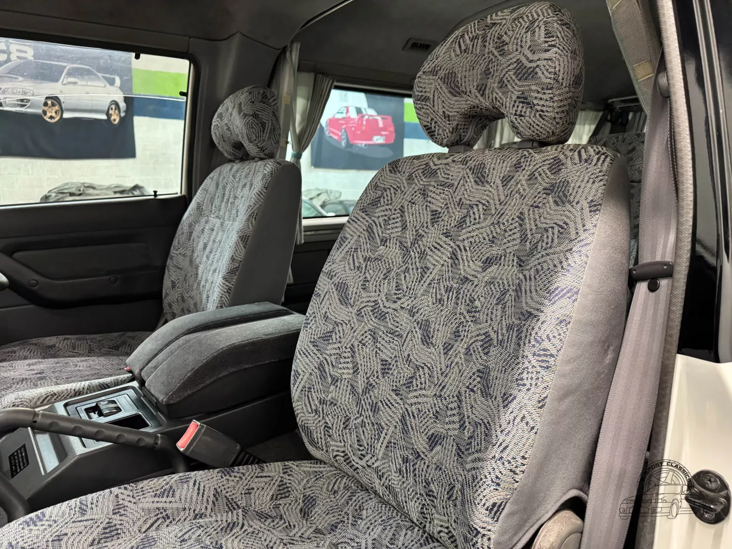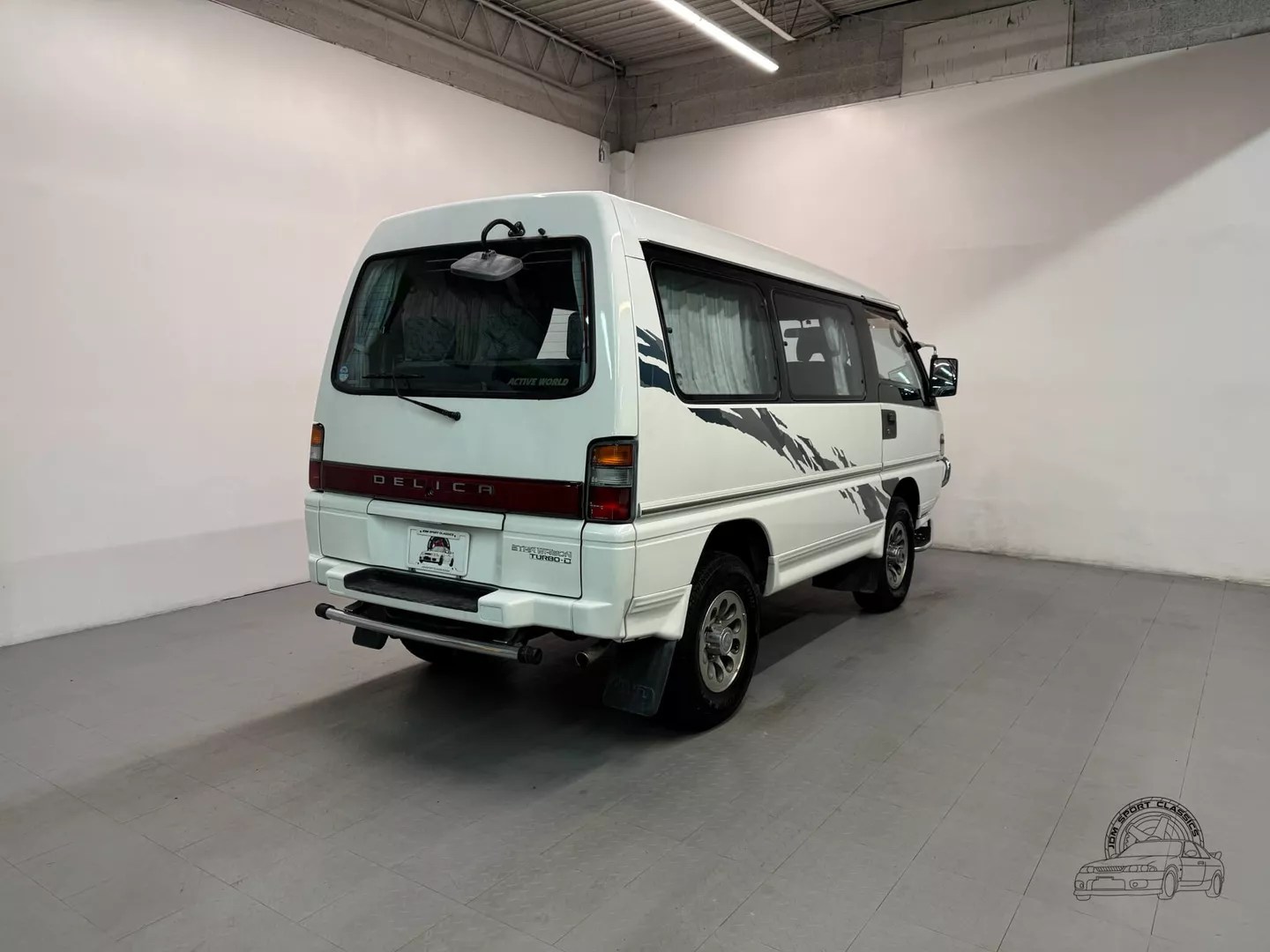 The L300 Delica is easily recognizable in a crowd, though, perhaps not intentionally. SUVs of the era were commonly found with the “boxy” styling that this example displays and consumers loved it. This example is finished in Color Code W09 Summit White, with the Active World decals still in good shape. Gloss black window surrounds offer contrast around the cabin, furthering the look of this already stand-out van. Found with the factory optioned “Monsoon Guards”, chrome push bar with yellow fog lights, side steps, rear parking mirror, and door handle Jewelry guards, this example was certainly well optioned.