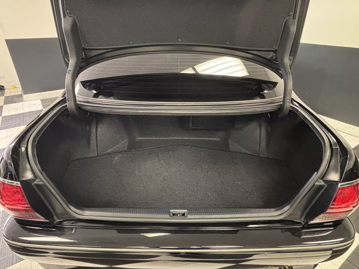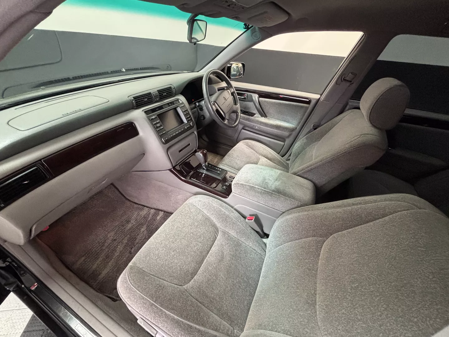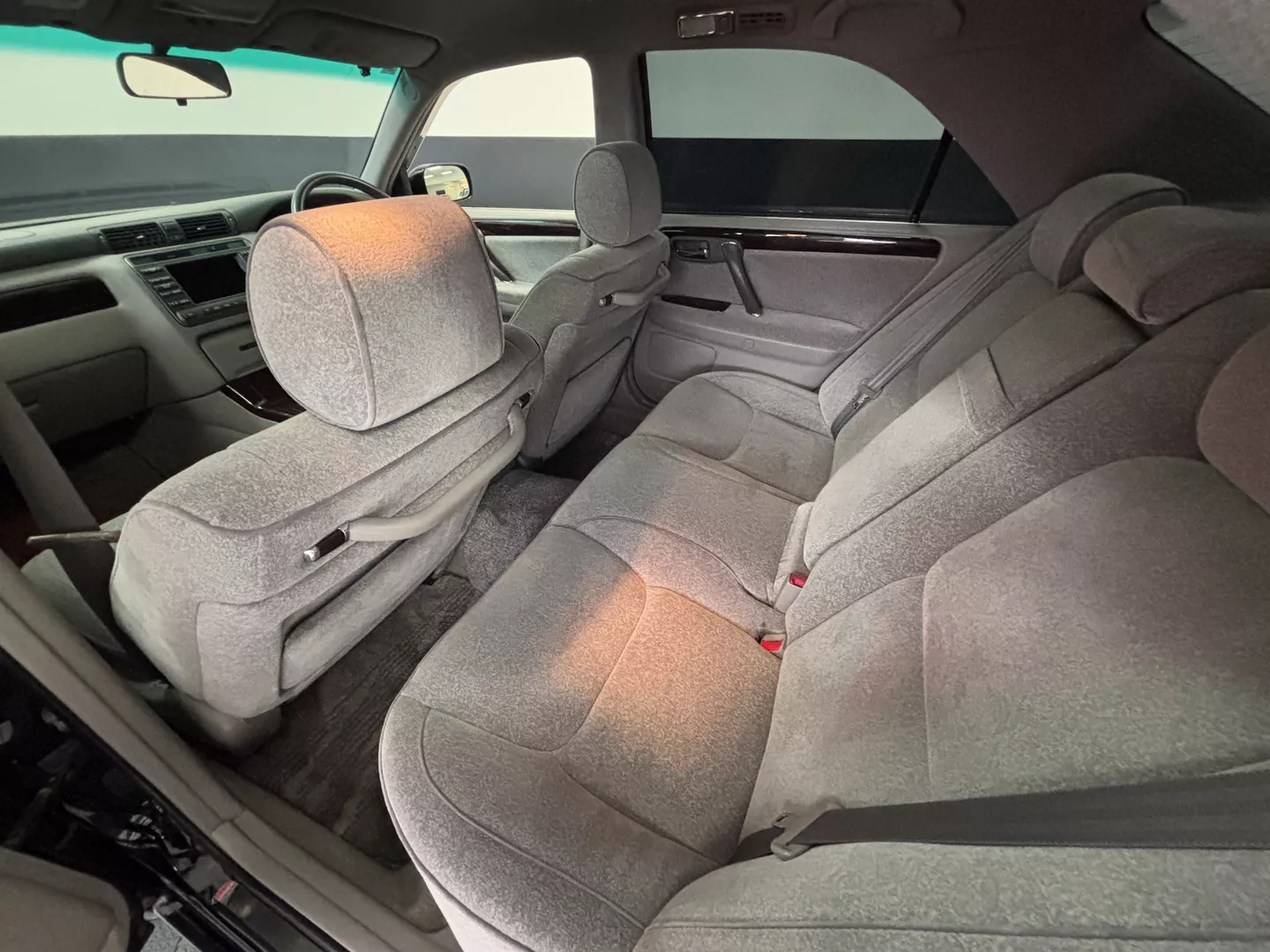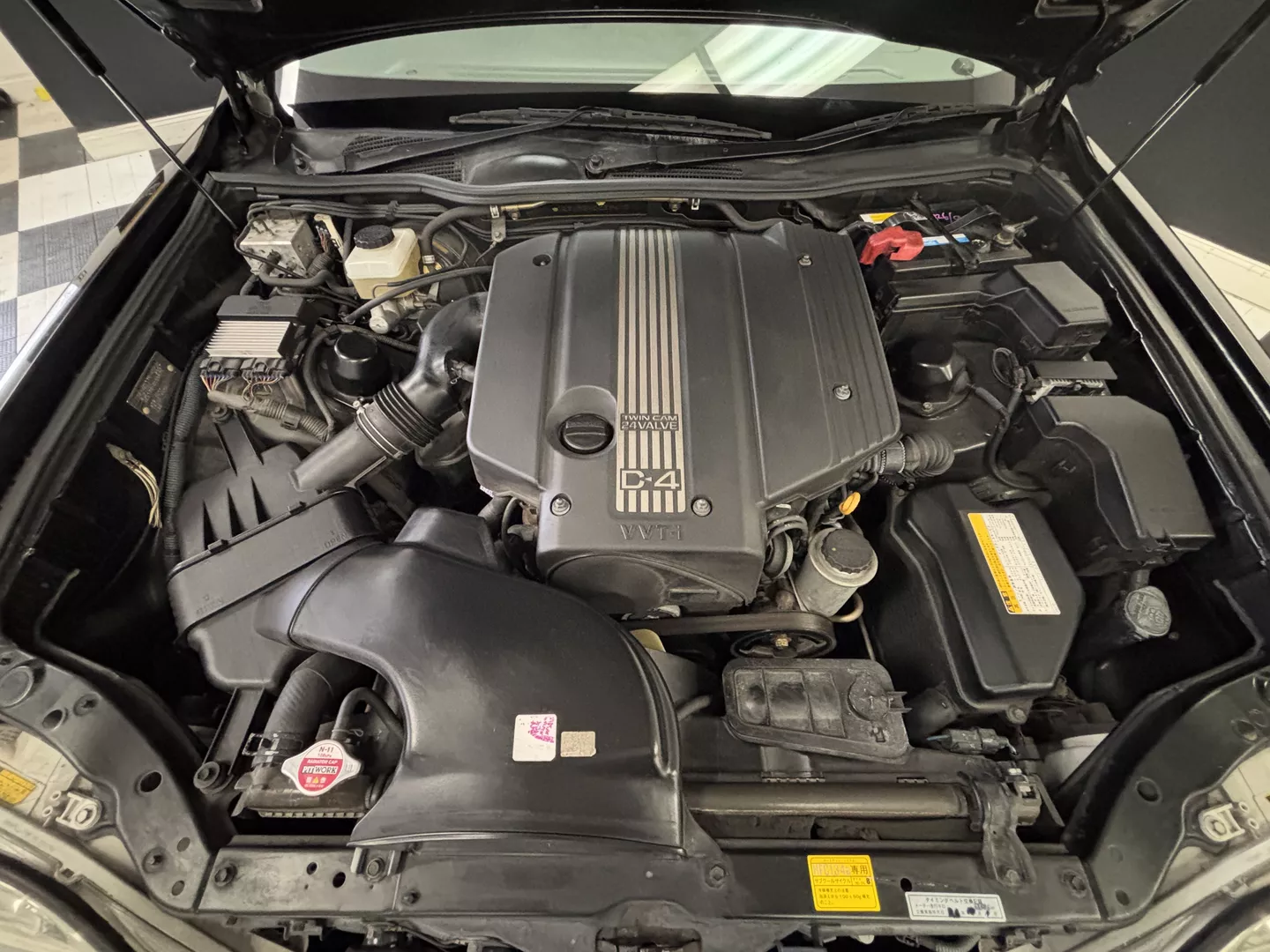 This 2000 Toyota Crown is fitted with a 2JZ-FSE I6 engine backed by a 5-speed automatic transmission. It is painted in 202 Toyota Onyx Black. It has aftermarket coil overs and has been upgraded with 19" Weds Maverick Samurai gold finish wheels while retaining all other factory equipment. It has aftermarket exhaust as well as aftermarket body valences.