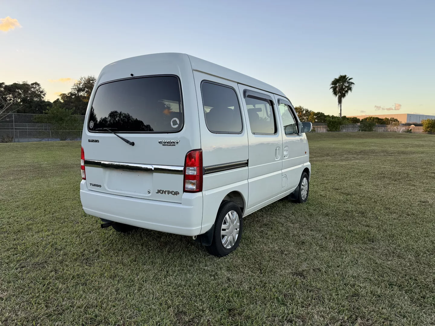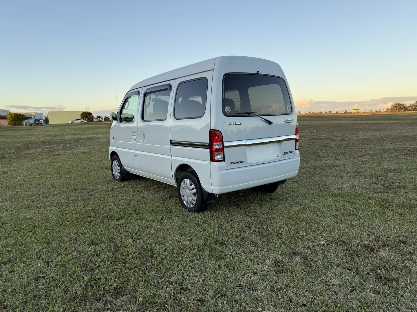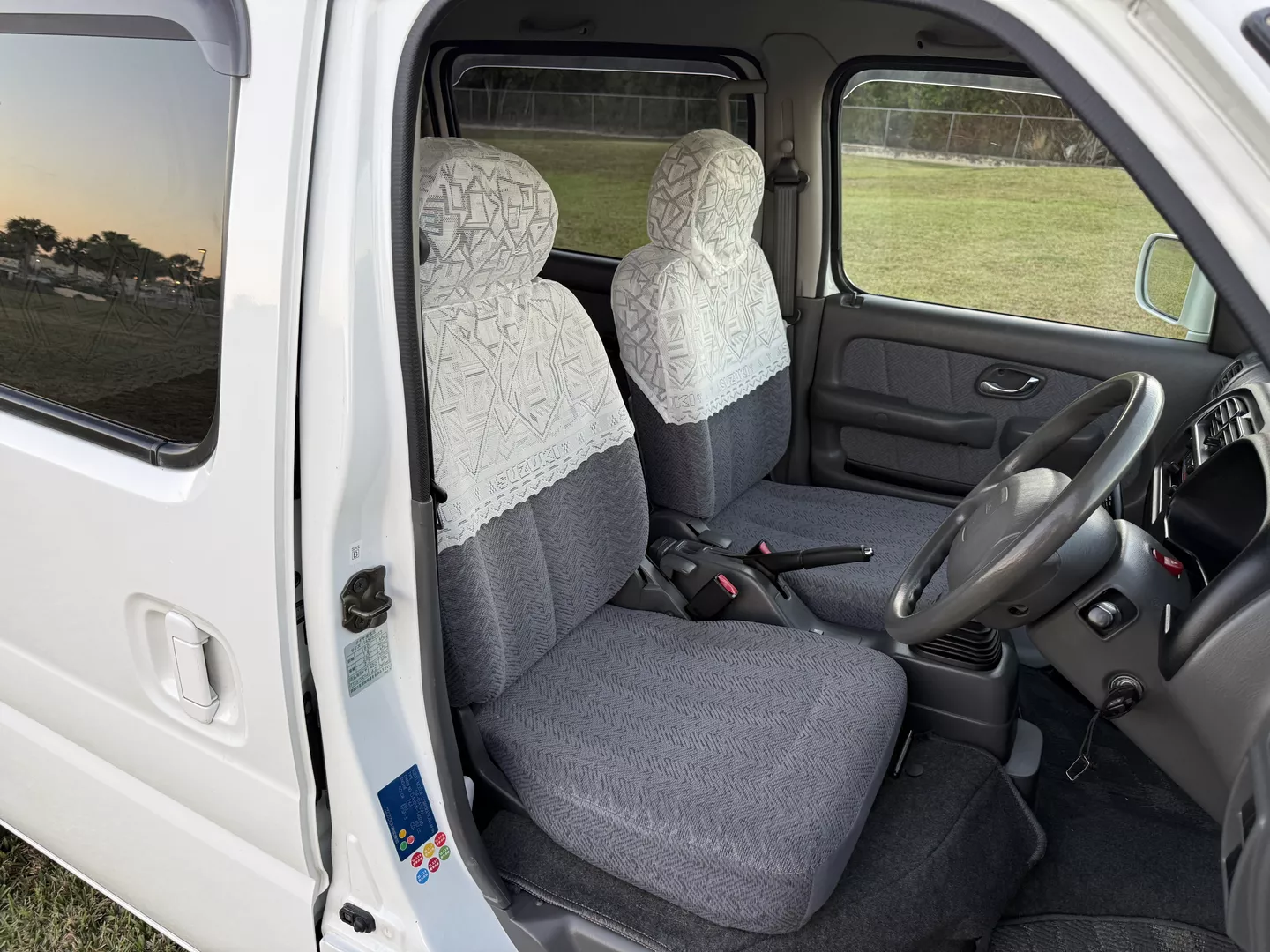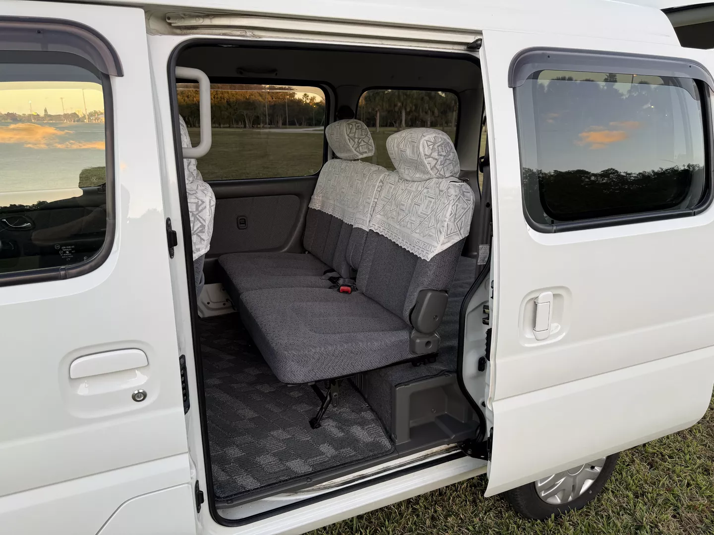 This 2000 Suzuki Every Joy Pop Kei Van (RWD) is a clean, low-mileage four-passenger kei van showing 38,760 verified miles. Finished in White (26U) over a patterned gray cloth interior, it is powered by a 657cc turbocharged F6A inline-three engine paired with a five-speed manual transmission. This van was legally imported under the 25-Year Rule, comes with a clean Florida title, and is ready to drive the day of purchase.