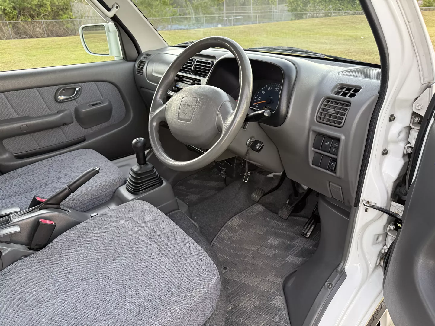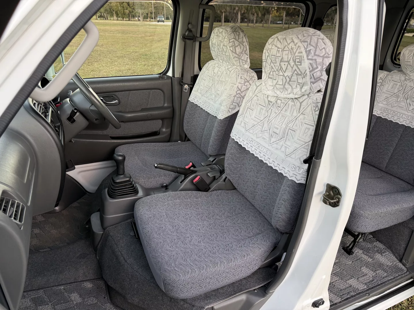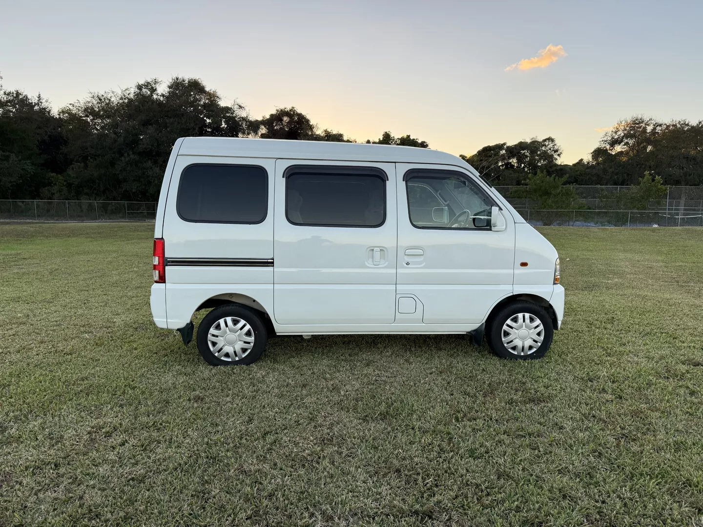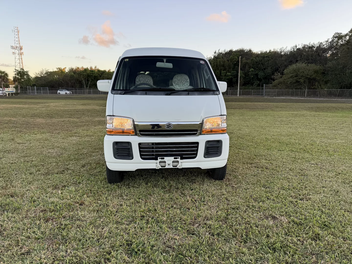 This 2000 Suzuki Every Joy Pop Kei Van (RWD) is a clean, low-mileage four-passenger kei van showing 38,760 verified miles. Finished in White (26U) over a patterned gray cloth interior, it is powered by a 657cc turbocharged F6A inline-three engine paired with a five-speed manual transmission. This van was legally imported under the 25-Year Rule, comes with a clean Florida title, and is ready to drive the day of purchase.