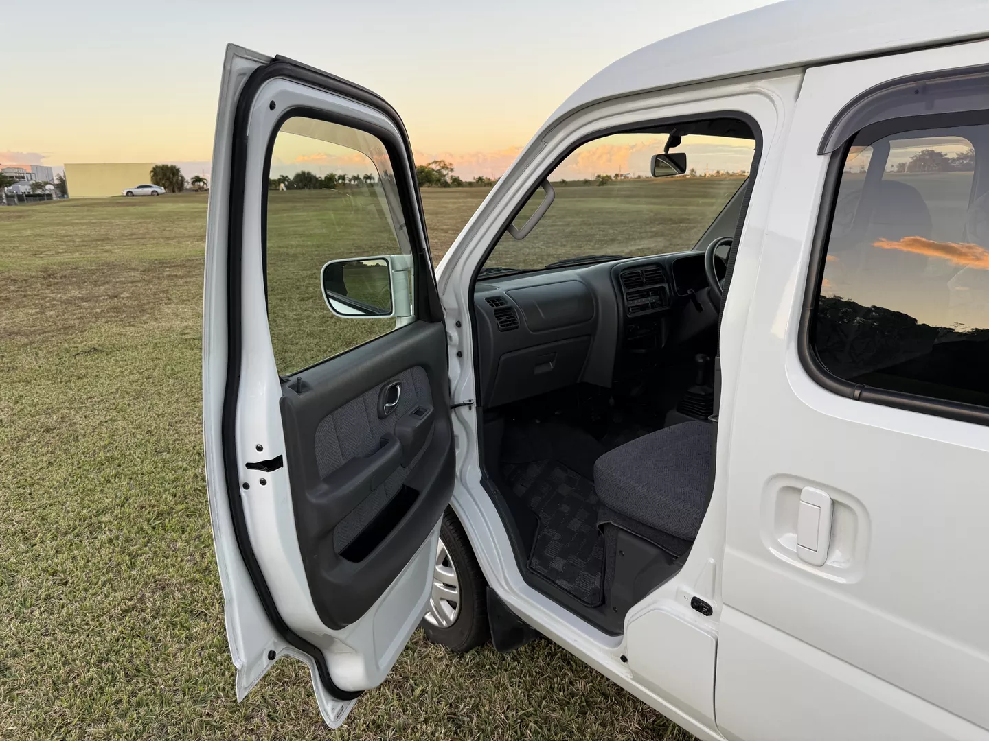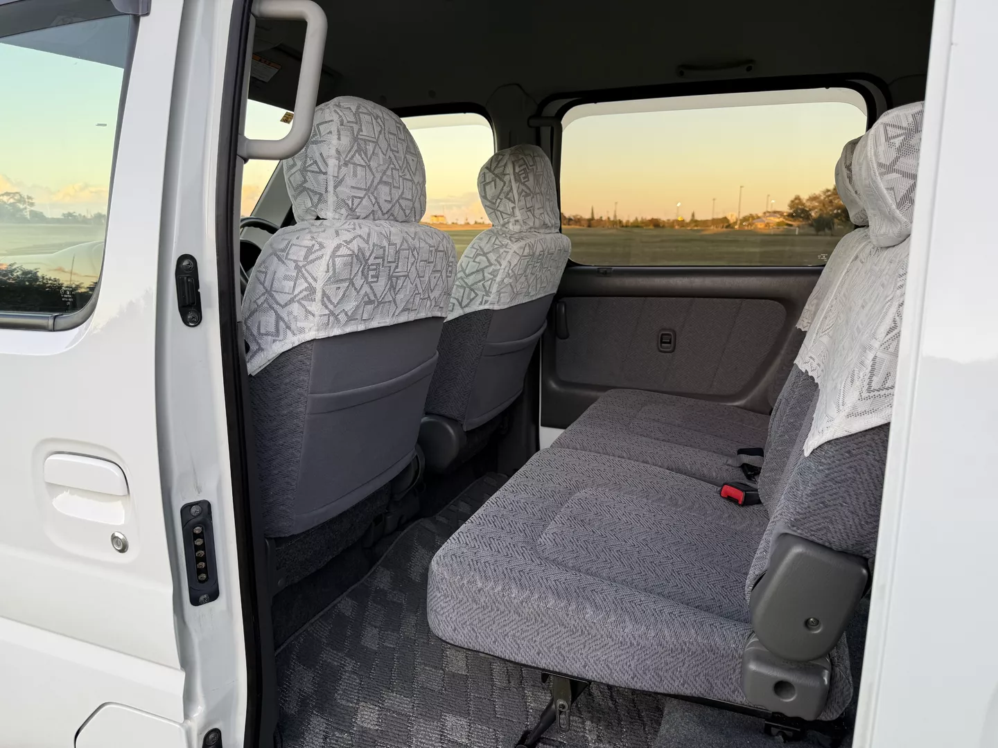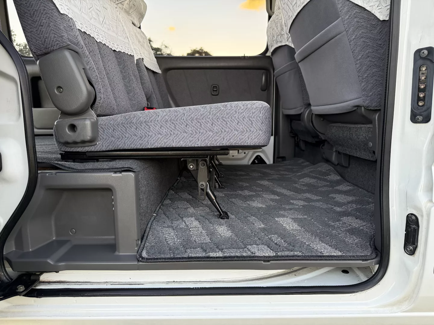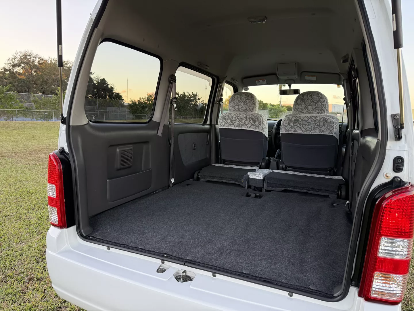 This 2000 Suzuki Every Joy Pop Kei Van (RWD) is a clean, low-mileage four-passenger kei van showing 38,760 verified miles. Finished in White (26U) over a patterned gray cloth interior, it is powered by a 657cc turbocharged F6A inline-three engine paired with a five-speed manual transmission. This van was legally imported under the 25-Year Rule, comes with a clean Florida title, and is ready to drive the day of purchase.