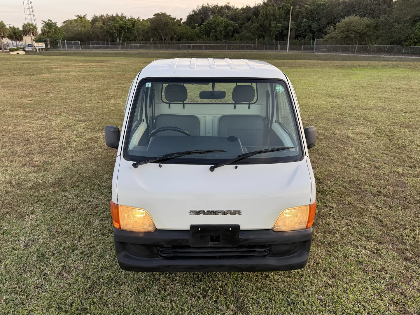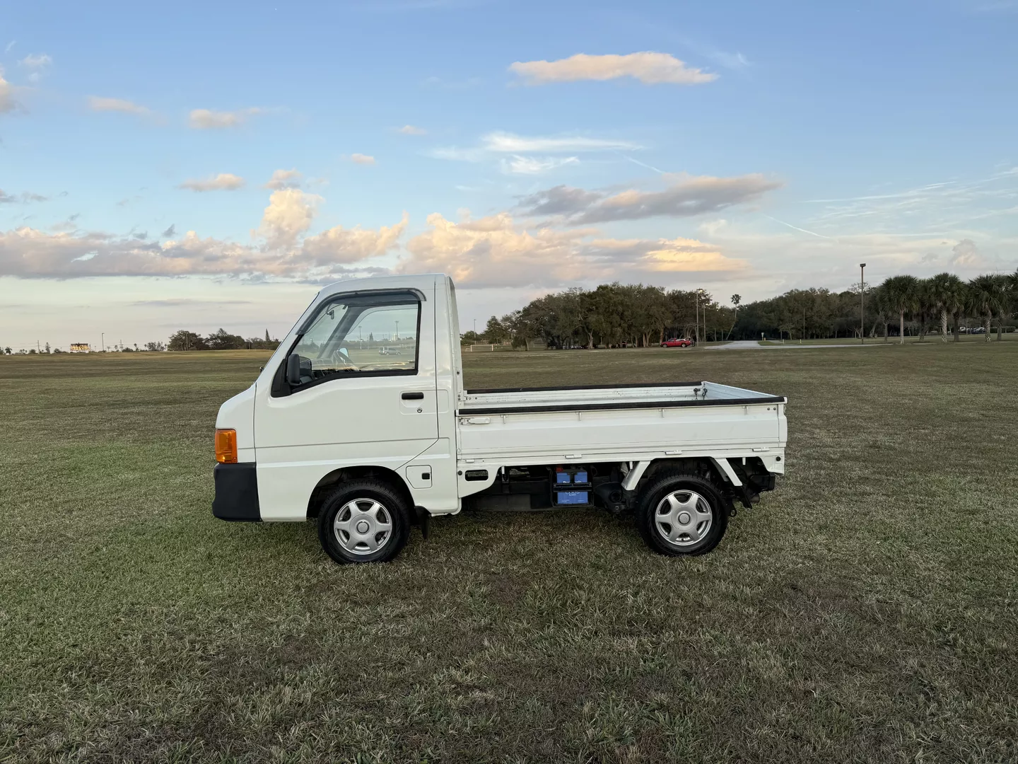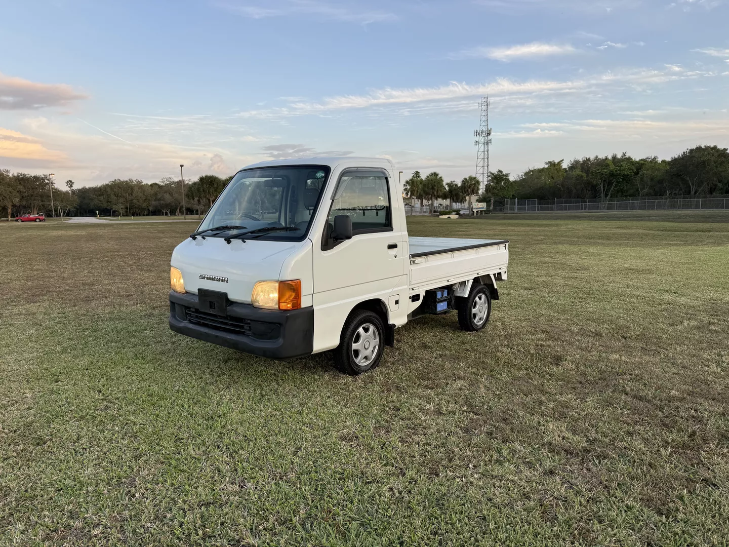 This 2000 Subaru Sambar Dias is a compact kei-class van powered by a fuel-injected 658cc EN07 inline-four engine mated to a 5-speed manual transmission with selectable 4WD. Showing 44,200 verified miles, it was legally imported under the 25-year rule and will be sold with a clean Florida title.