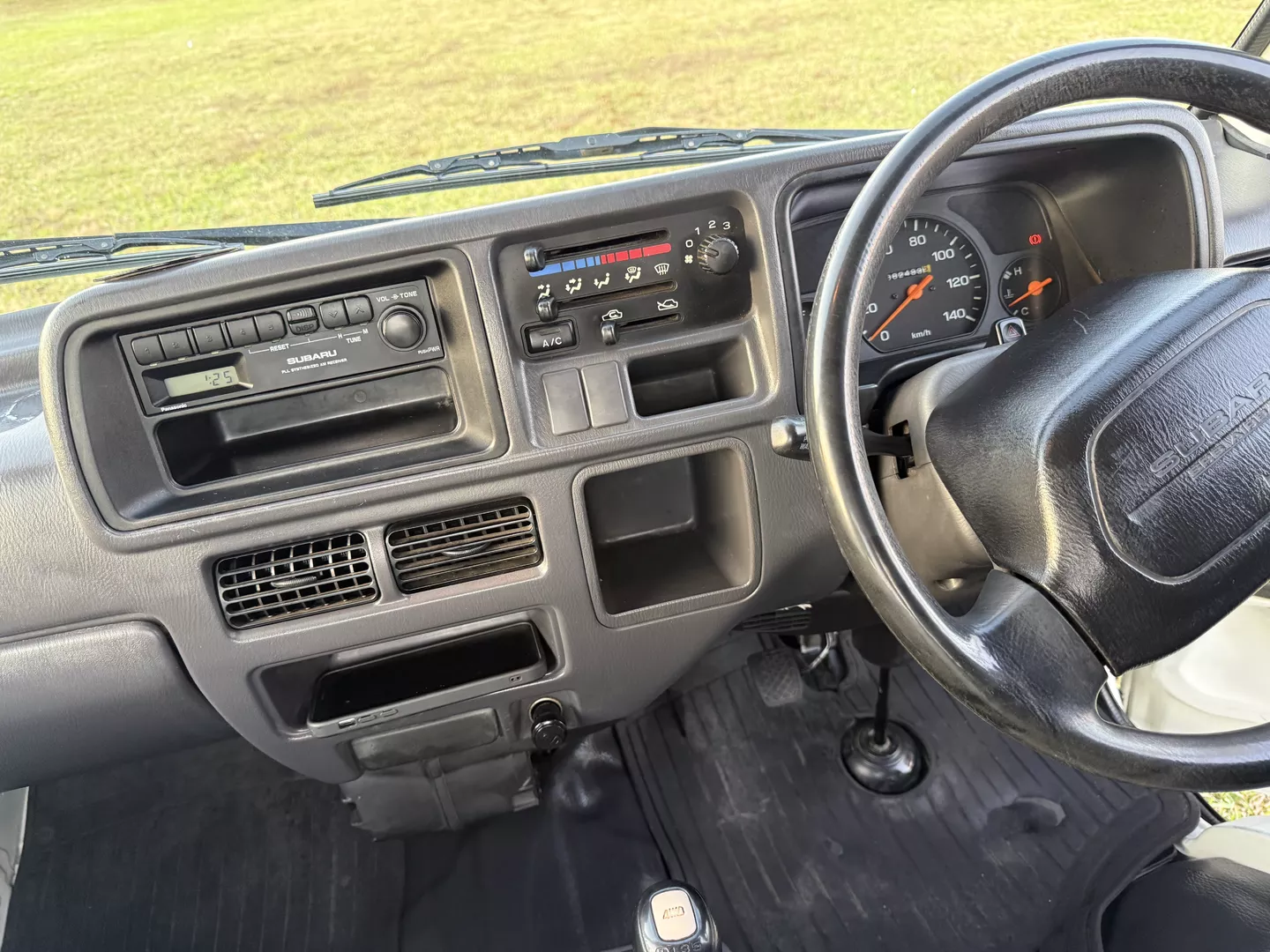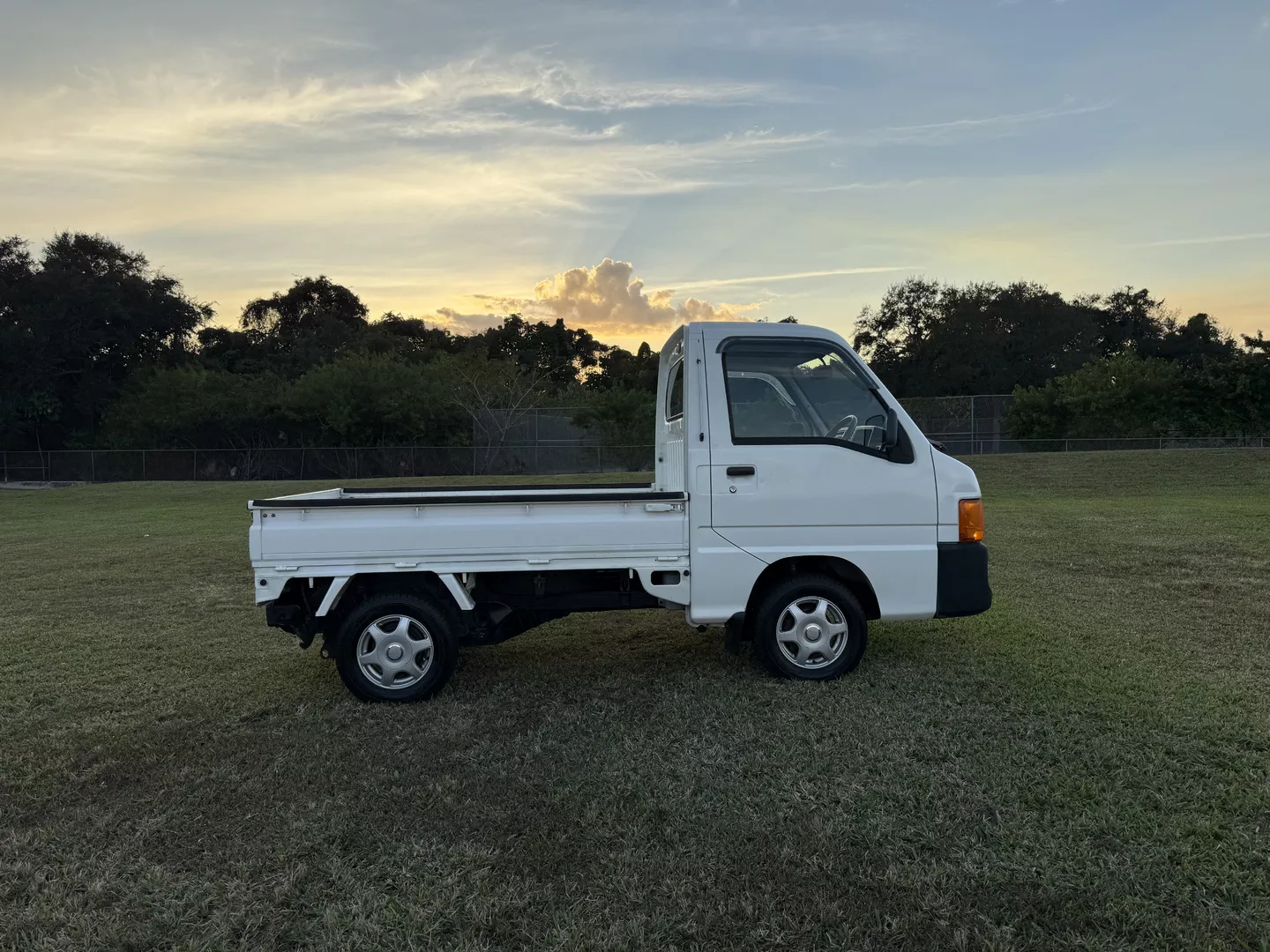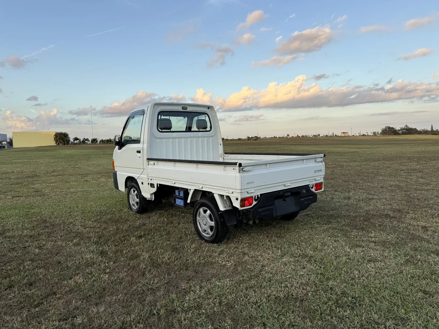 This 2000 Subaru Sambar Dias is a compact kei-class van powered by a fuel-injected 658cc EN07 inline-four engine mated to a 5-speed manual transmission with selectable 4WD. Showing 44,200 verified miles, it was legally imported under the 25-year rule and will be sold with a clean Florida title.