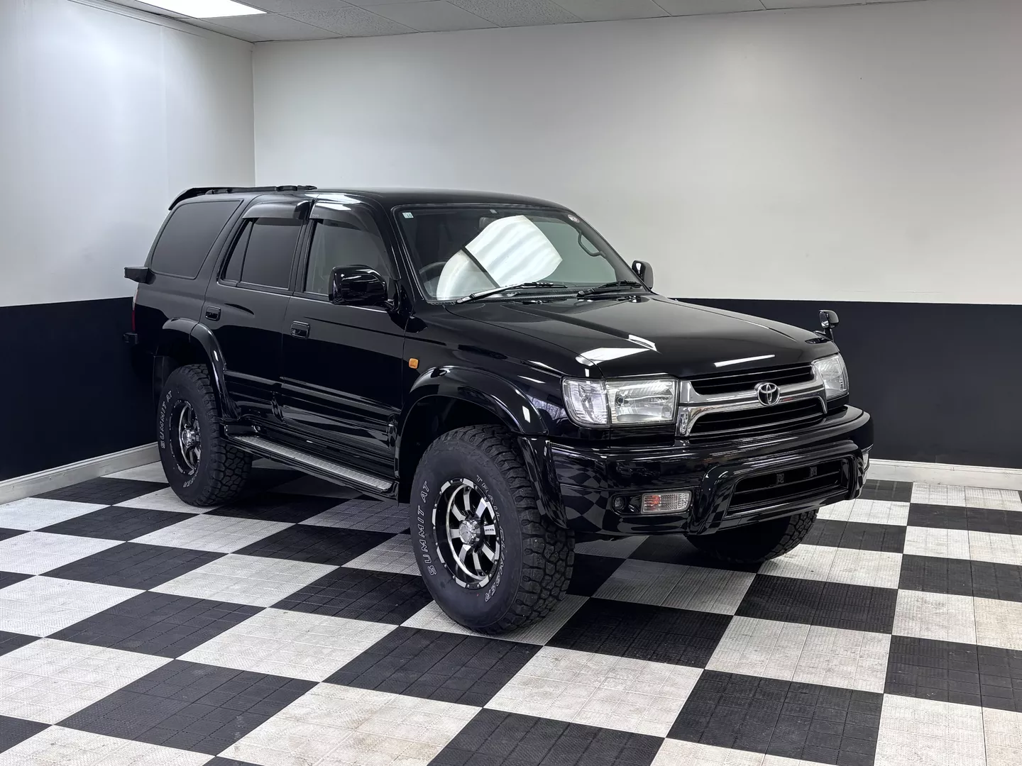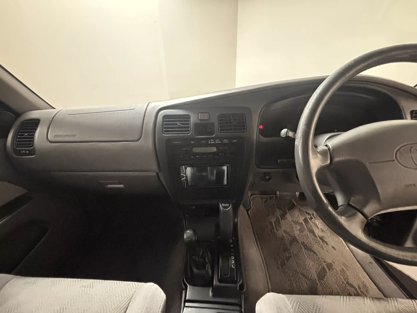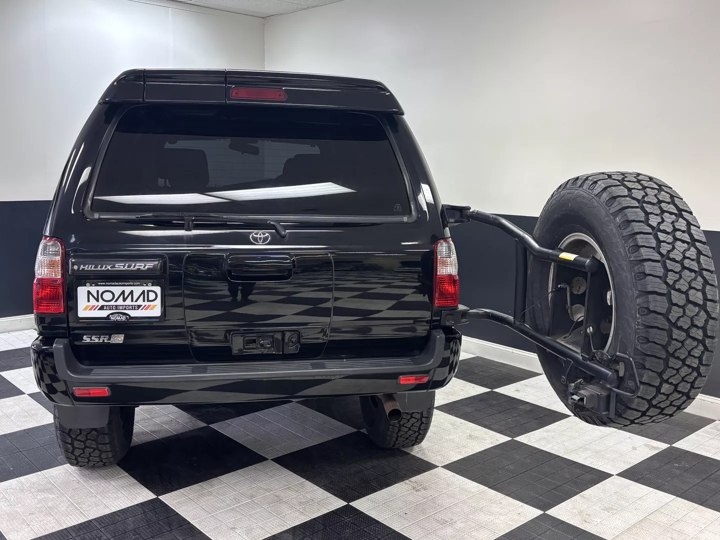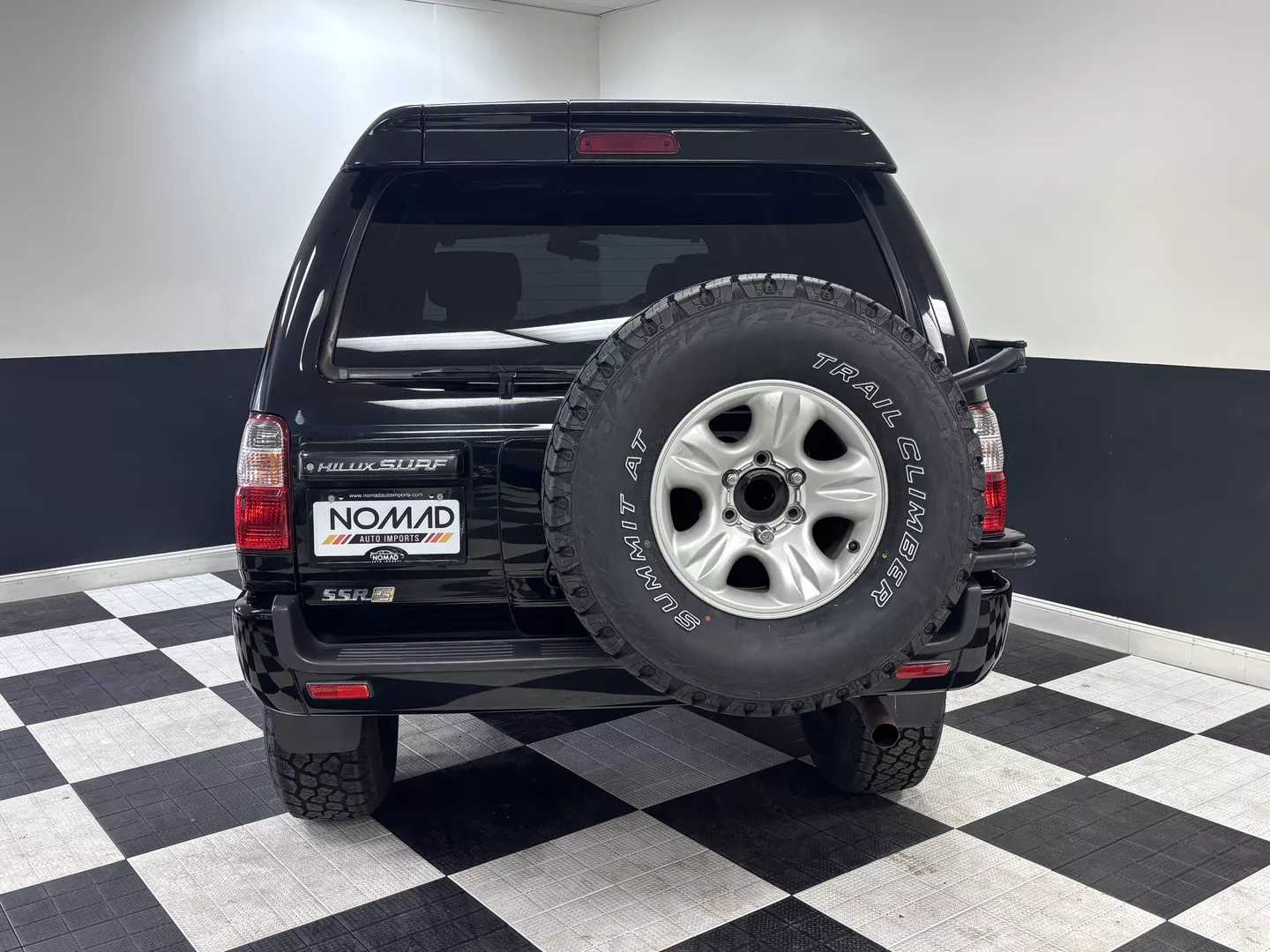 This 2000 Toyota Hilux Surf SSR-G is equipped with a 3RZ-FE 4-cylinder engine mated to a 4-speed automatic transmission. Interior features an aftermarket Pioneer touchscreen head unit as well as grey cloth interior. It has aftermarket MKW 16-inch wheels fitted with Summit AT tires. The exterior also features factory powered rear spoiler mirror as well as driver's side fender mirror.