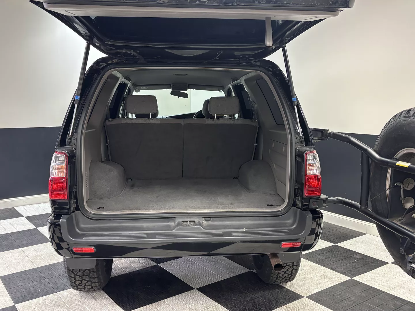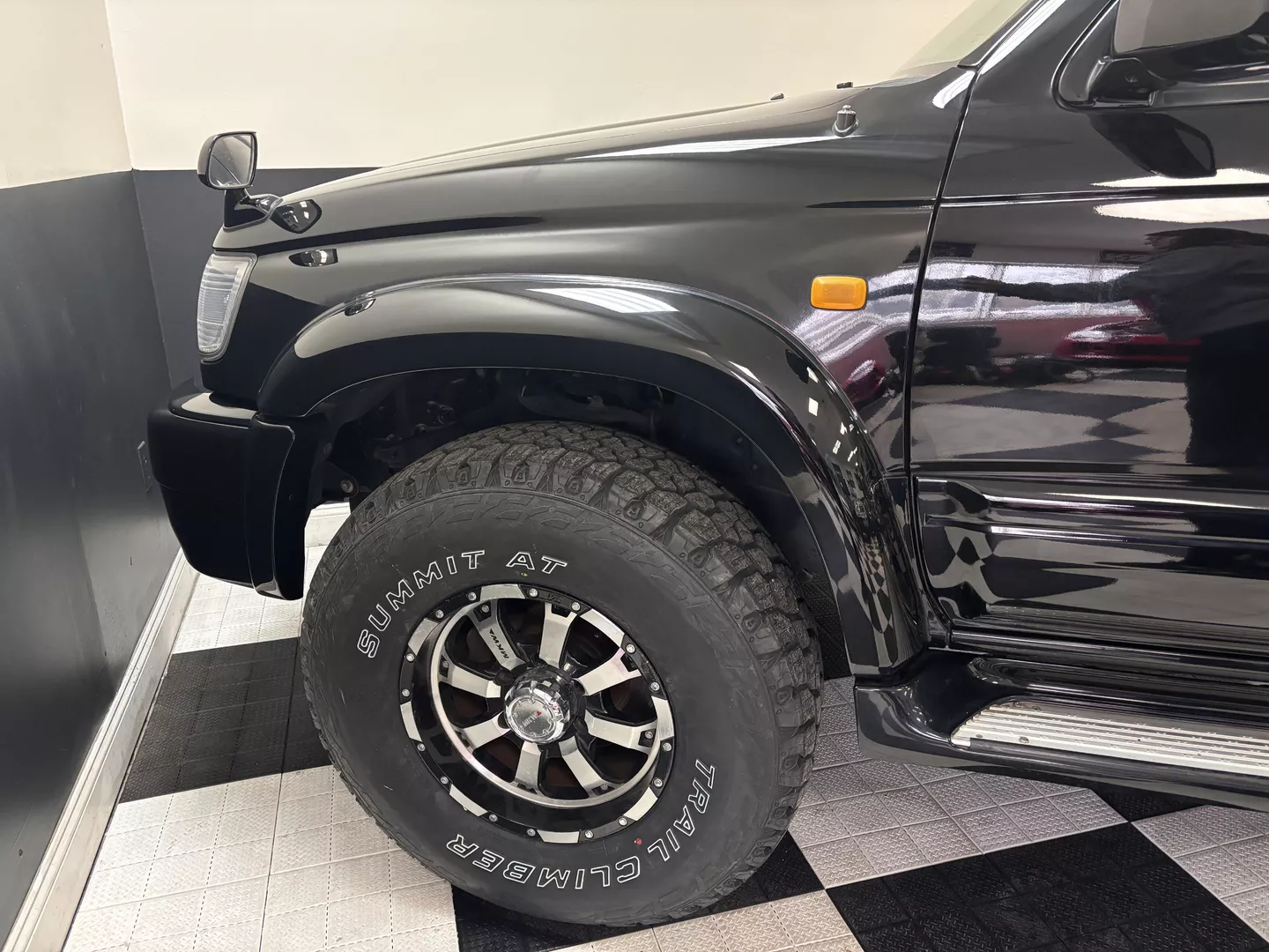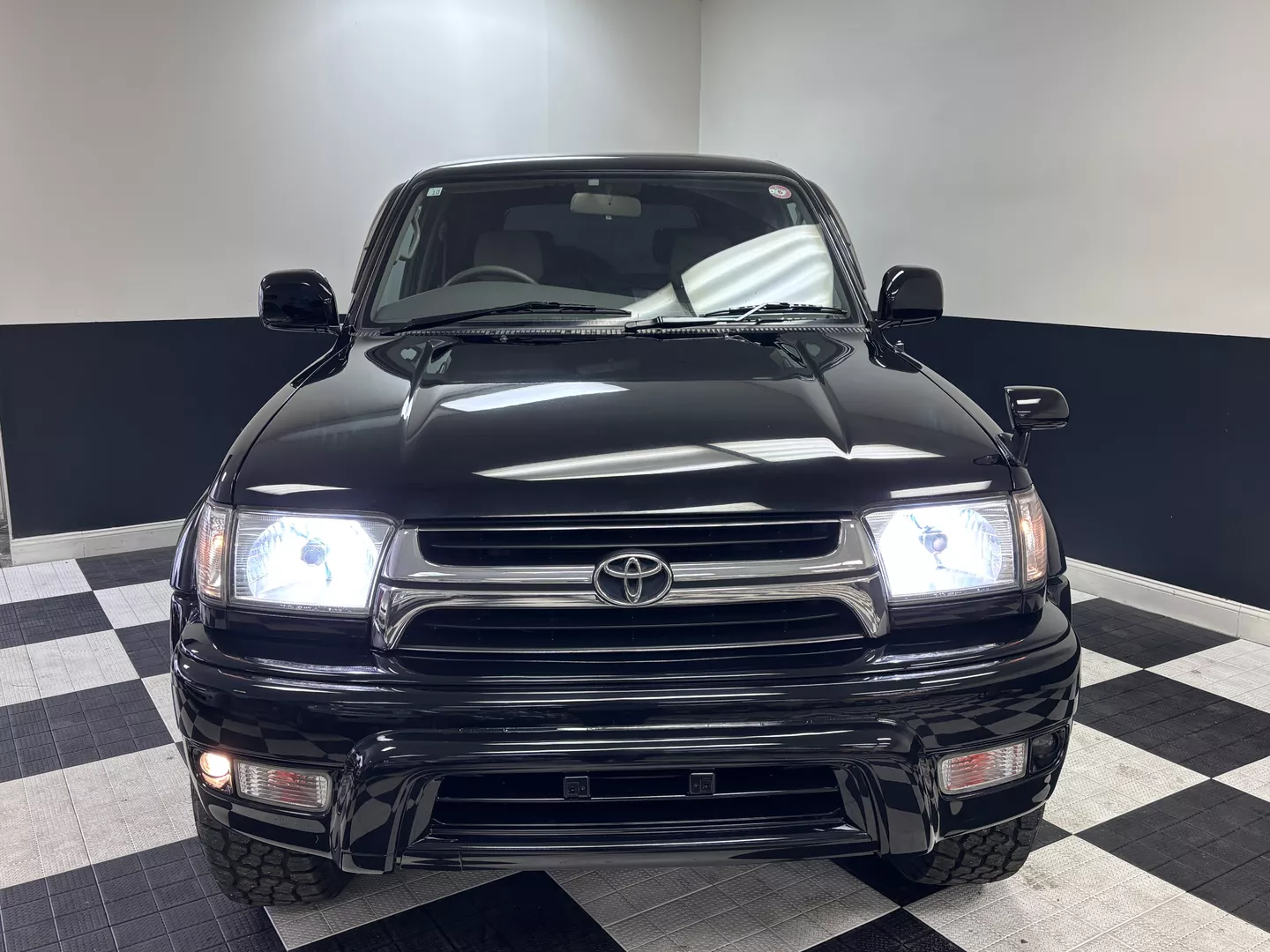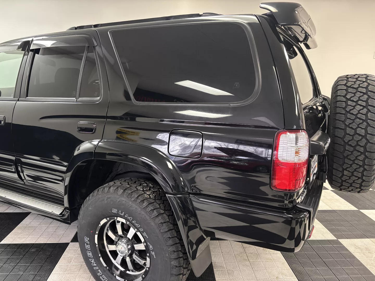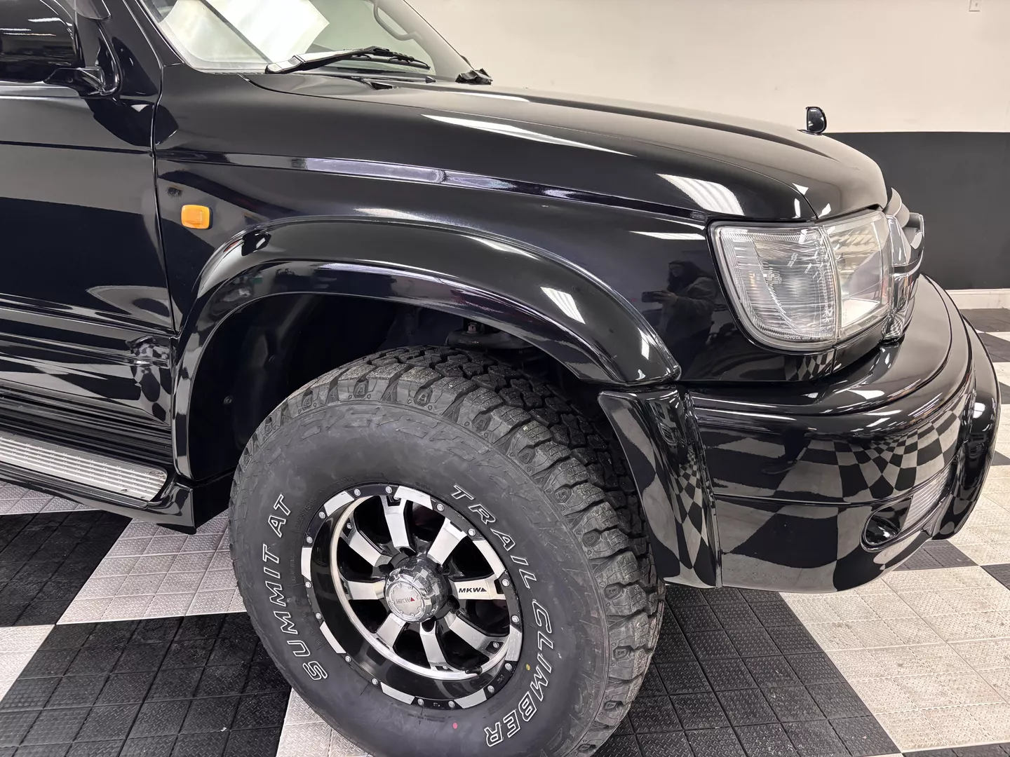 This 2000 Toyota Hilux Surf SSR-G is equipped with a 3RZ-FE 4-cylinder engine mated to a 4-speed automatic transmission. Interior features an aftermarket Pioneer touchscreen head unit as well as grey cloth interior. It has aftermarket MKW 16-inch wheels fitted with Summit AT tires. The exterior also features factory powered rear spoiler mirror as well as driver's side fender mirror.
