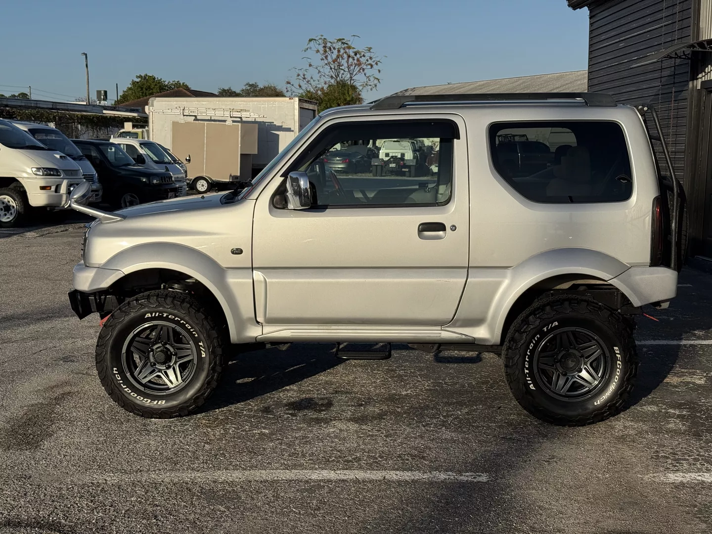 This Jimny has been fully built for adventure with custom suspension, lift, custom front bumper, custom wheels, new off-road tires, and a rear ladder. The selectable 4WD system with 2H, 4H, and 4L gives you true low-range capability, making this one of the best off-road vehicles ever made in its class.