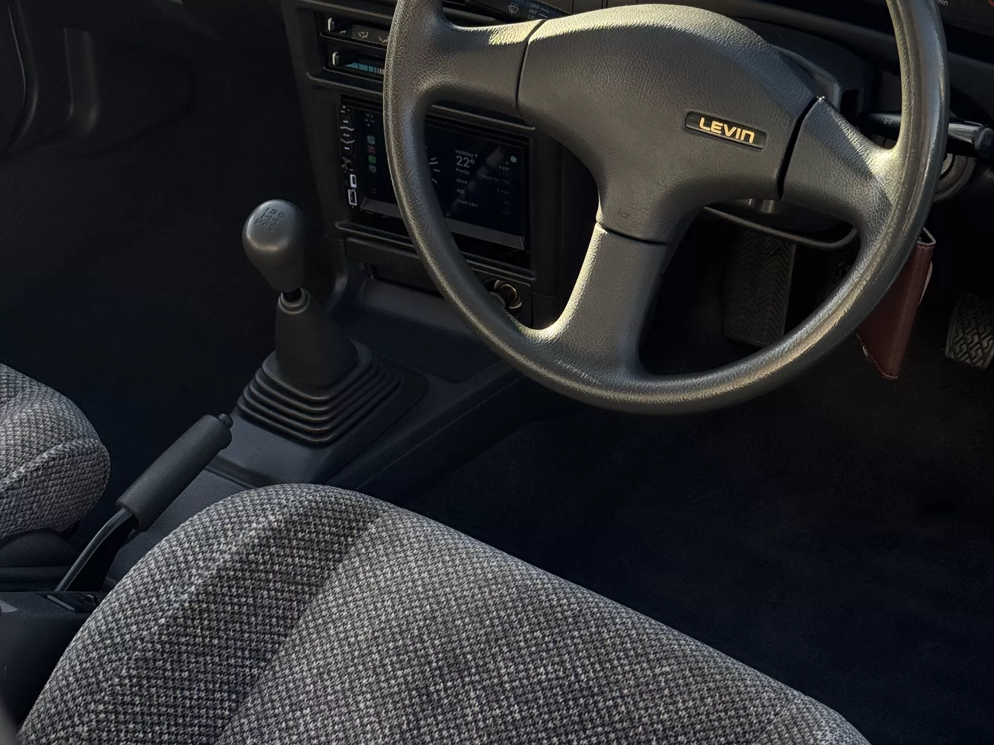 This Levin is equipped with rare factory options, including the original rear spoiler, original side skirts, and original Japanese seat covers. The interior is in excellent condition, with well-preserved seats and clean trim throughout. Cold A/C and a modern CarPlay system make it comfortable and practical for daily use.