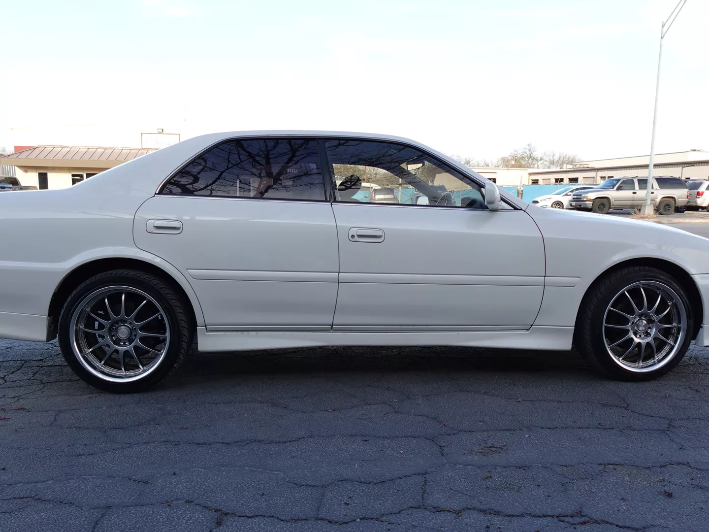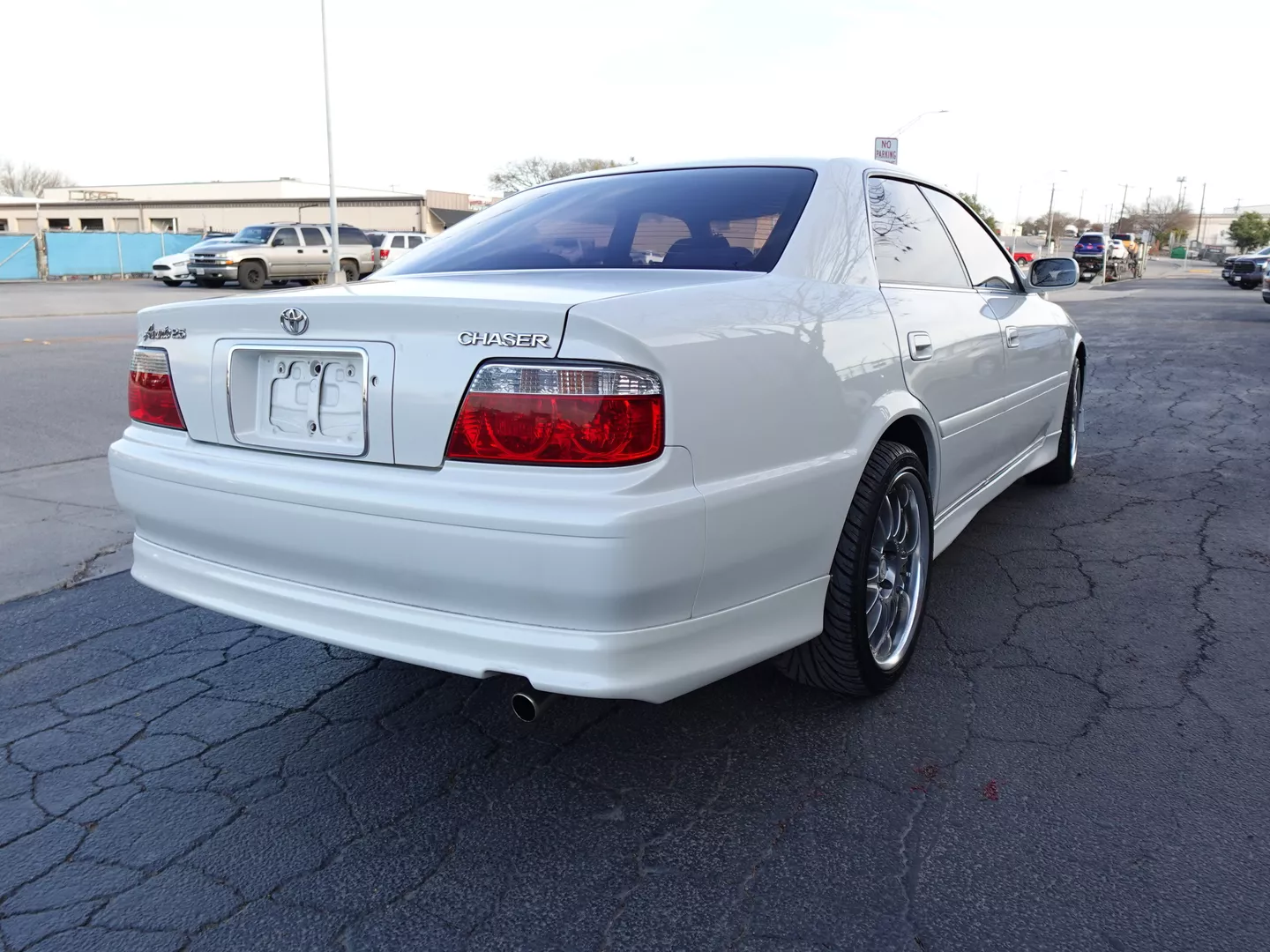 This is a clean low mileage (84077K) 1999 Toyota Chaser Avante JZX100 2.5L 6 Cylinders 1JZ-GE Engine with RWD Automatic Transmission, factory stock. with the exception of WORK Wheels. The cars drive and run smoothly in all shifts.